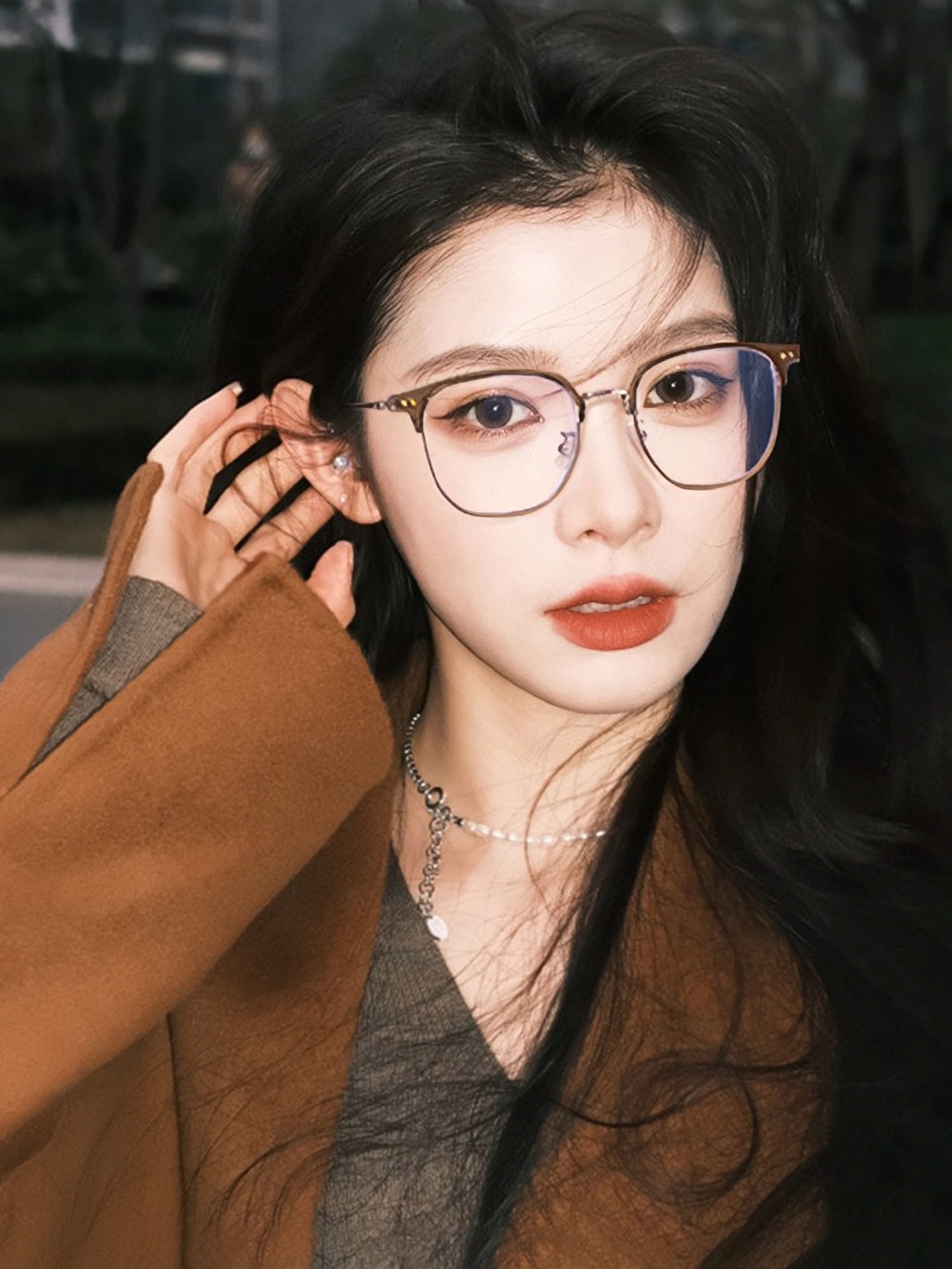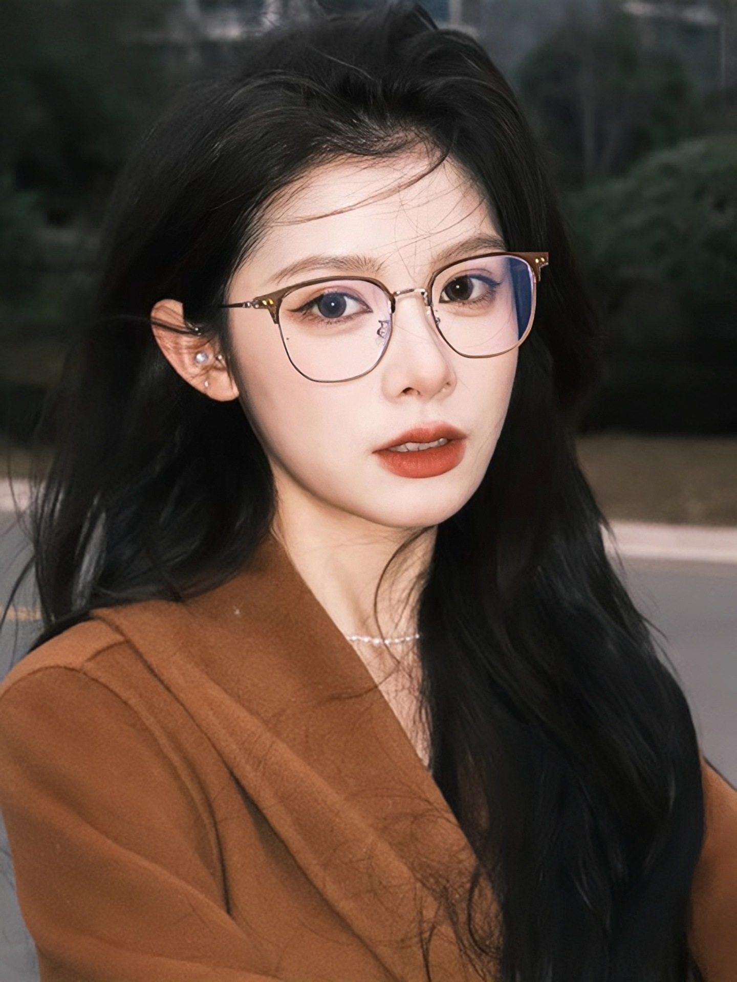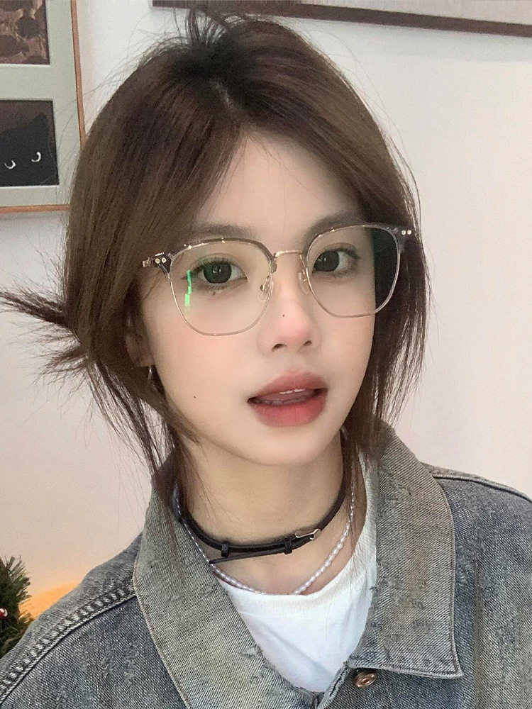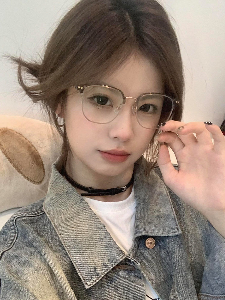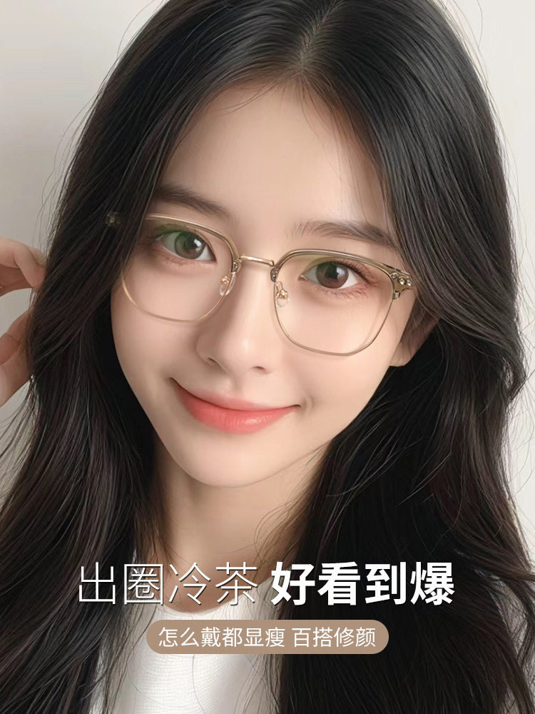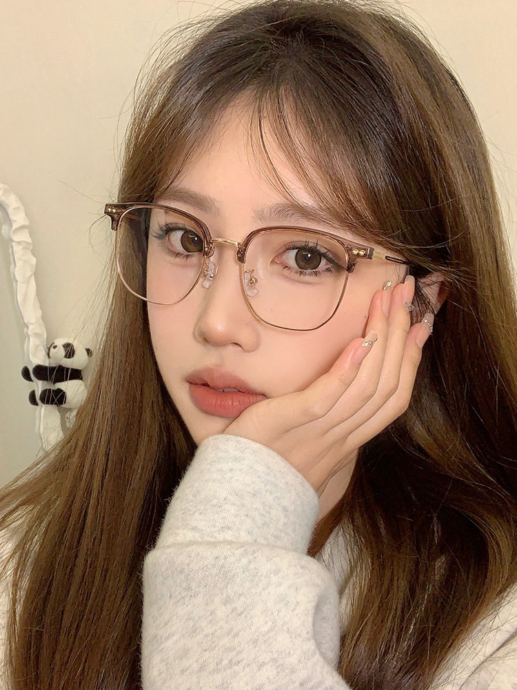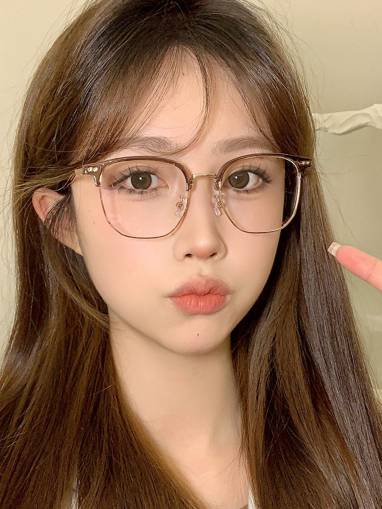 Autumn and winter brown half-frame glasses women's myopia can be equipped with ultra-light pure titanium frame square round face small frame