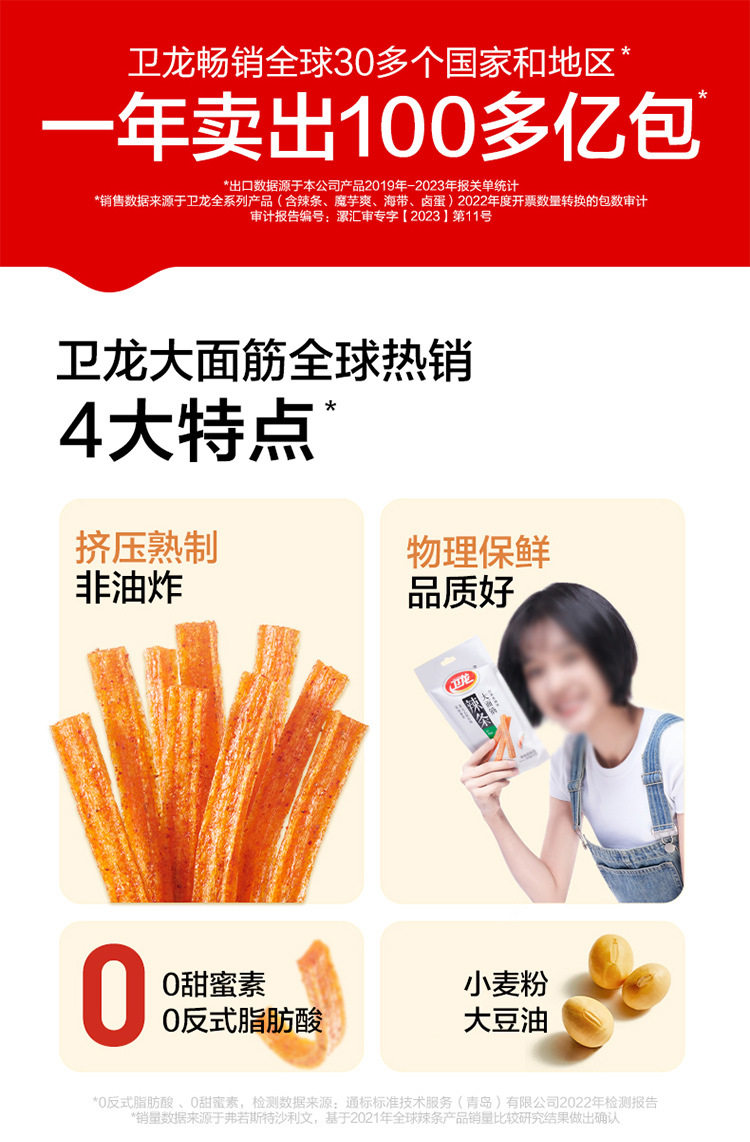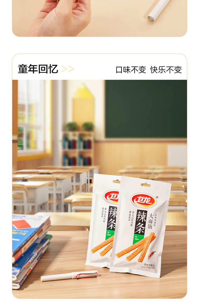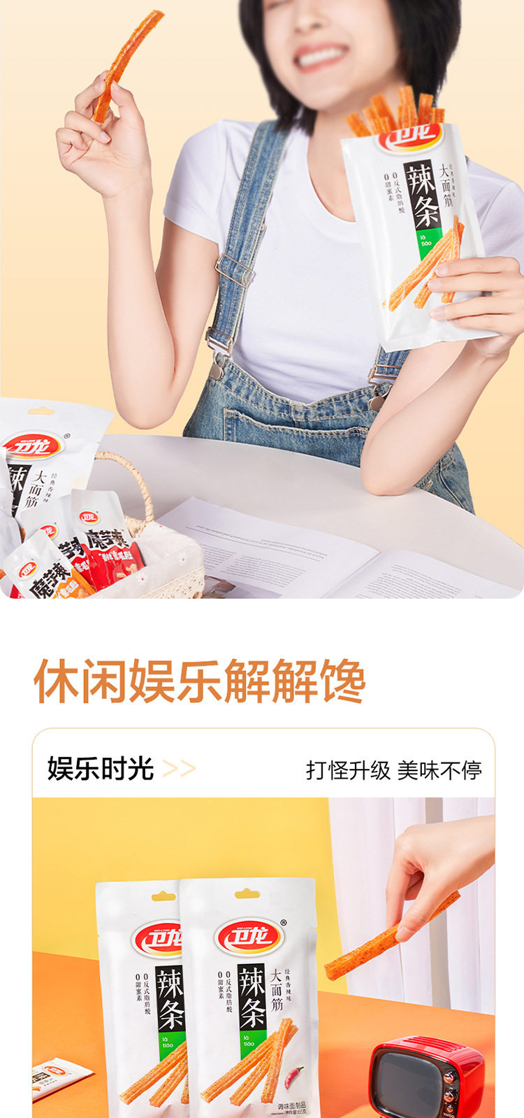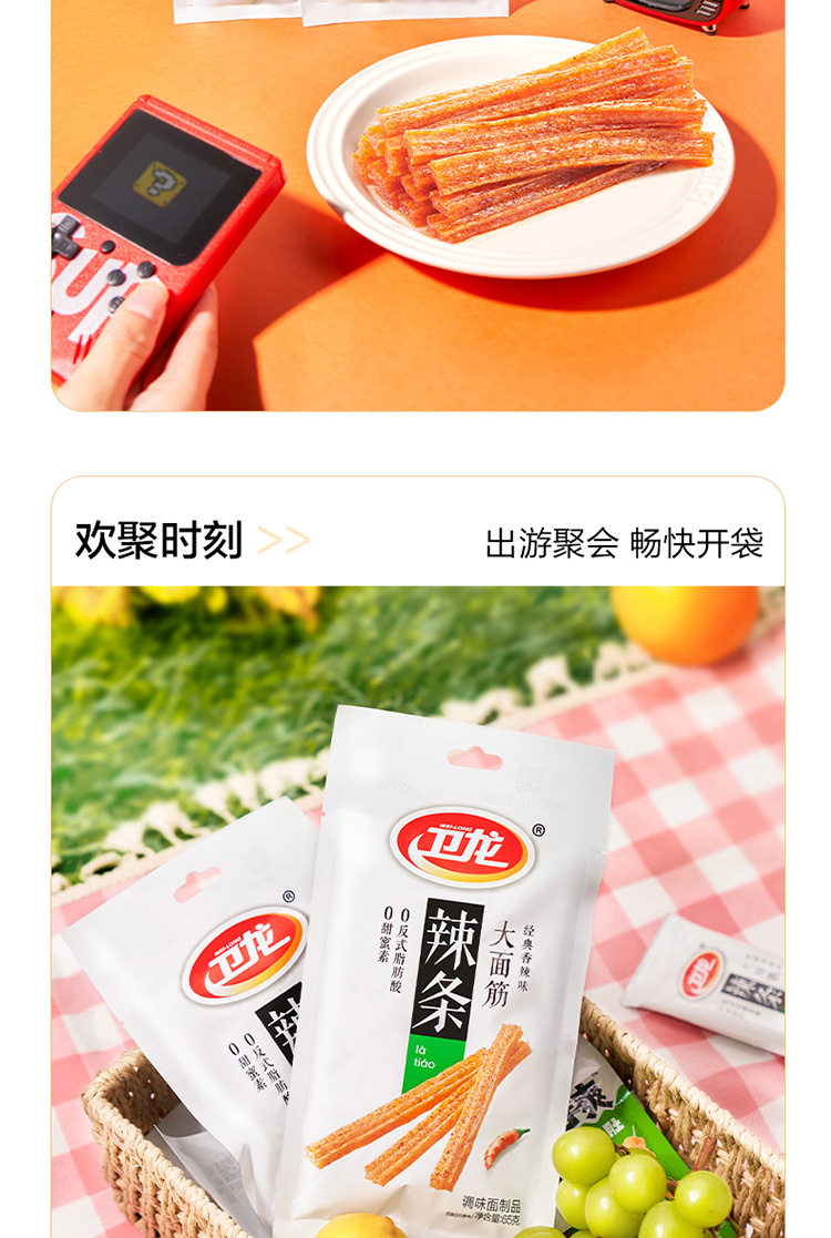 Weilong Gluten Snack 65g Spicy Strips Spicy Snack Childhood Nostalgia Dormitory Binge-Watching Snack Food Dormitory Wholesale