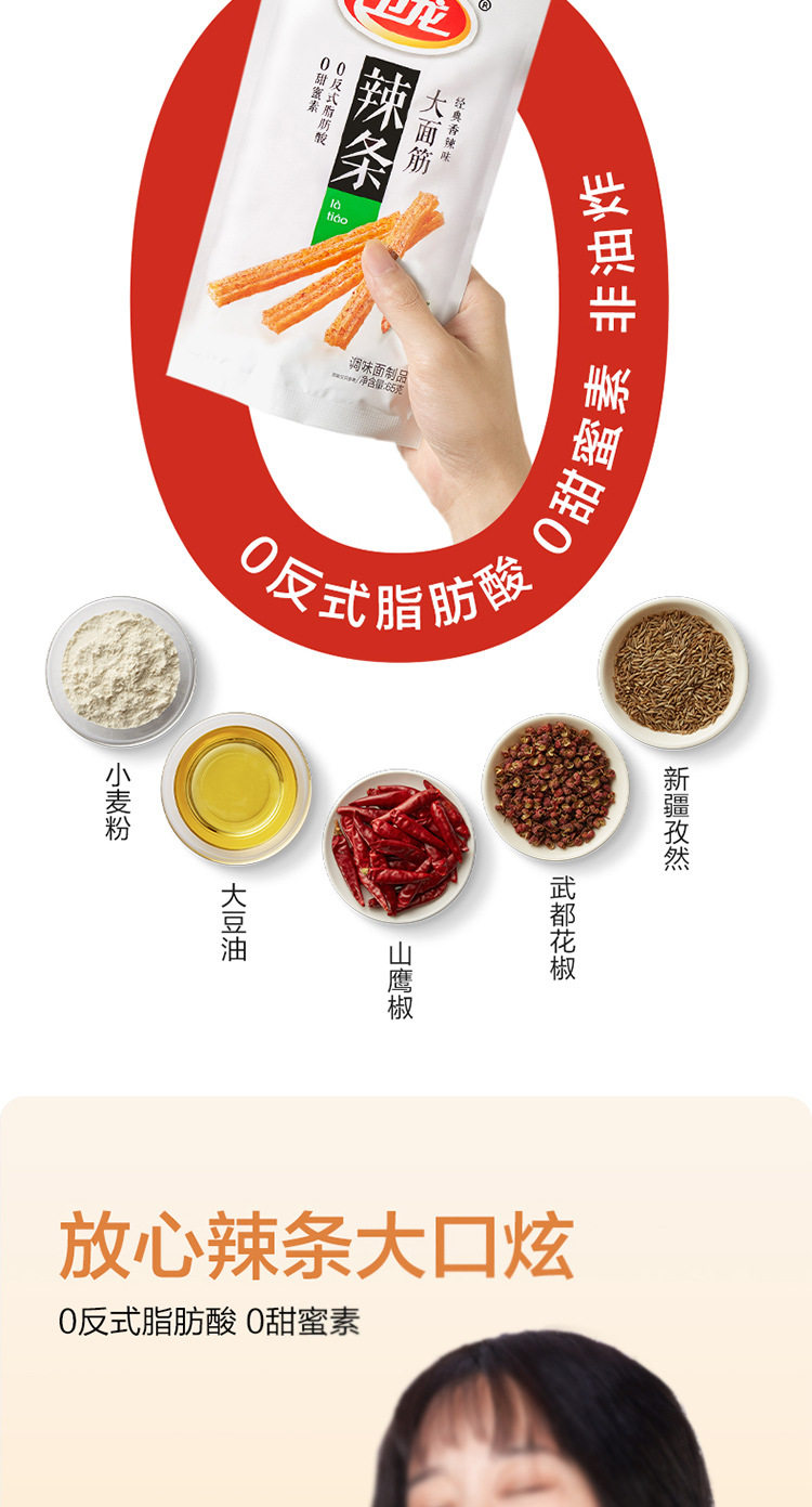 | Net weight (specification) | Spicy flavor 65g large gluten (60 copies required for the whole box),Bbq flavored 50g large gluten (60 copies required for the whole box),Spicy crayfish flavor 50g large gluten (60 copies required for the whole box) |