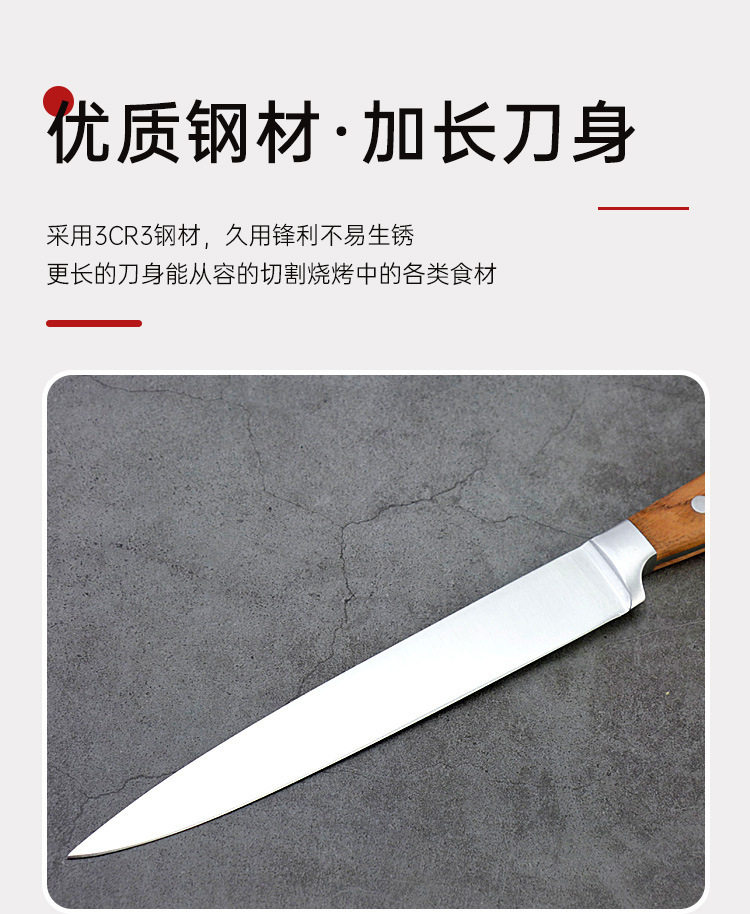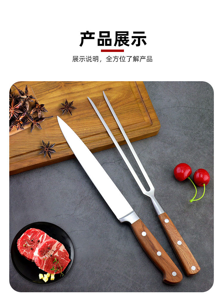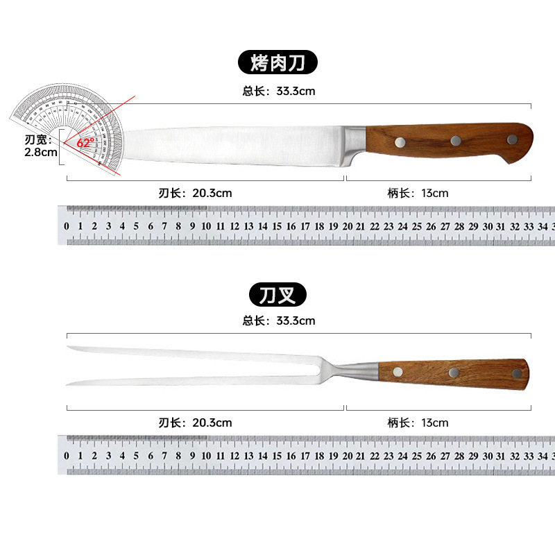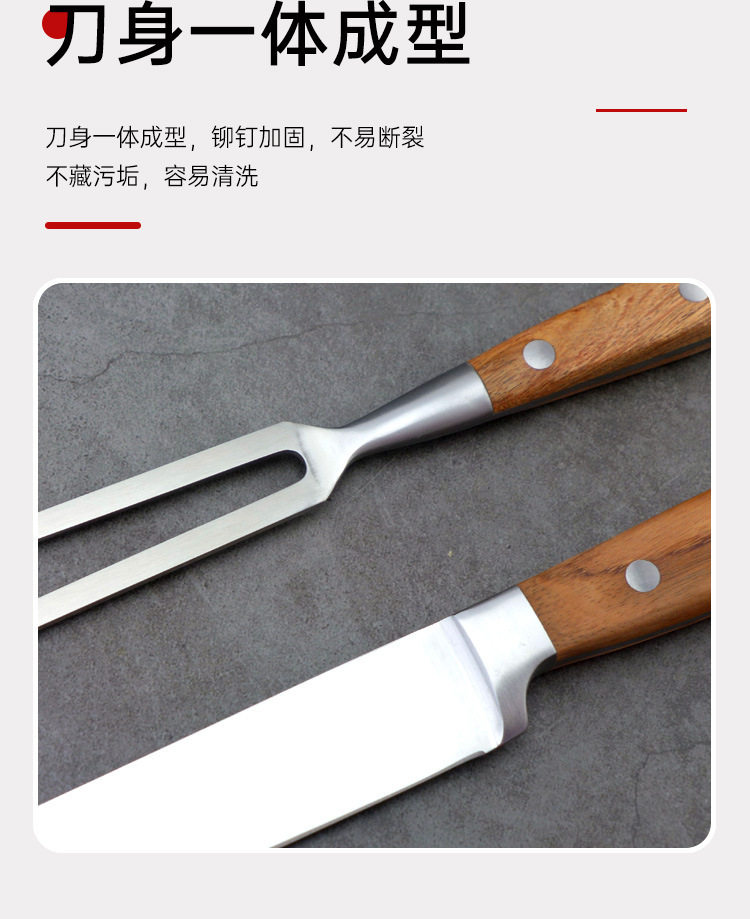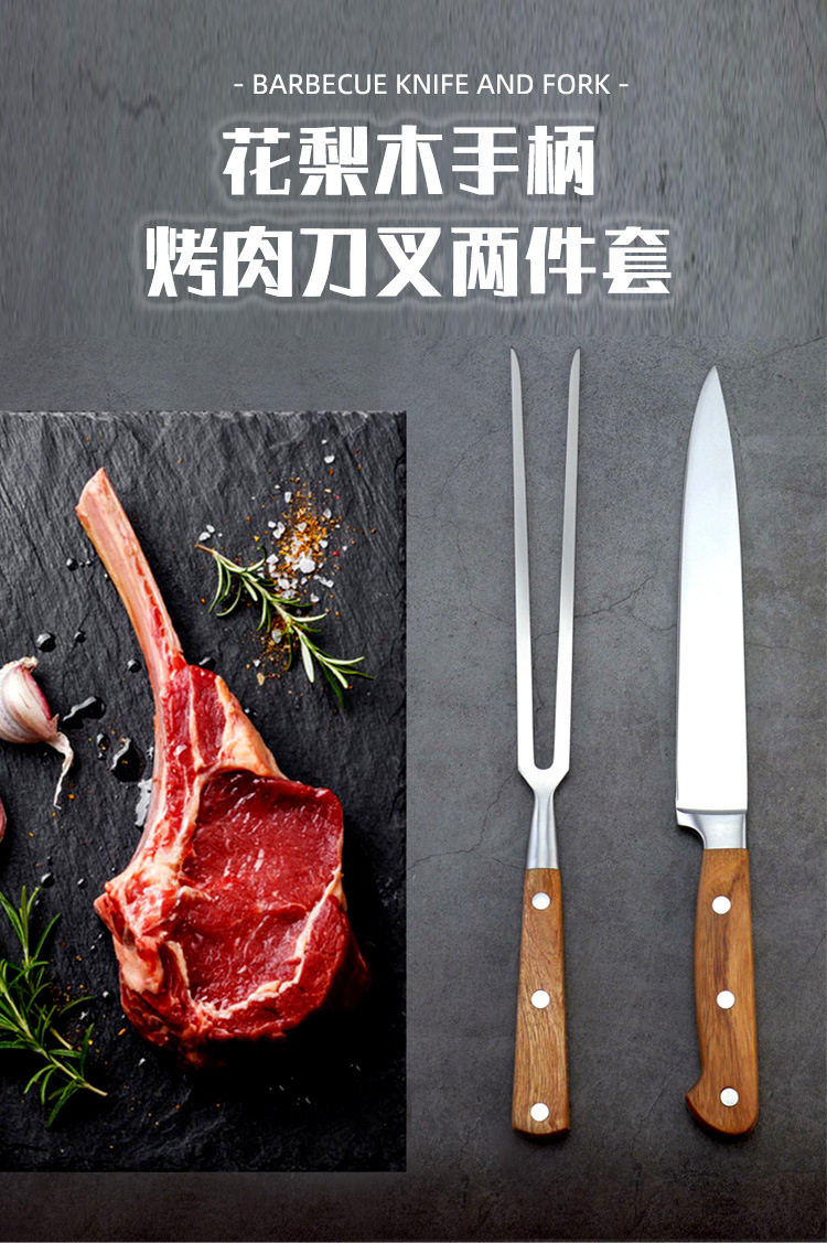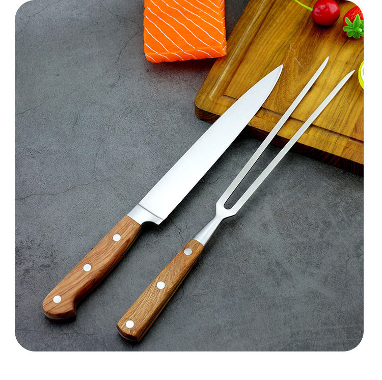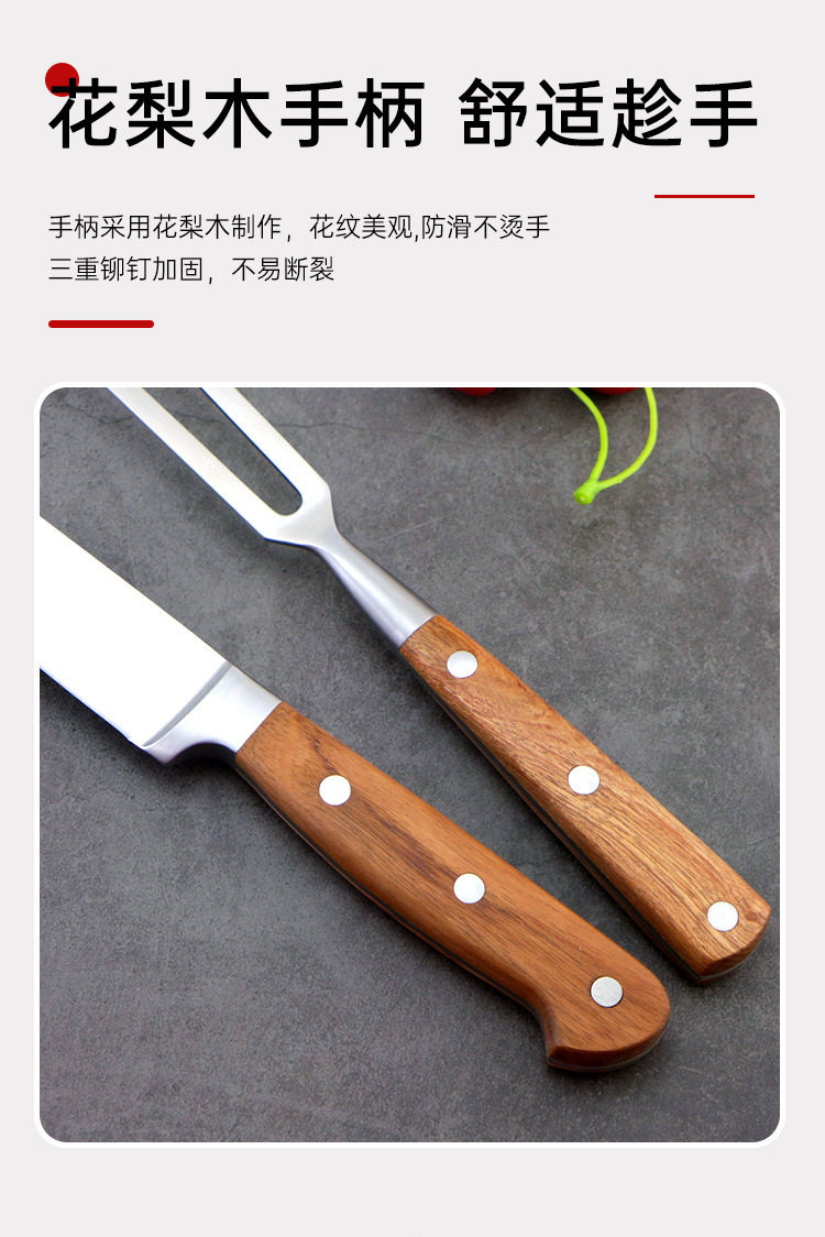 Rosewood Handle Stainless Steel Barbecue Knife and Fork 2-Piece Set Outdoor Steak Grilled Sheep Set Tool