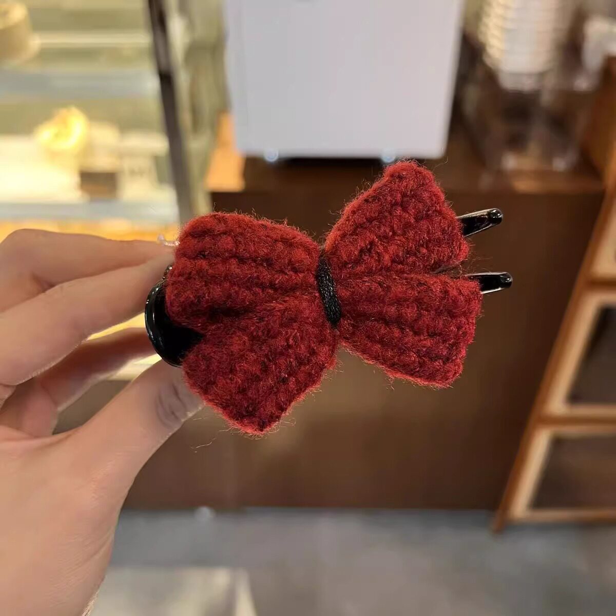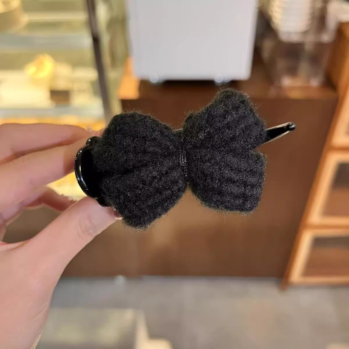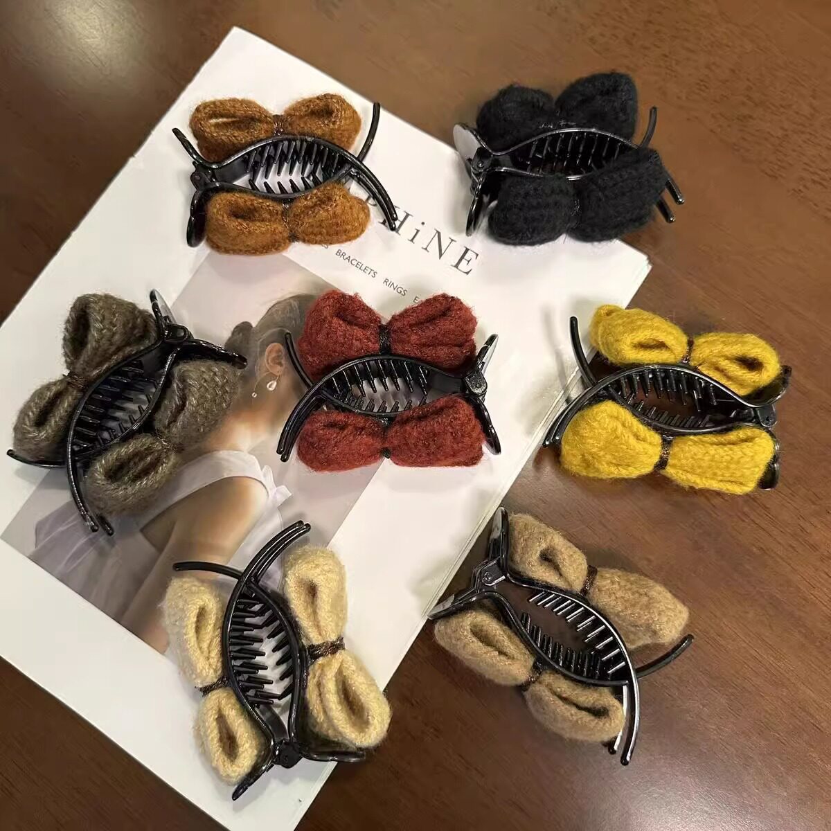 Knitted Bow Grab Clip Women's Autumn and Winter Ball Hair Clip Headwear 2024 New Back of Head Disc Hair Fixing Hairpin