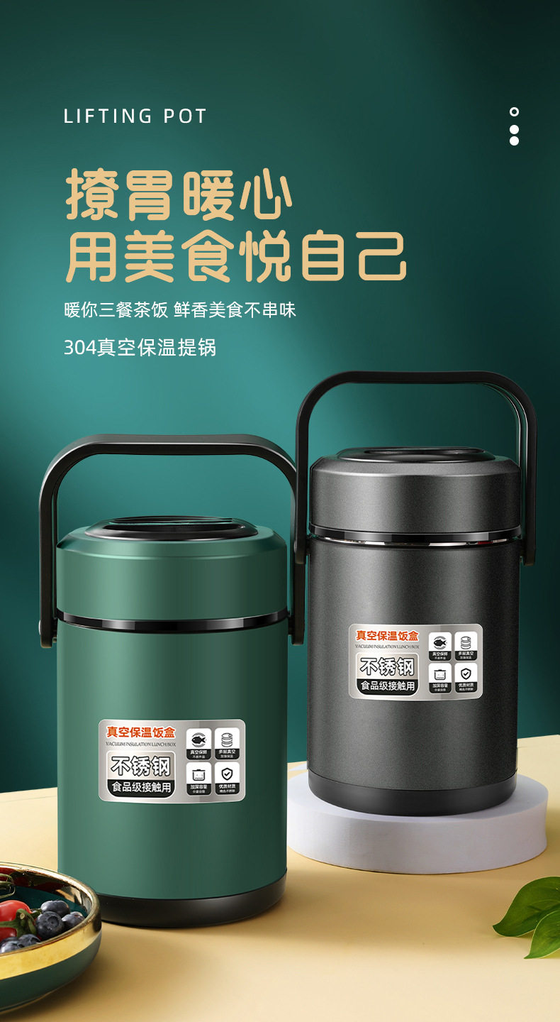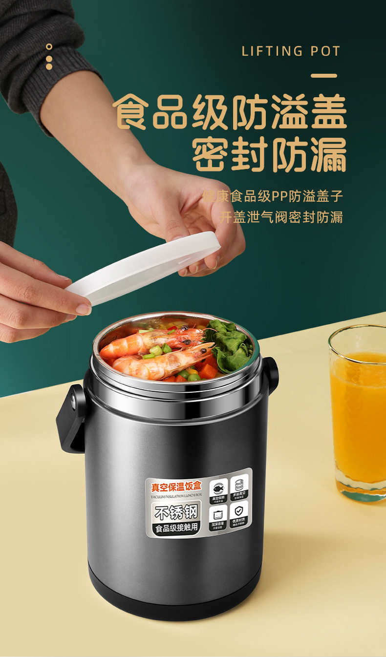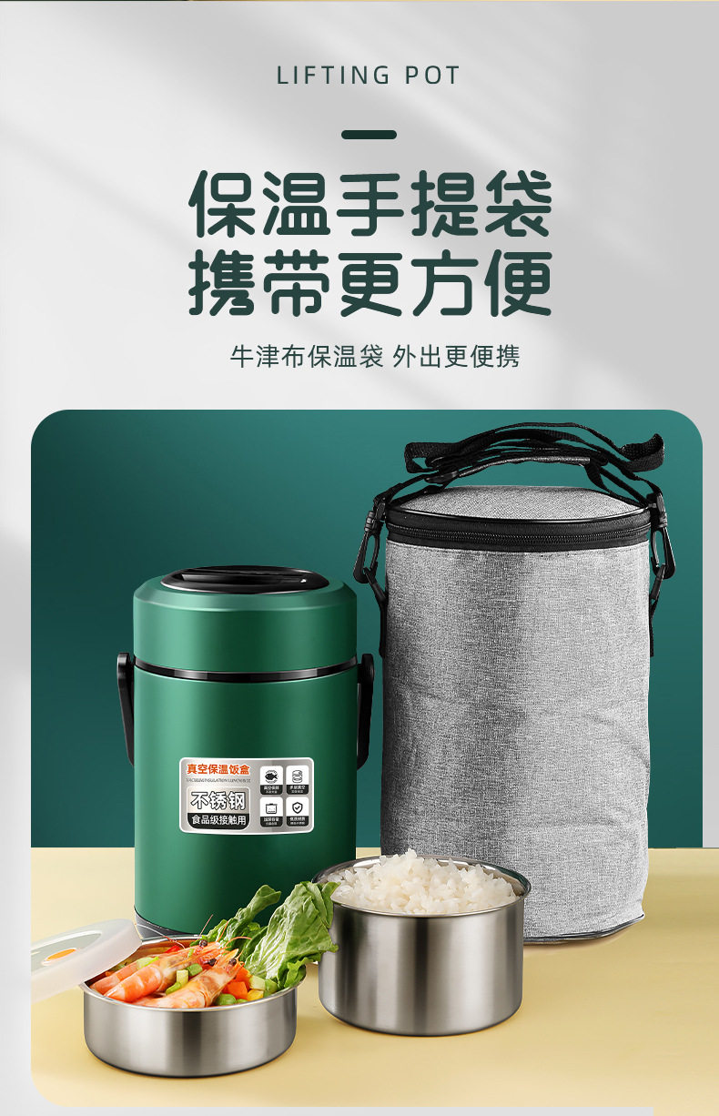 Carefully Selected 316 Stainless Steel Insulated Pot, Large-Capacity Insulated Bucket for Office Workers, Three-Layer Vacuum Portable Insulated Lunch Box