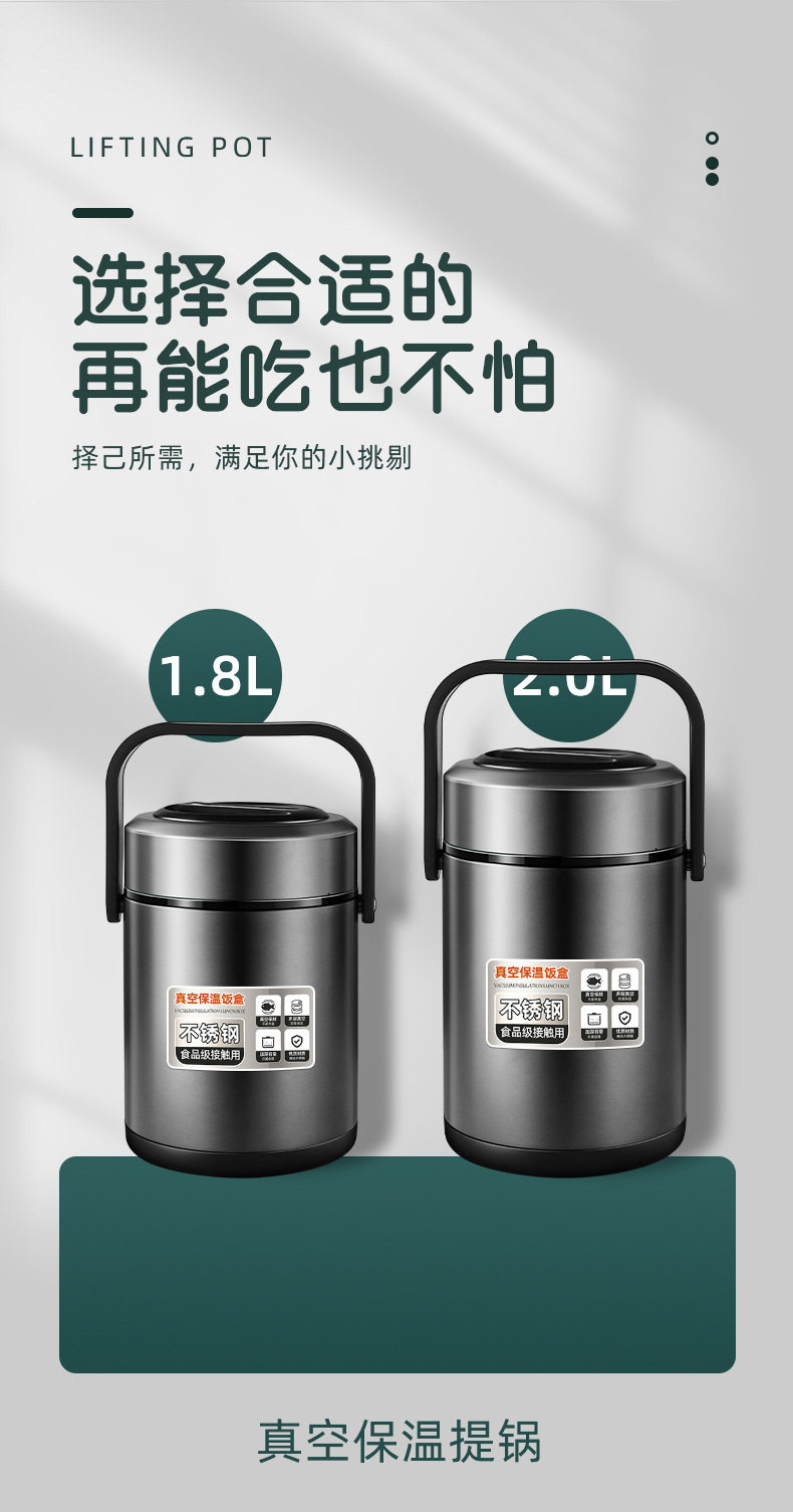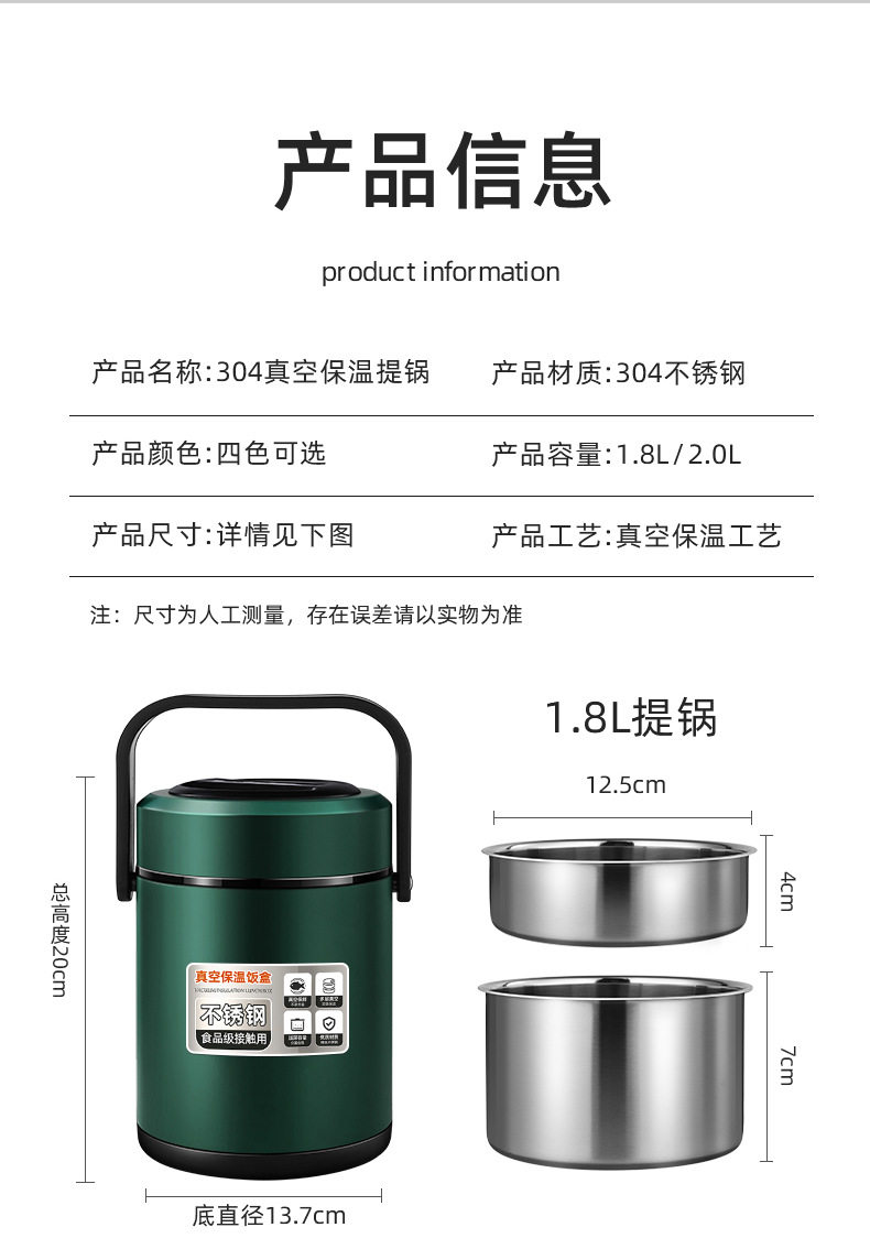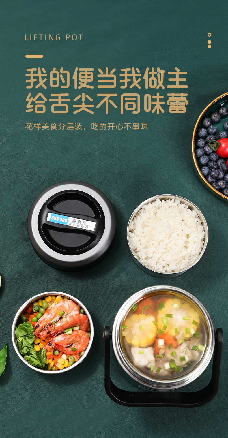 Carefully Selected 316 Stainless Steel Insulated Pot, Large-Capacity Insulated Bucket for Office Workers, Three-Layer Vacuum Portable Insulated Lunch Box