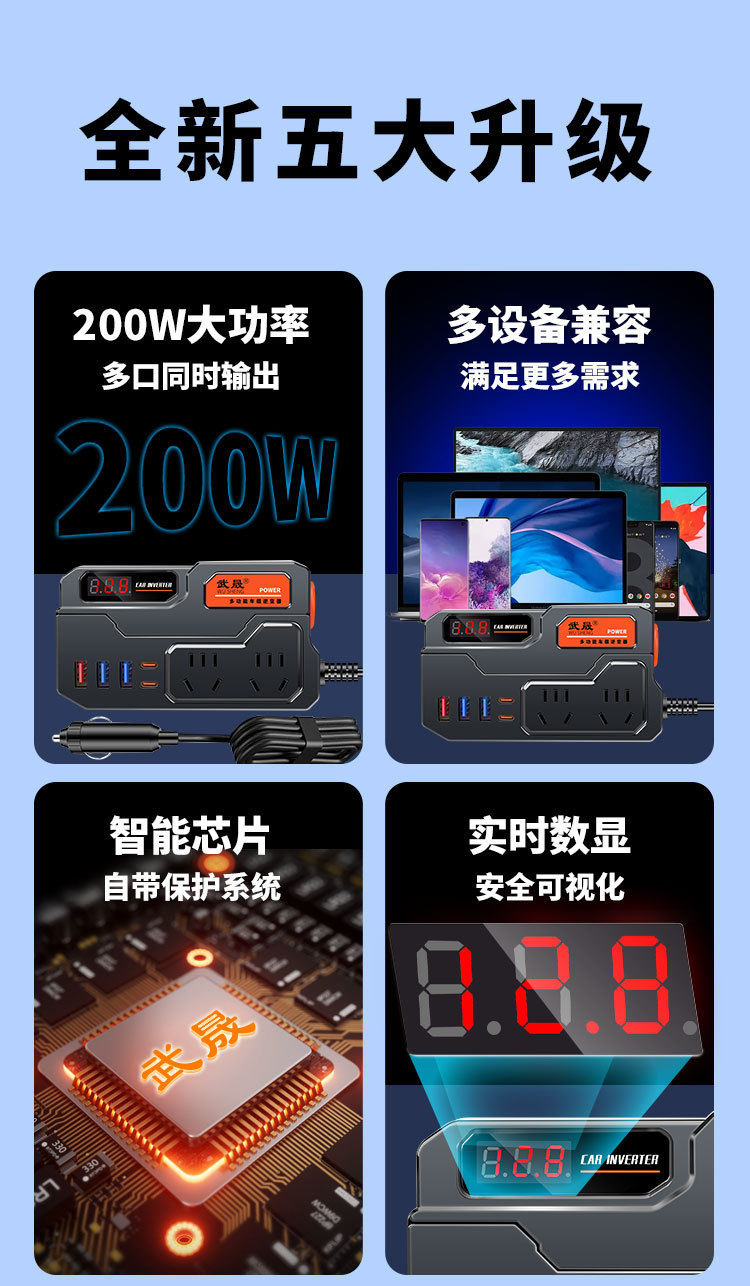 | Model | Newly upgraded 200w square shell dual pd port [intelligent digital display + qc3.0 fast charge],Newly upgraded 200w square shell dual pd port [basic model] |