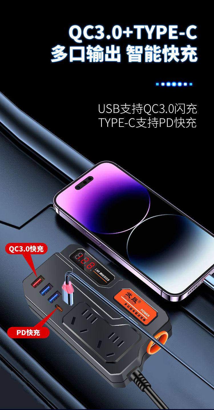 Car inverter 12V/24V to 220V power converter universal car truck socket car charger
