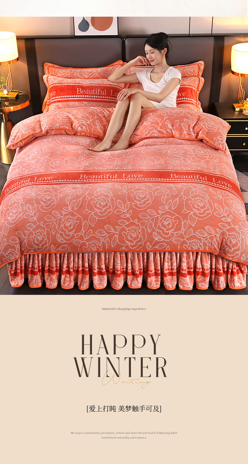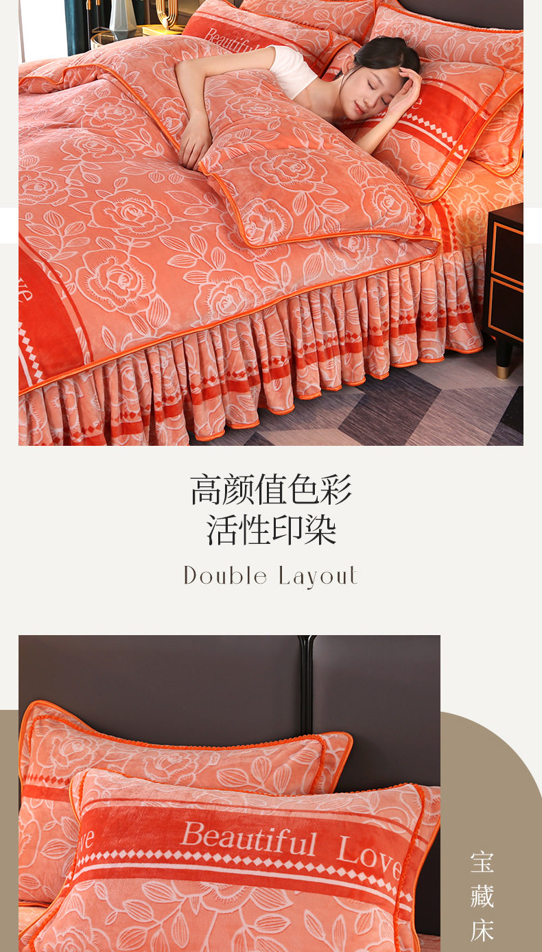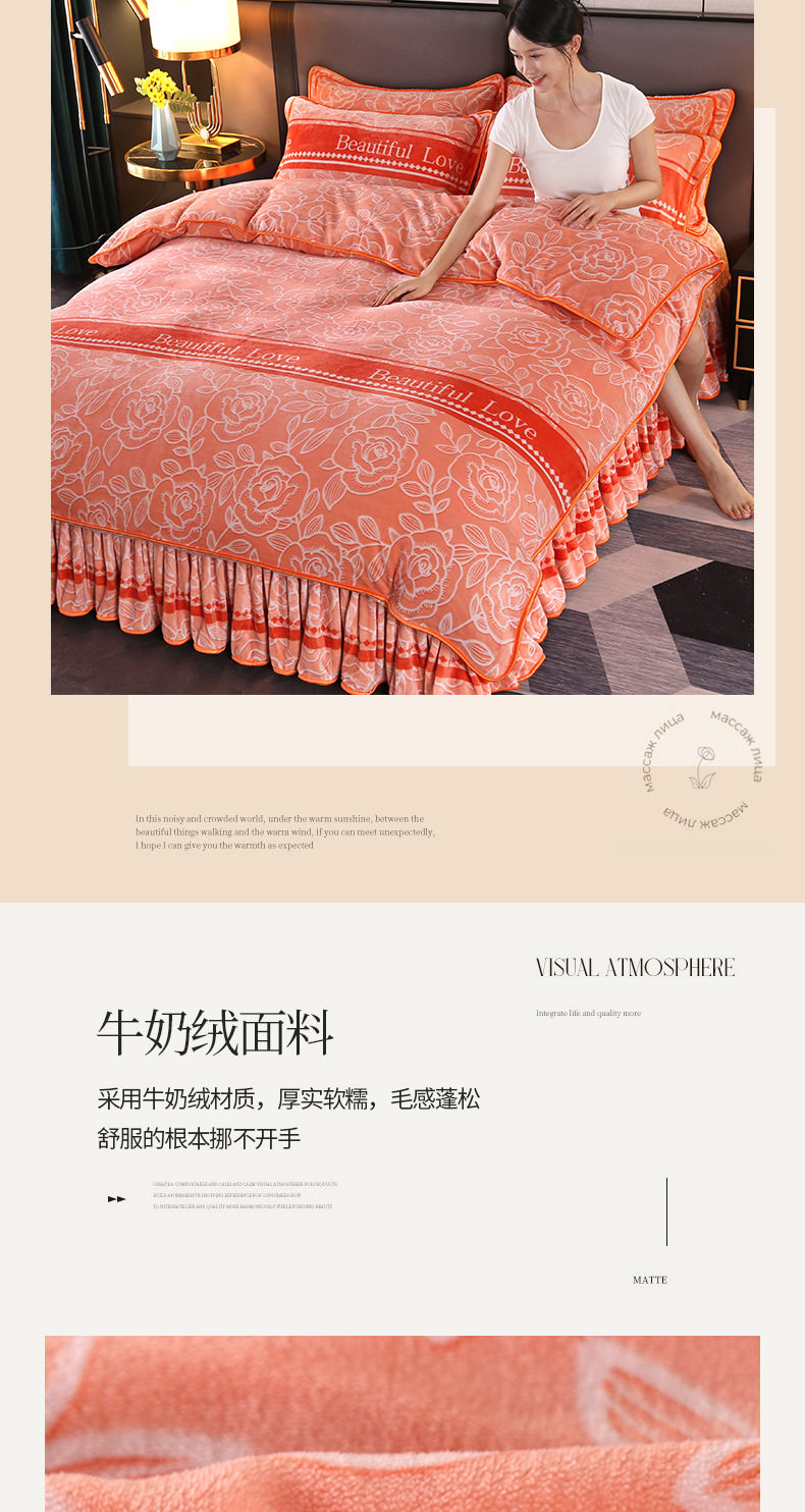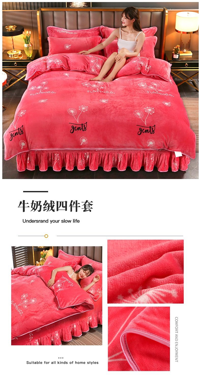 New thickened milk velvet four-piece flanged coral velvet quilt cover single-piece winter double-sided warm bed sheet three-piece set