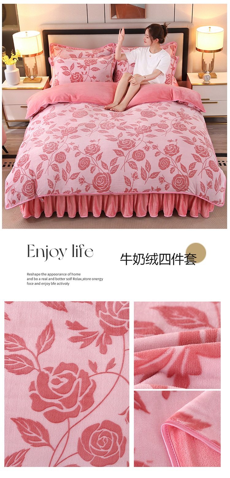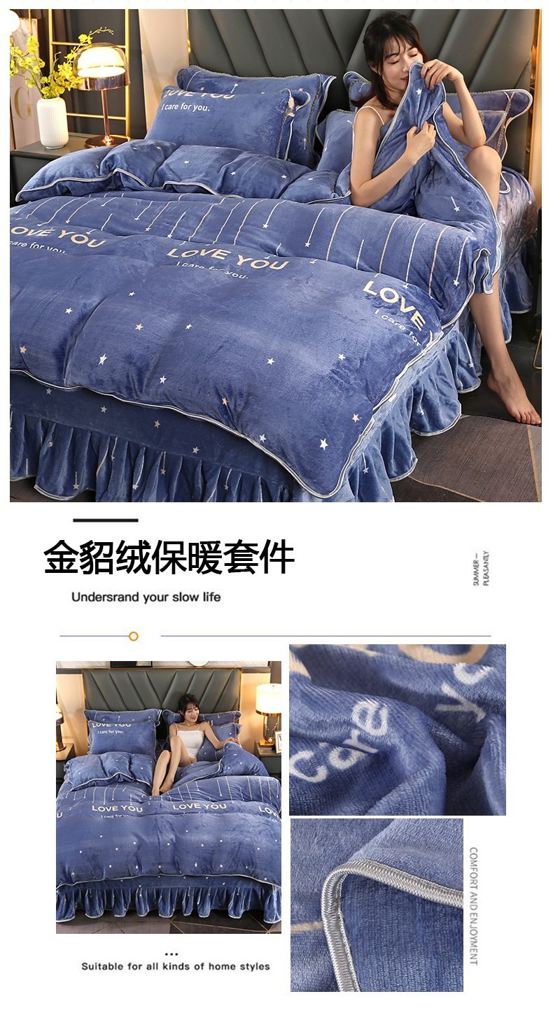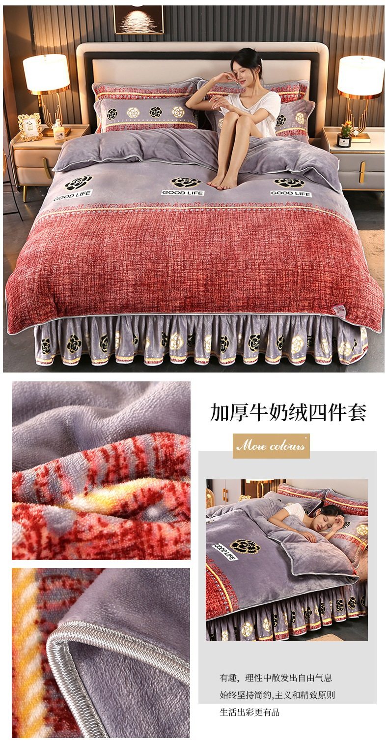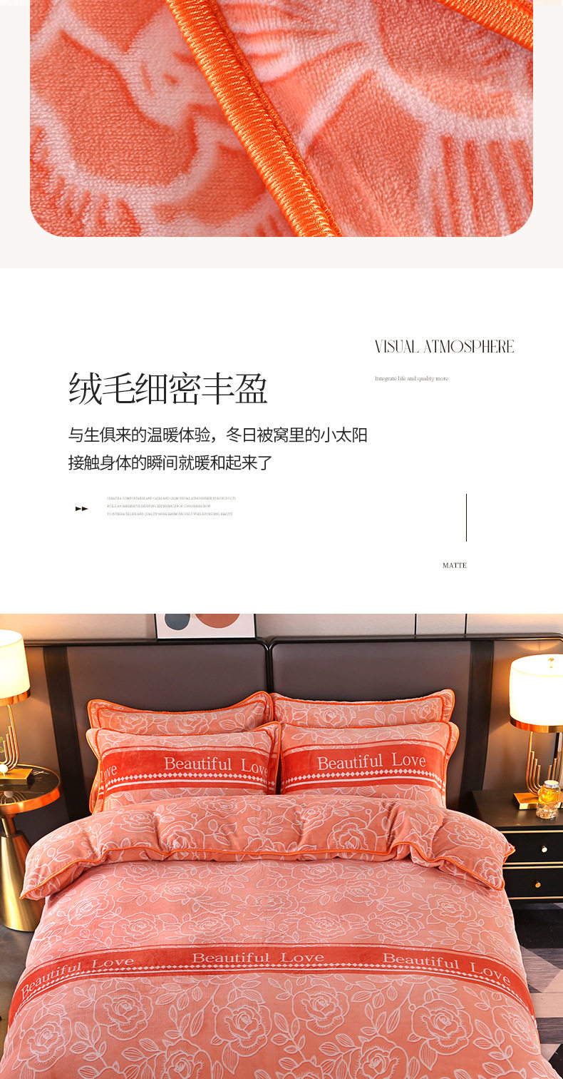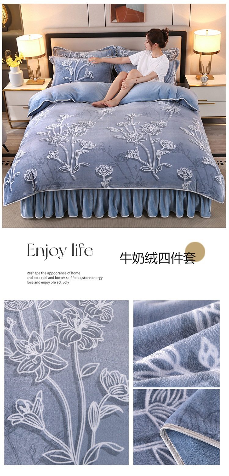New thickened milk velvet four-piece flanged coral velvet quilt cover single-piece winter double-sided warm bed sheet three-piece set