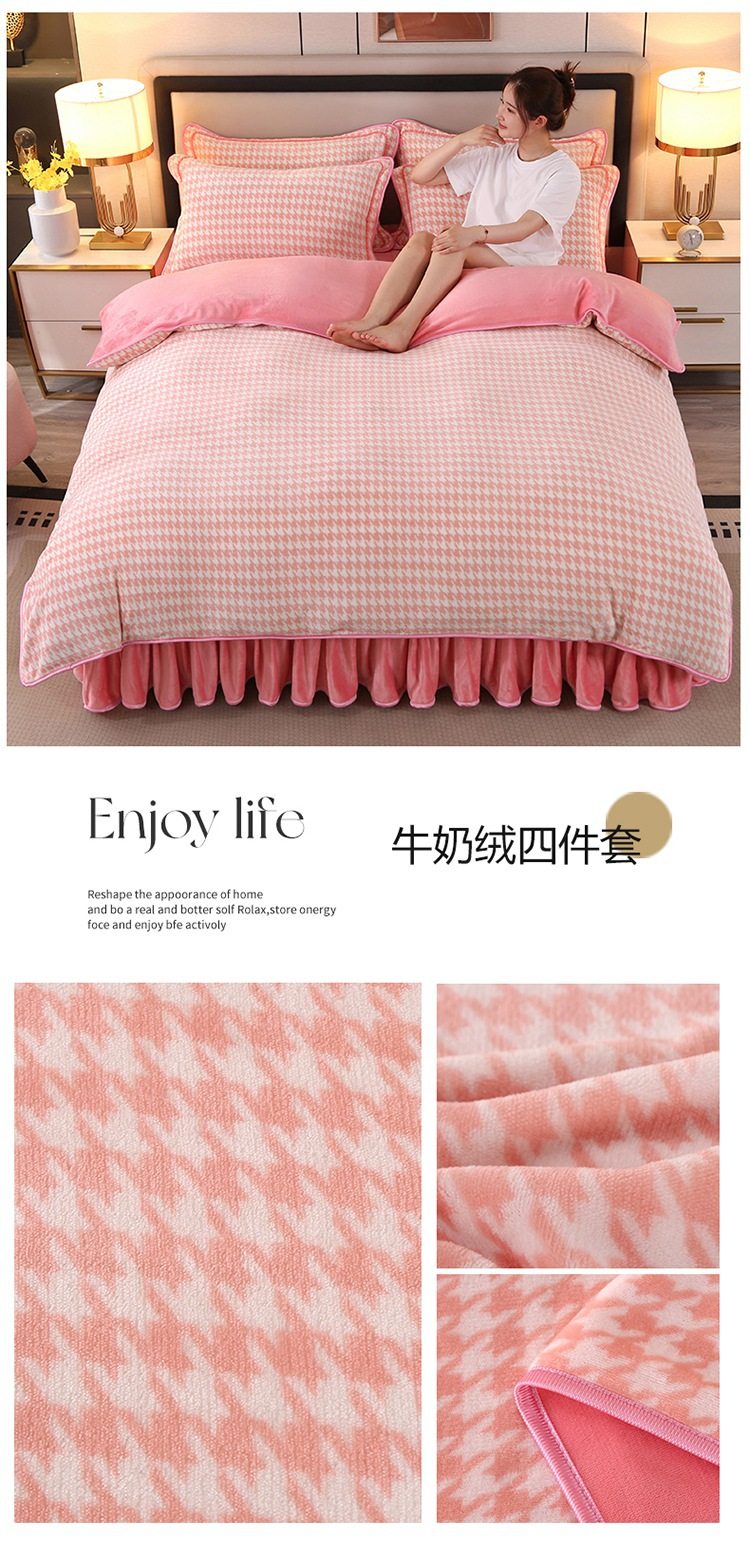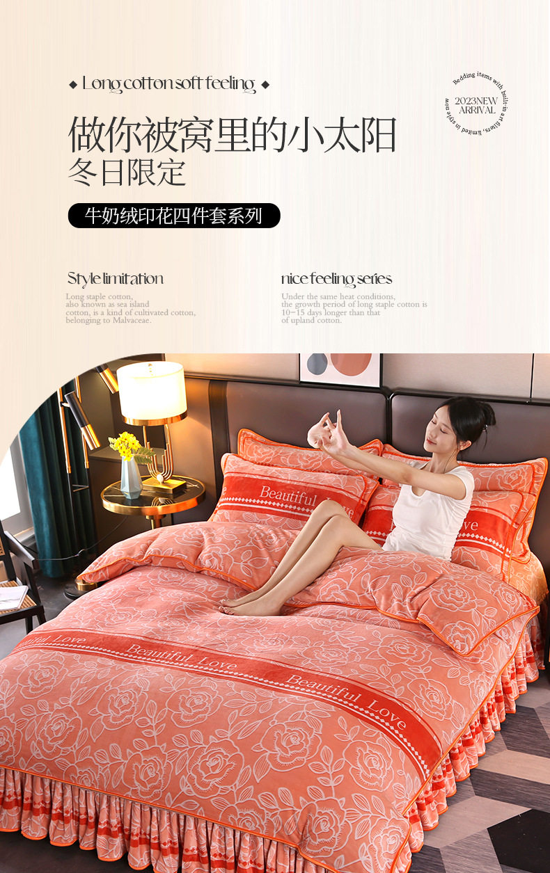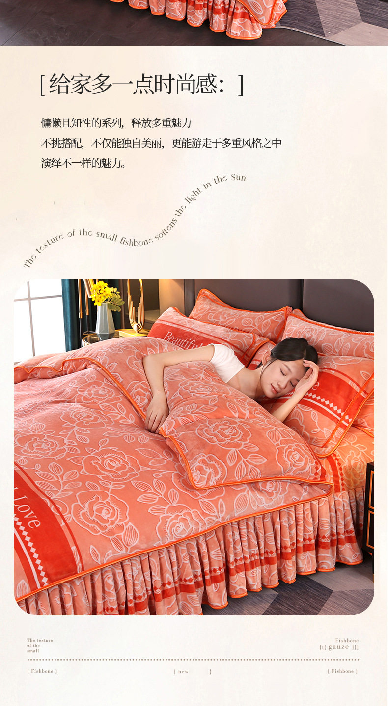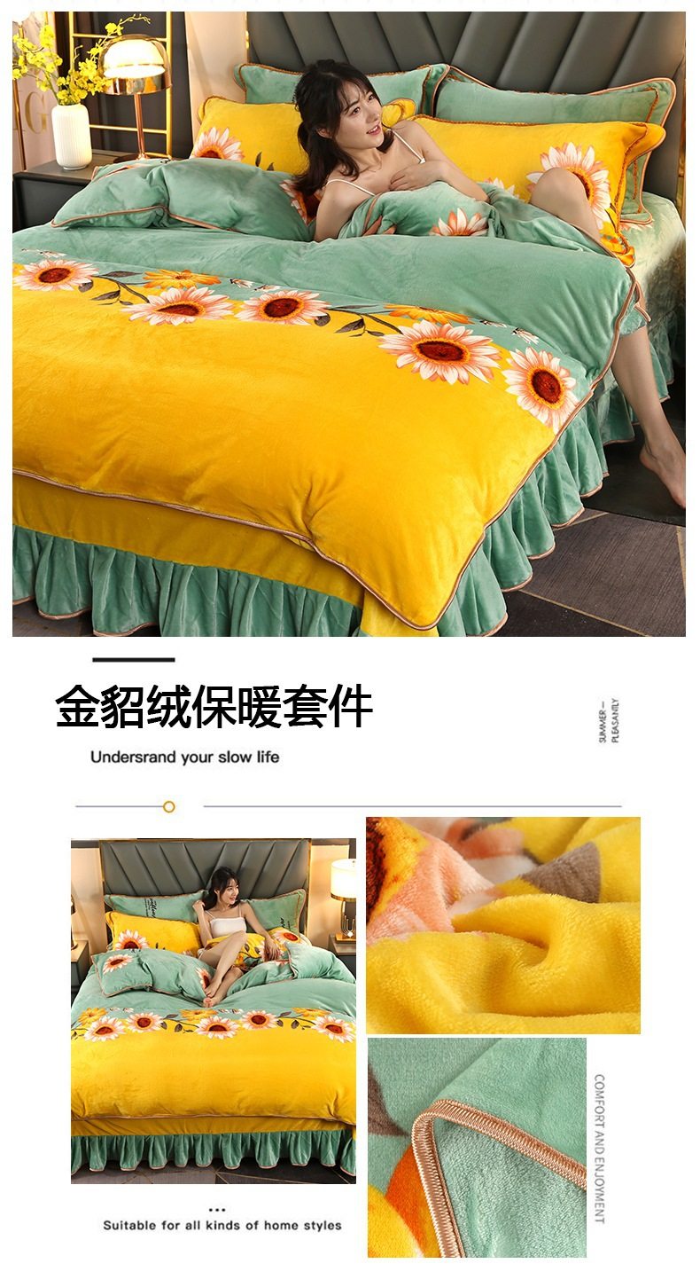 New thickened milk velvet four-piece flanged coral velvet quilt cover single-piece winter double-sided warm bed sheet three-piece set