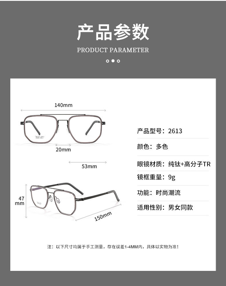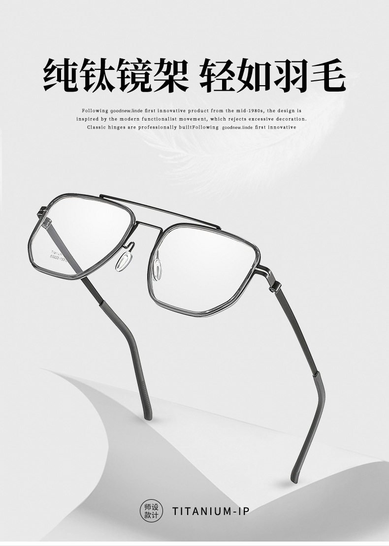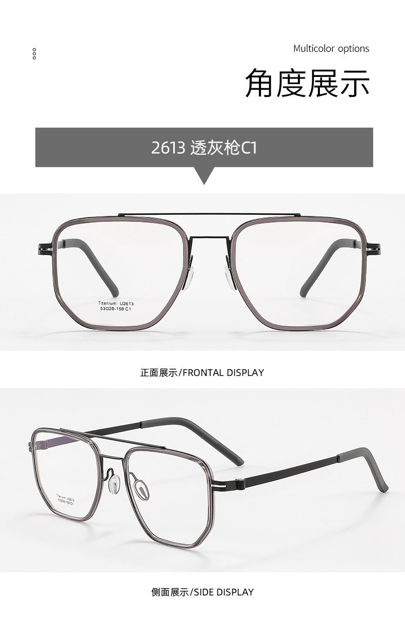Linde Same Frame Ultra Light Glasses Frame Pure Titanium Frame Men's Glasses Myopia Double Beam 2613 Danyang Optical Factory