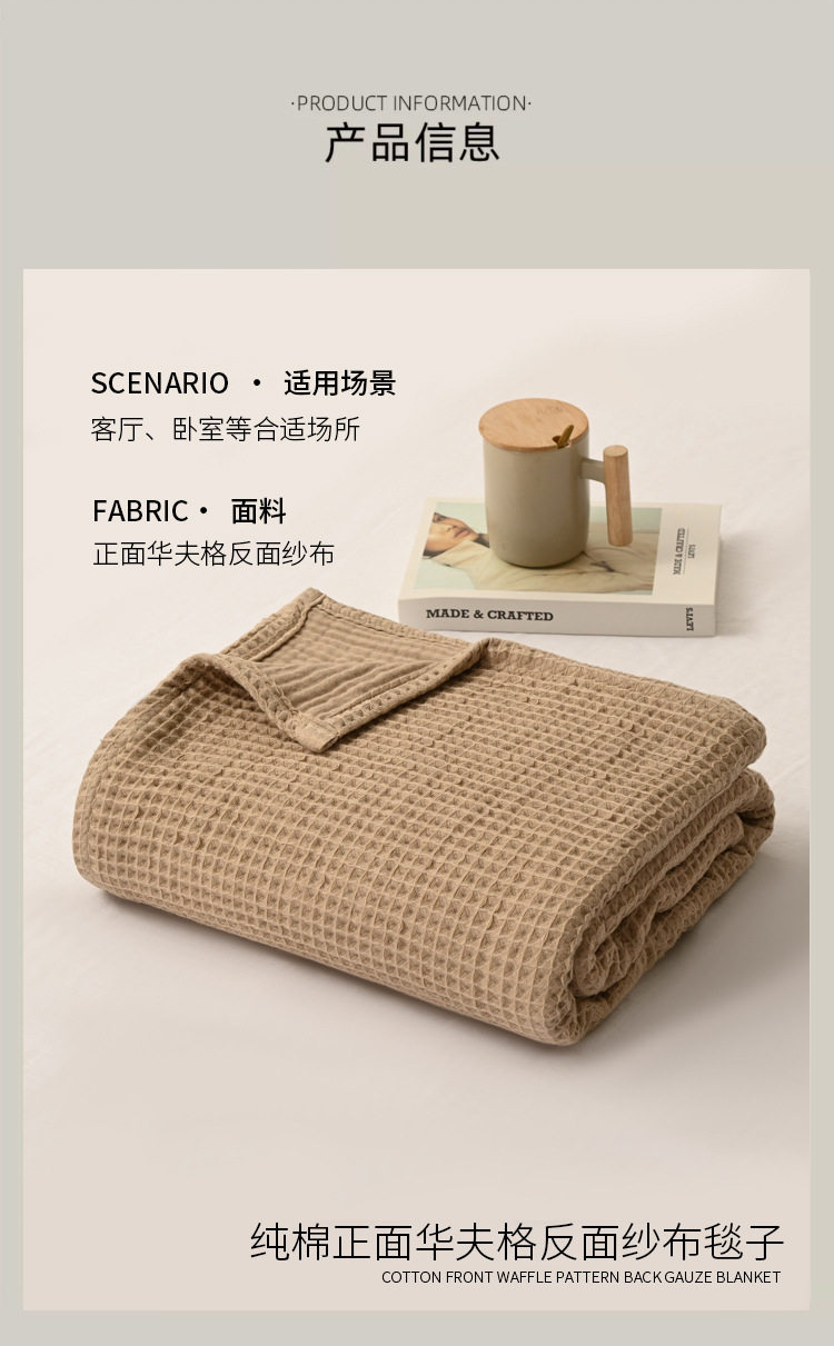 Customized Cotton Gauze Bedside Blanket Export Scandinavian Summer Sofa Towel Nap Air-Conditioning Blanket Pure Cotton Waffle Blanket