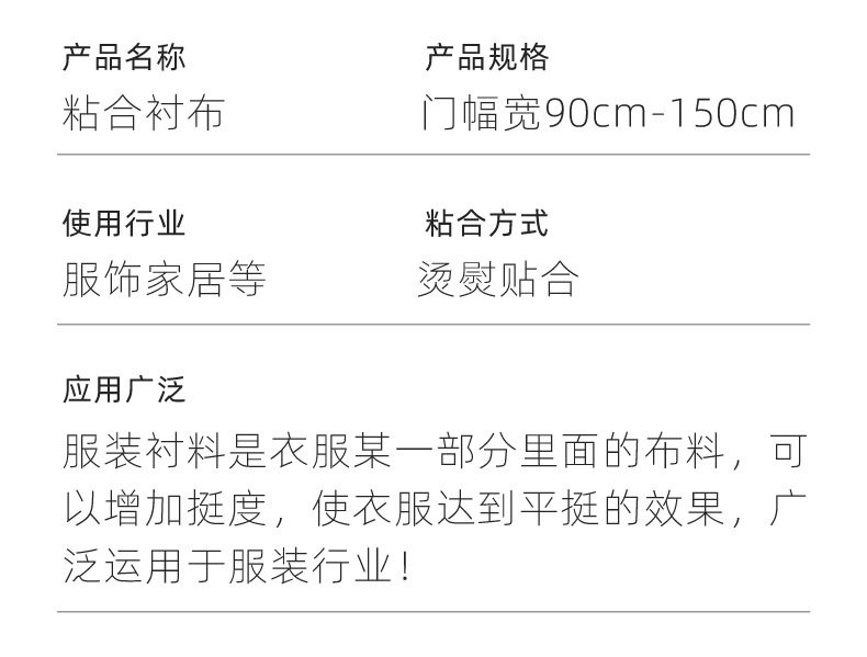 fusible lining garment accessories spun lining single-sided hard lining double-sided adhesive non-woven lining fabric hot-melt fabric lining fusible lining