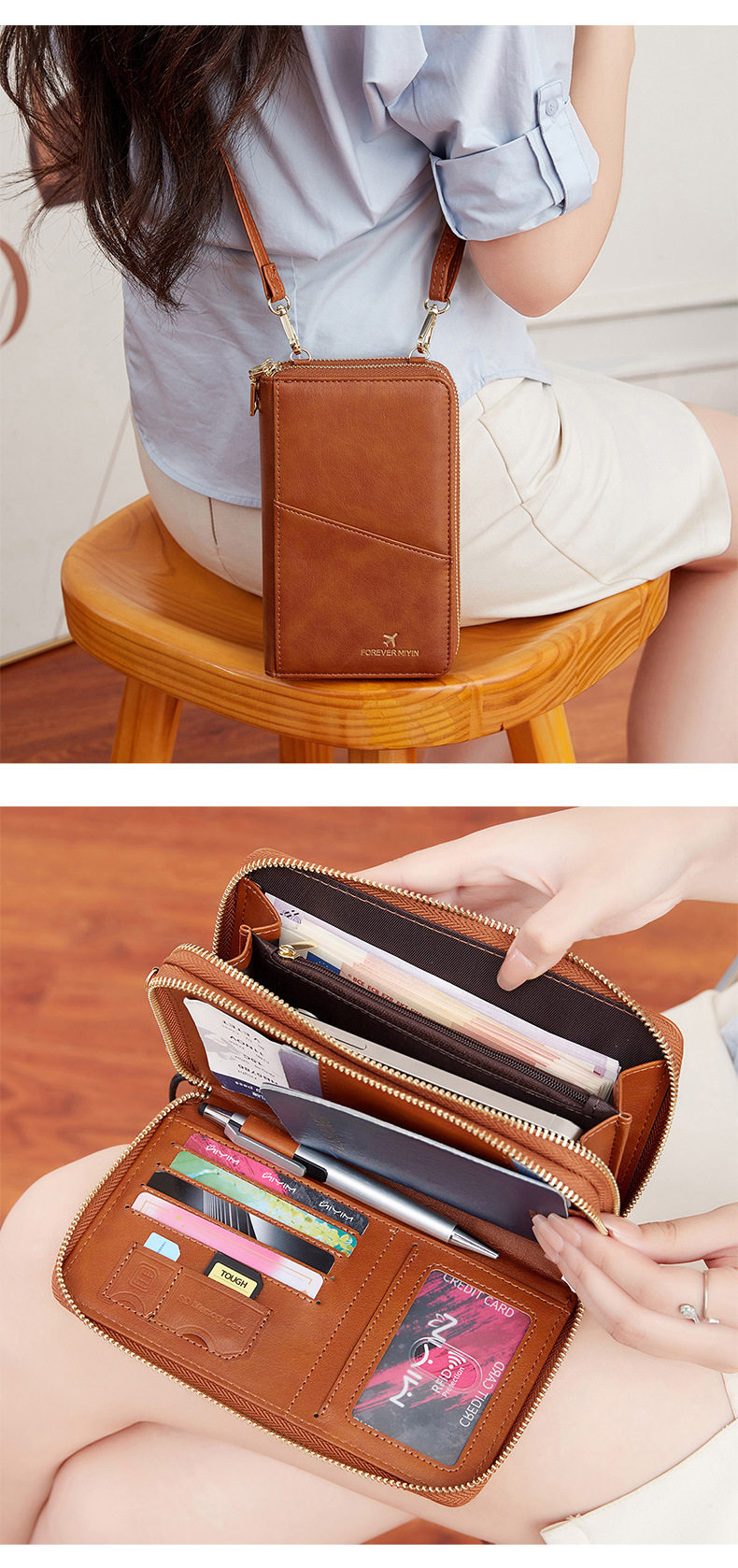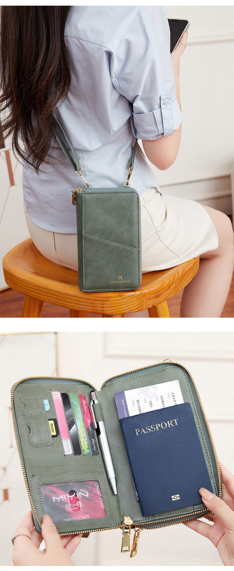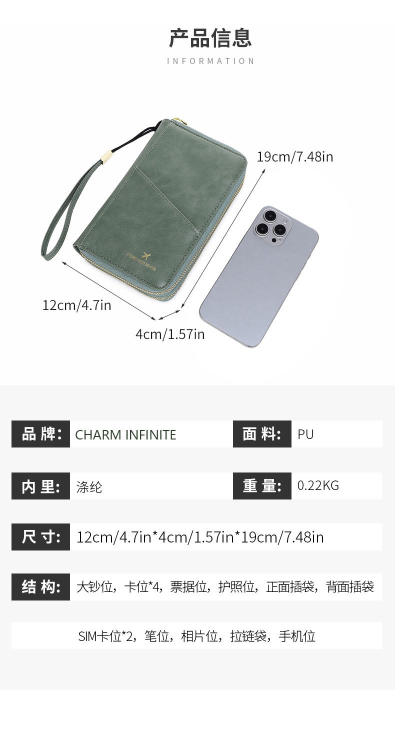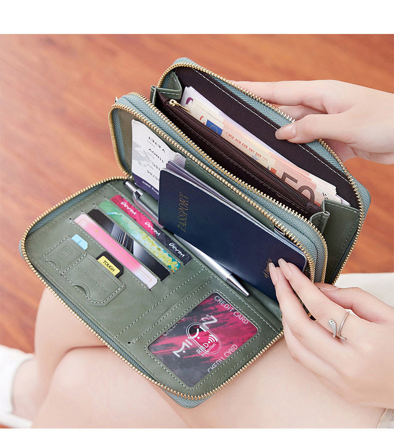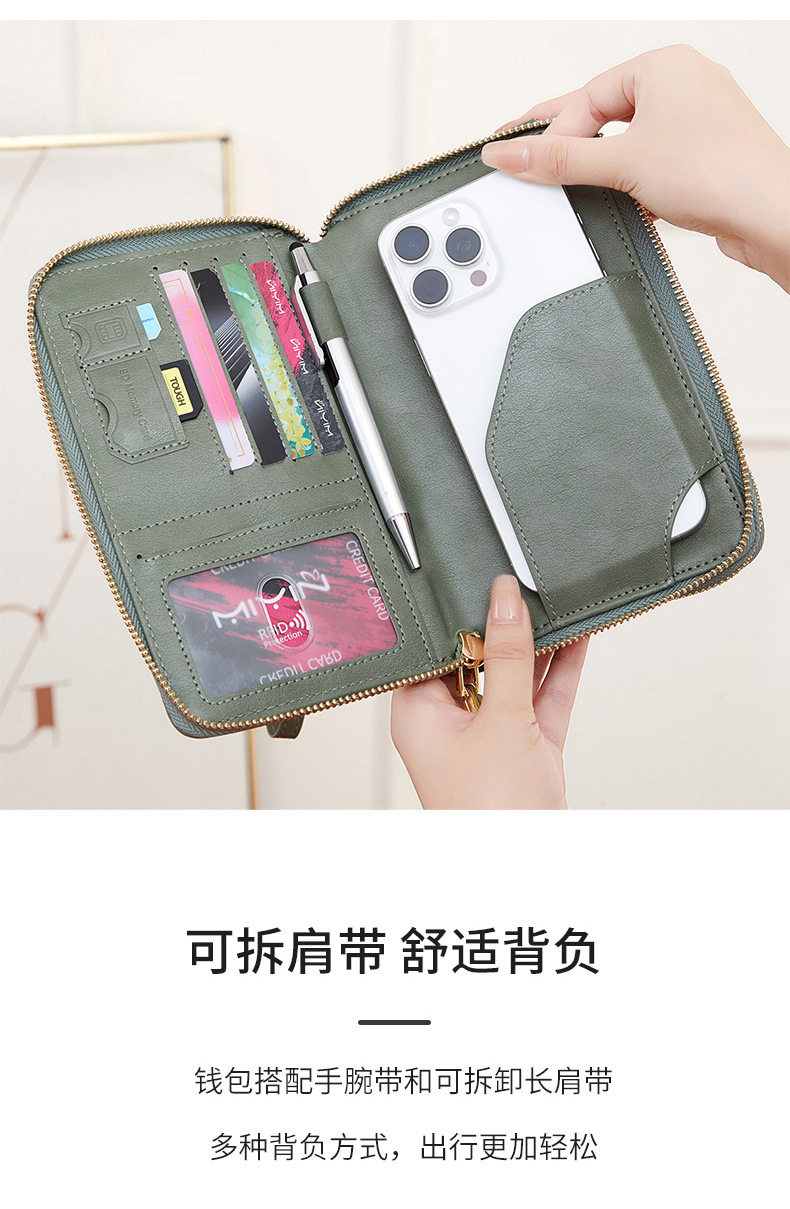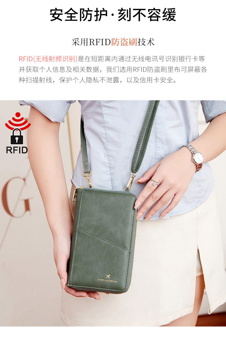 Cross-border New RFID Anti-theft Brush Passport Bag Long Zipper Crossbody Passport Wallet Multifunctional Storage ID Bag