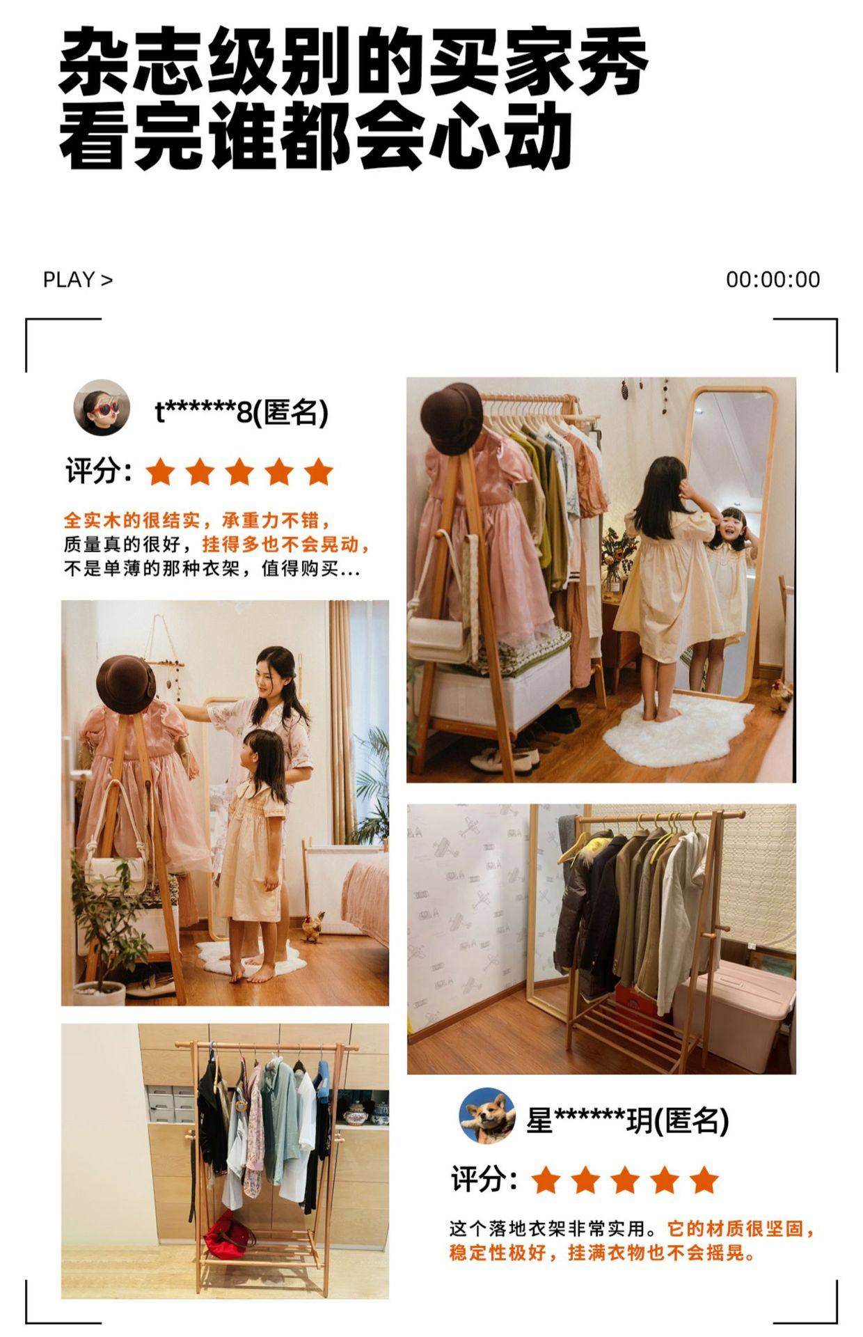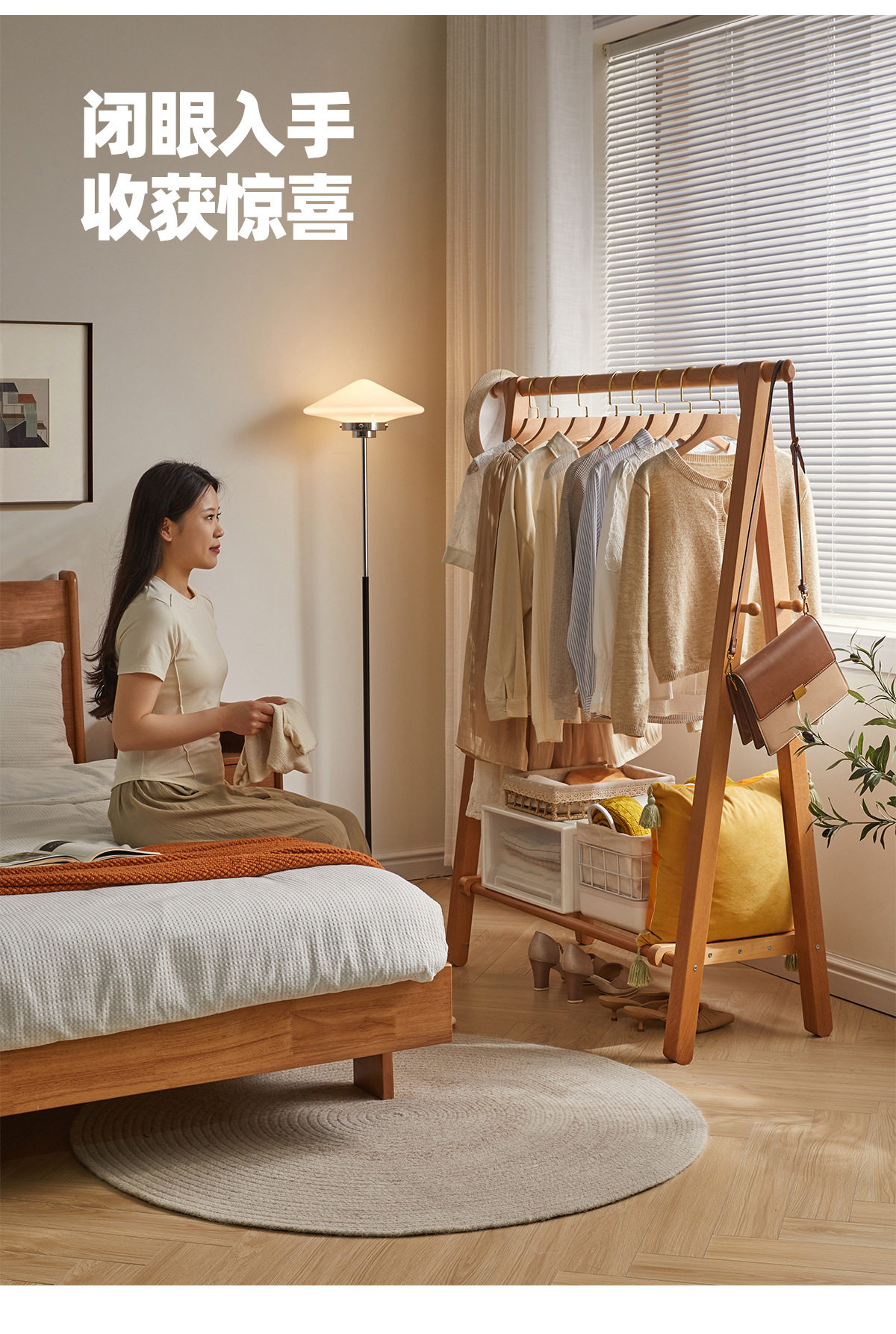Dongmu Jiayi Solid Wood Coat Rack Hanger Floor Bedroom Household Hanger Simple Clothes Rack Indoor Shelf