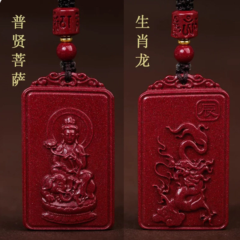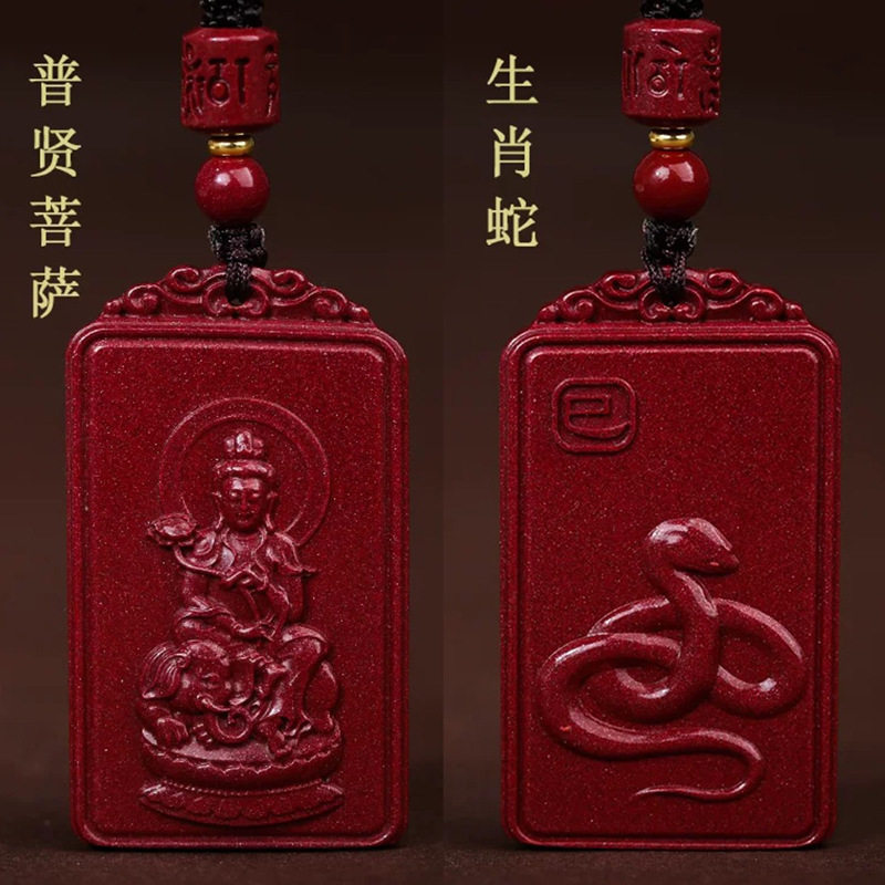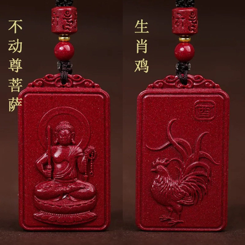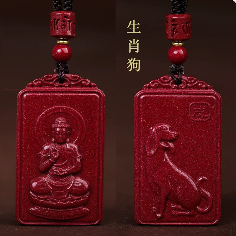 Natural authentic high content cinnabar cinnabar purple gold sand Zodiac Guardian God pendant men and women Benmingfo necklace