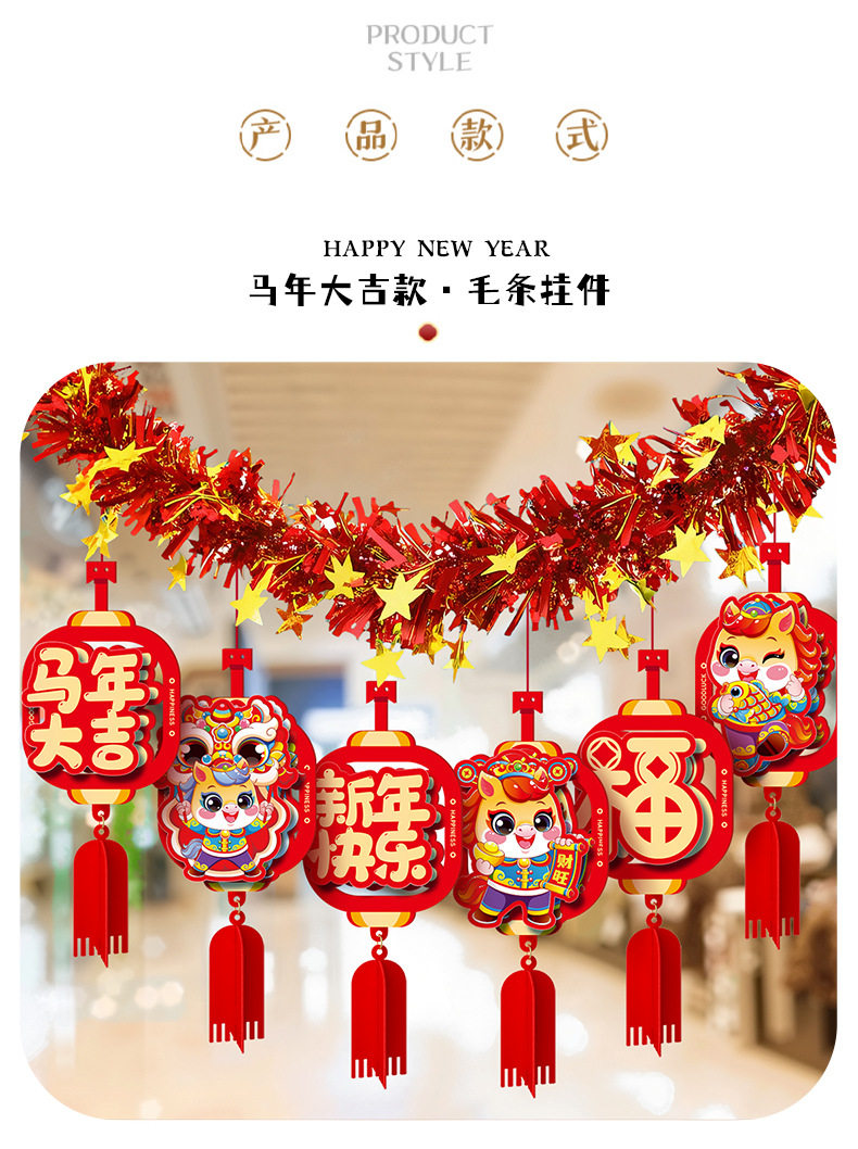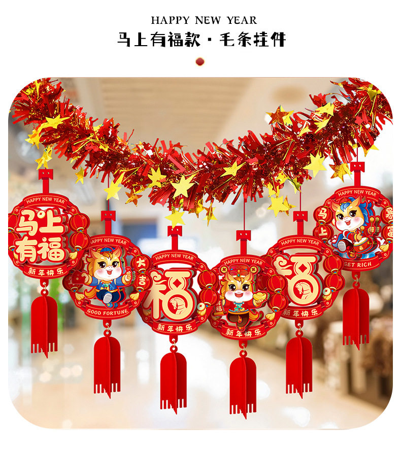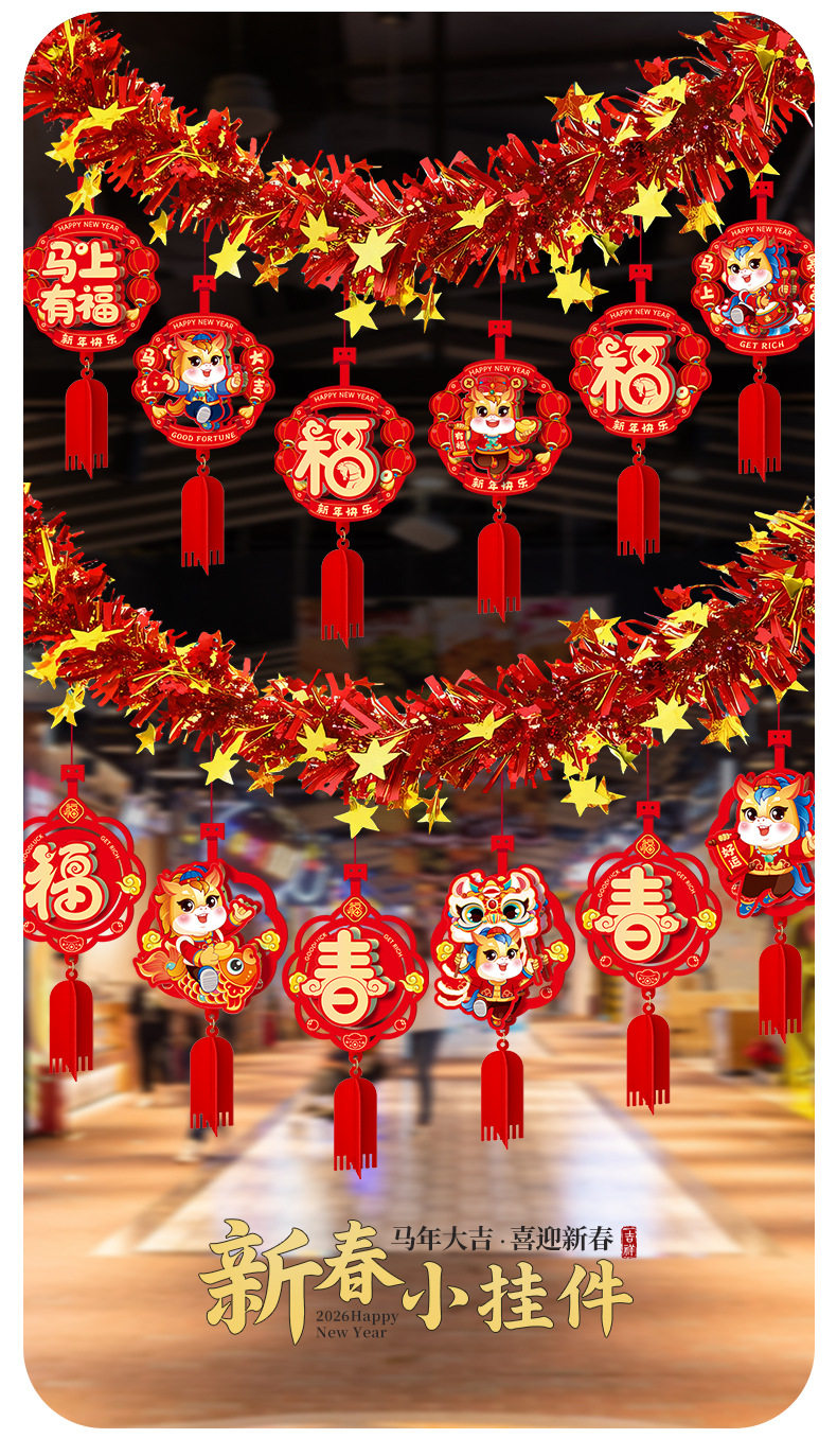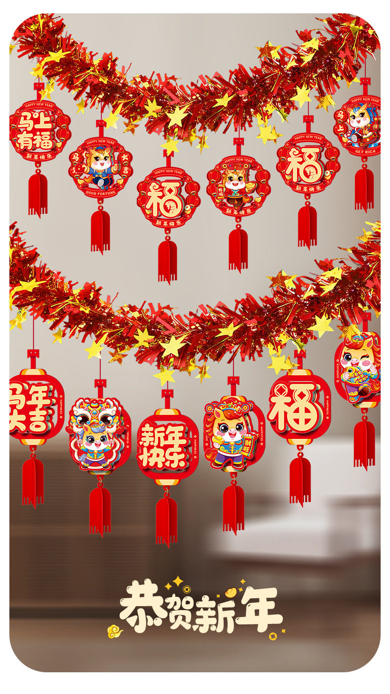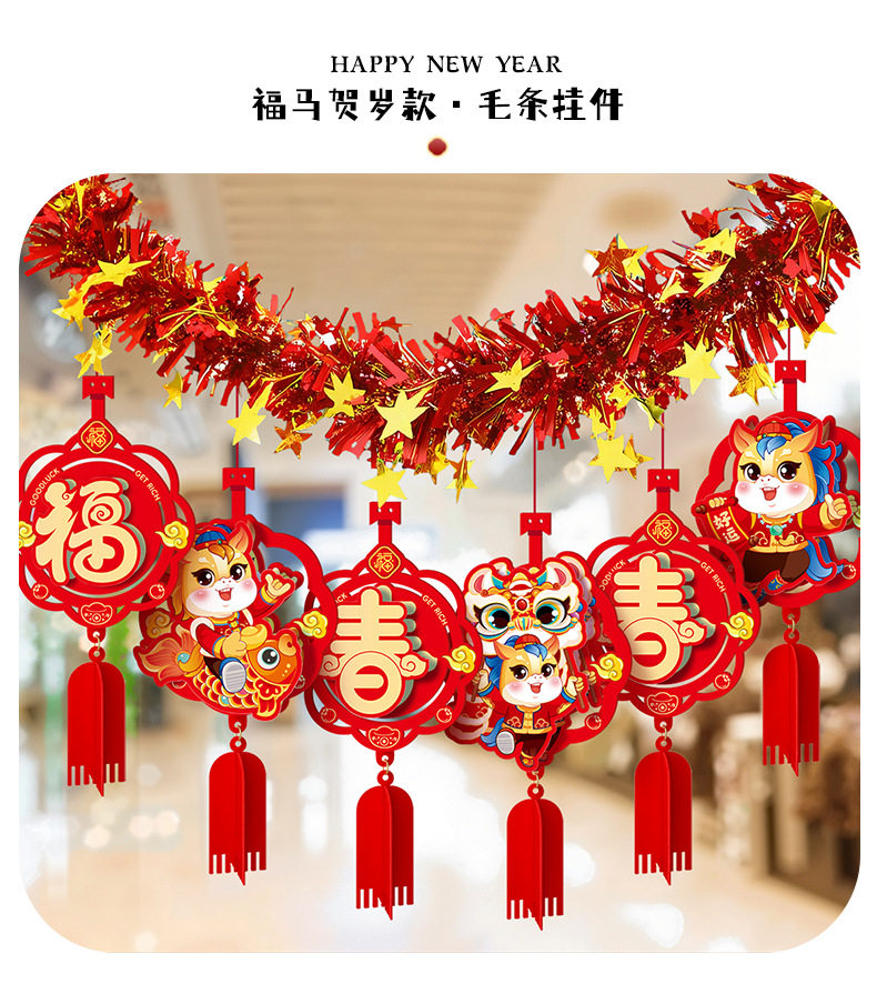 2026 Year of the Horse New Year Tinsel Decorations, Streamers, Garlands, Classroom Background Wall Decorations, Festive Atmosphere Hanging Decorations