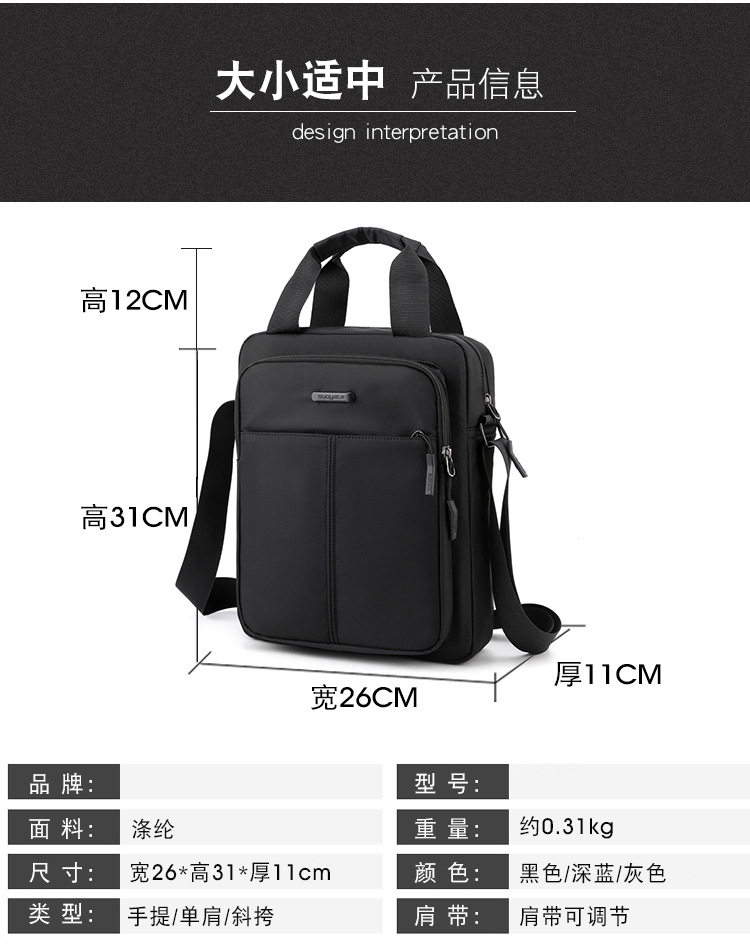New Crossbody Bag Men's Bag Shoulder Bag Oxford Cloth Casual Backpack Men's Large Capacity Business Portable Men's Bag