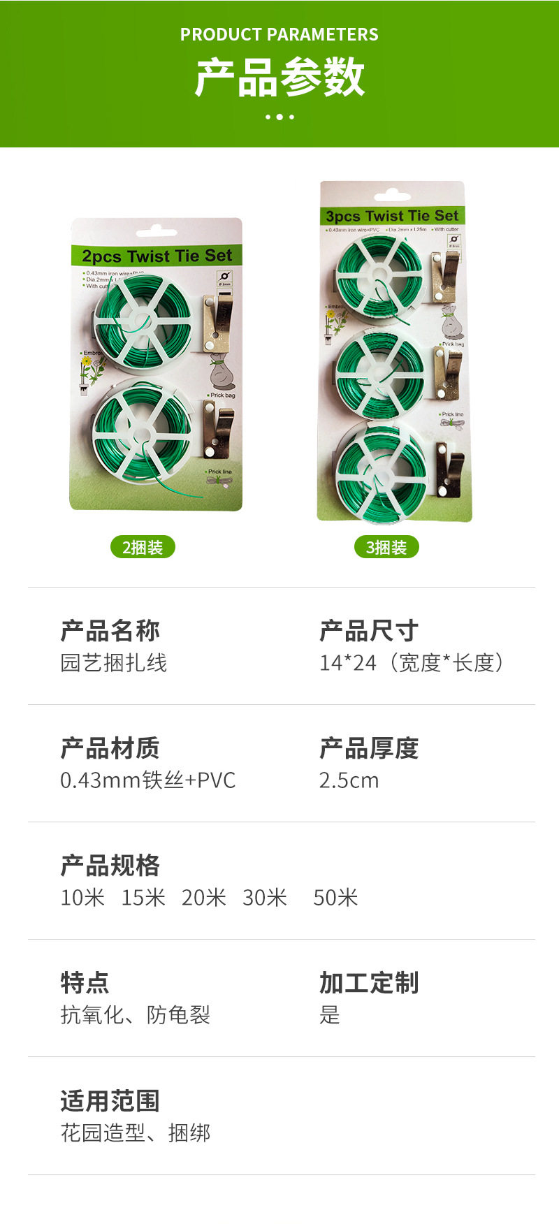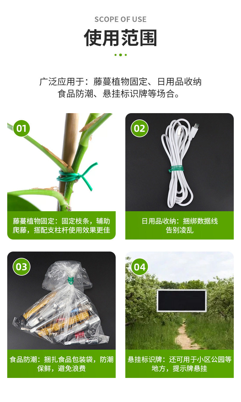 Garden Tie Wrap Plastic-Coated Wire Ties for Binding Flower Supports, Rose Climbing Plant Fixing Rope, Garden Tie