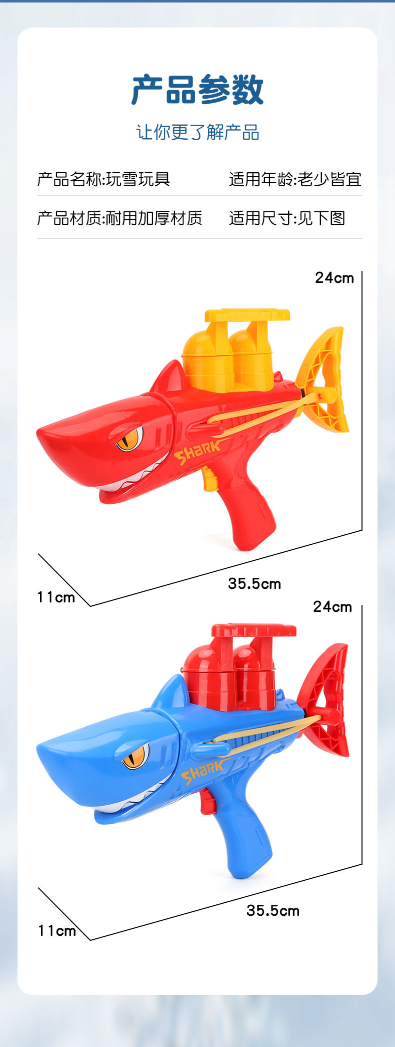 | Color | Red snowball gun opp,Red snowball gun + 2 soft pinballs opp,Blue snowball gun opp,Blue snowball gun + 2 soft pinballs opp,Red snowball gun e-commerce box,Red snowball gun + 2 soft pinball e-commerce box,Blue snowball gun e-commerce box,Blue snowball gun + 2 soft pinball e-commerce box |