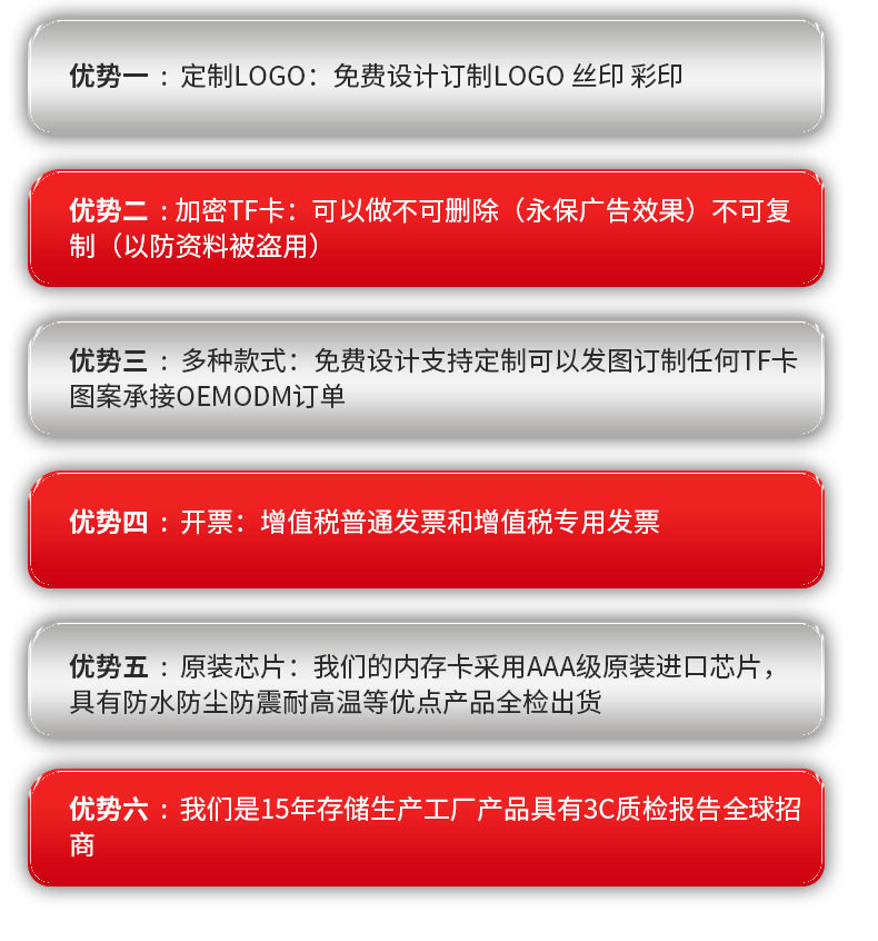 | Capacity | 1GB,2GB,4GB,8GB,16GB,32GB,64GB,512MB,256MB,128MB,1MB,128GB,256GB,C10u3 yousheng version 16gb,C10u3 yousheng version 32gb,C10u3 yousheng version 64gb,C10u3 yousheng version 128gb,C10u3 yousheng version 256gb |