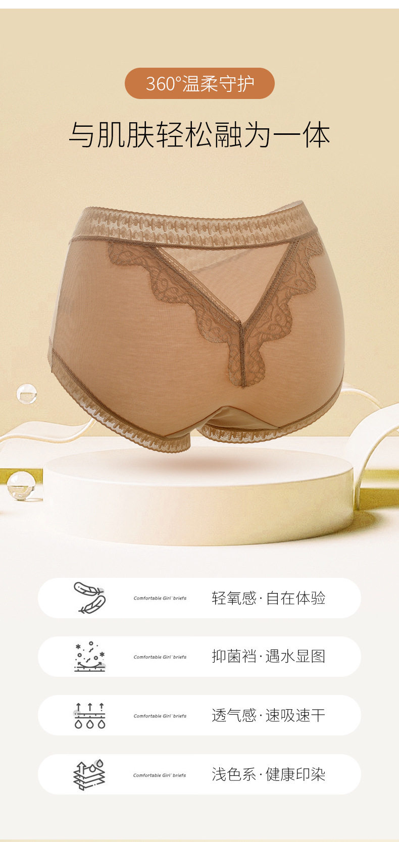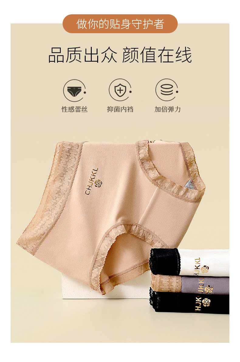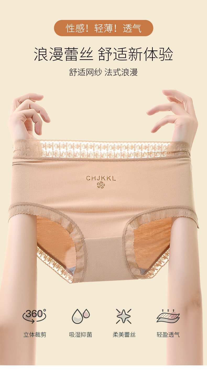 Mid-high Waist Underwear Women's Cotton Antibacterial Crotch Belly-lifting Hip-lifting Traceless Lace Sexy Autumn and Winter Small Belly Modal