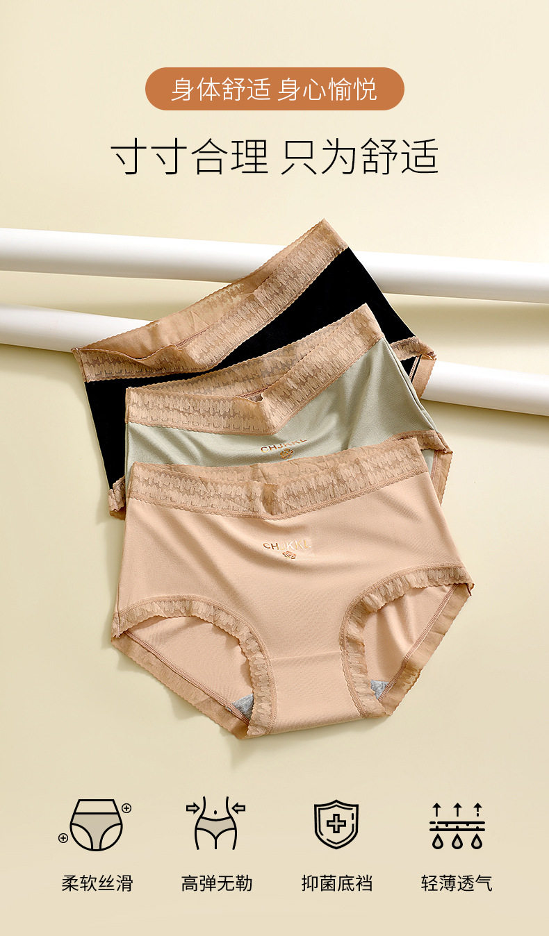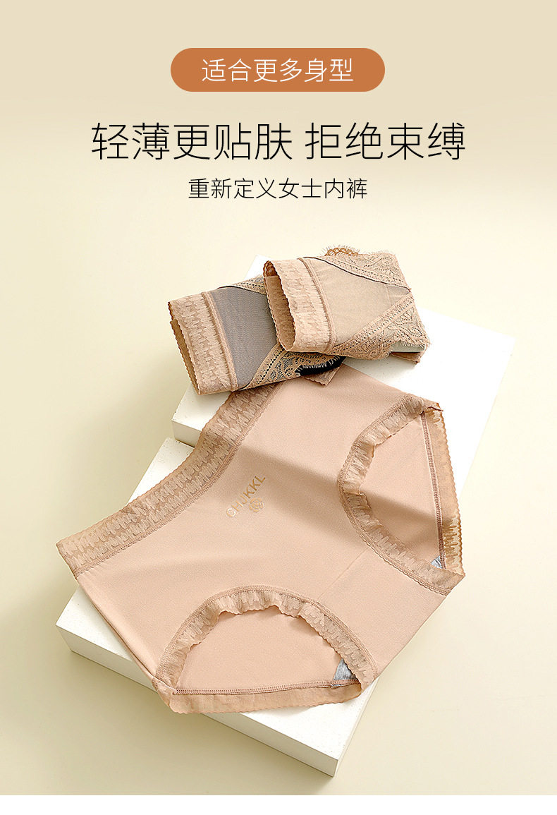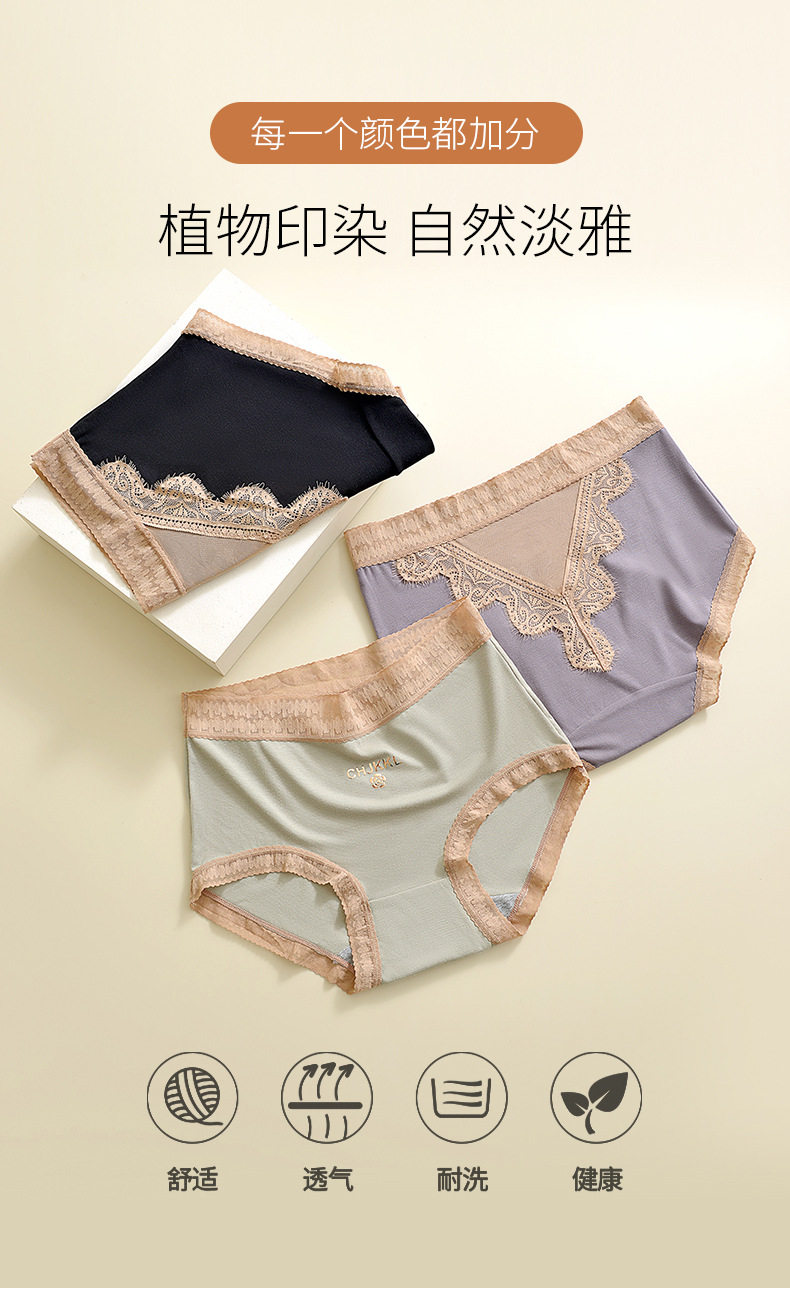 Mid-high Waist Underwear Women's Cotton Antibacterial Crotch Belly-lifting Hip-lifting Traceless Lace Sexy Autumn and Winter Small Belly Modal