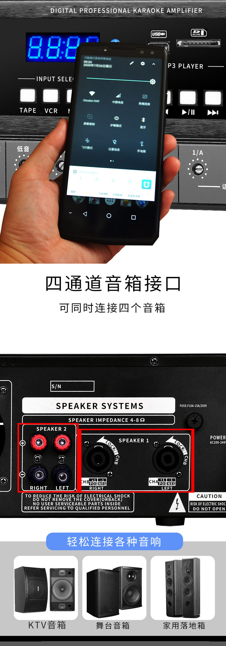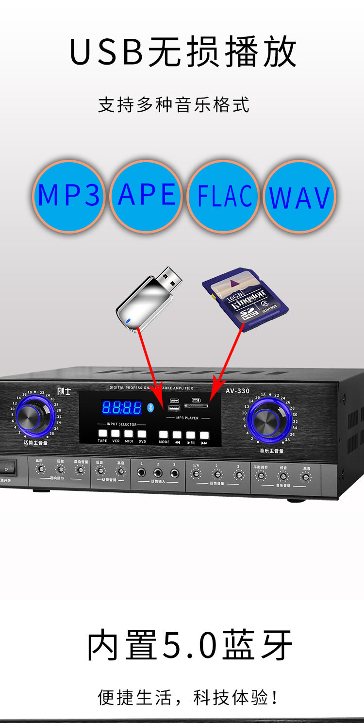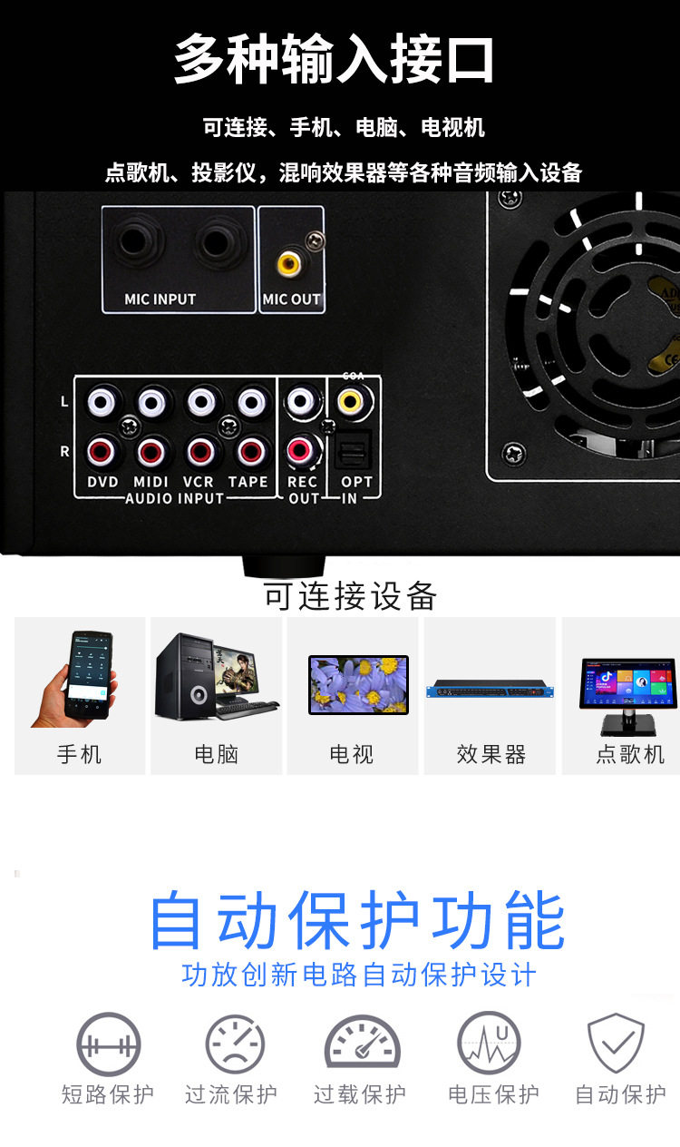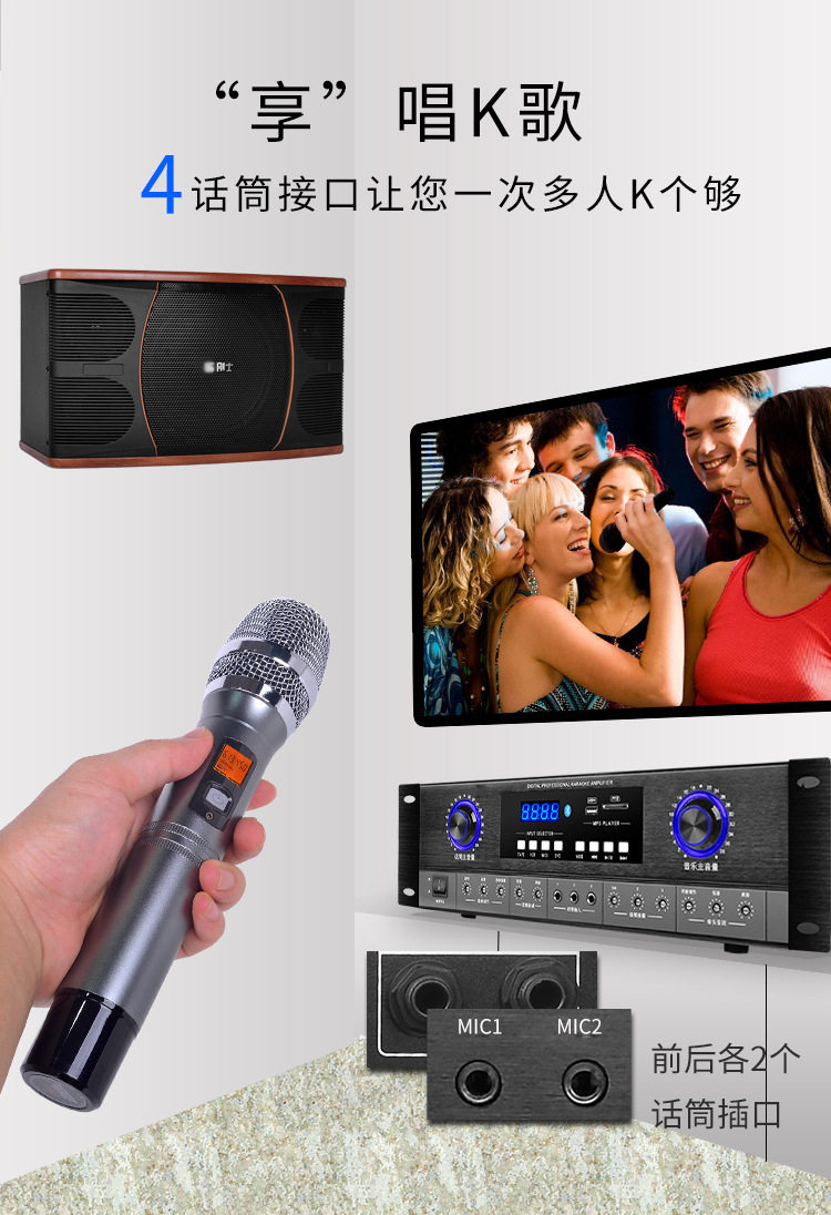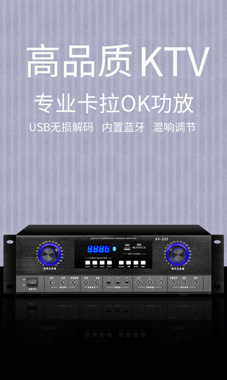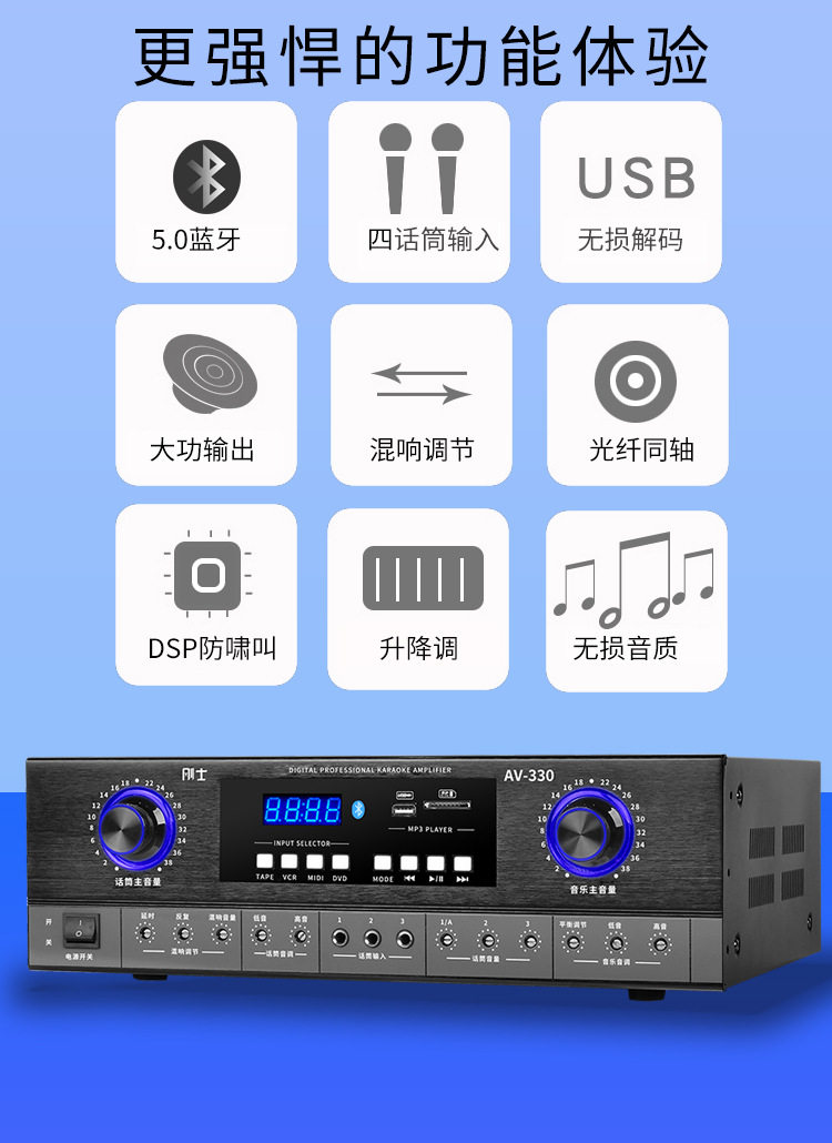 Power Amplifier Home KTV Audio Bluetooth Home High Power HIFI Singing Professional Heavy Bass Lifting Key Variable Tone