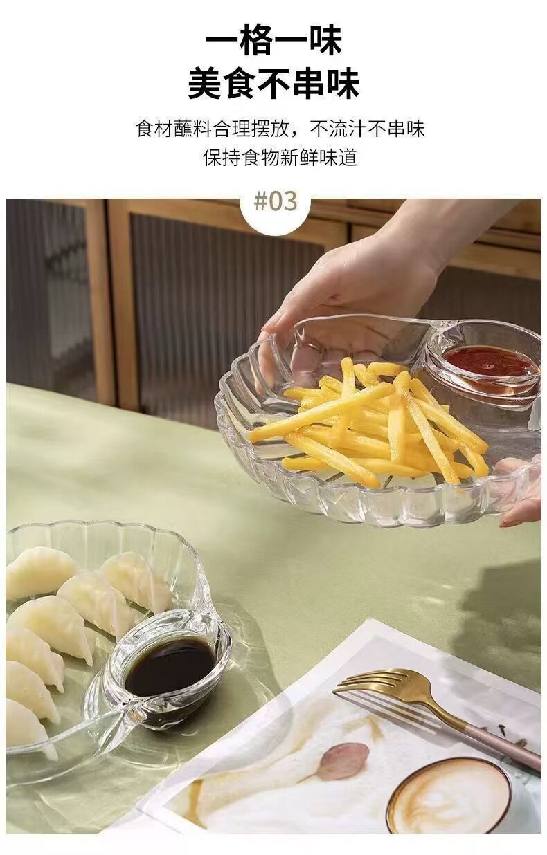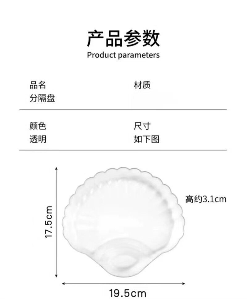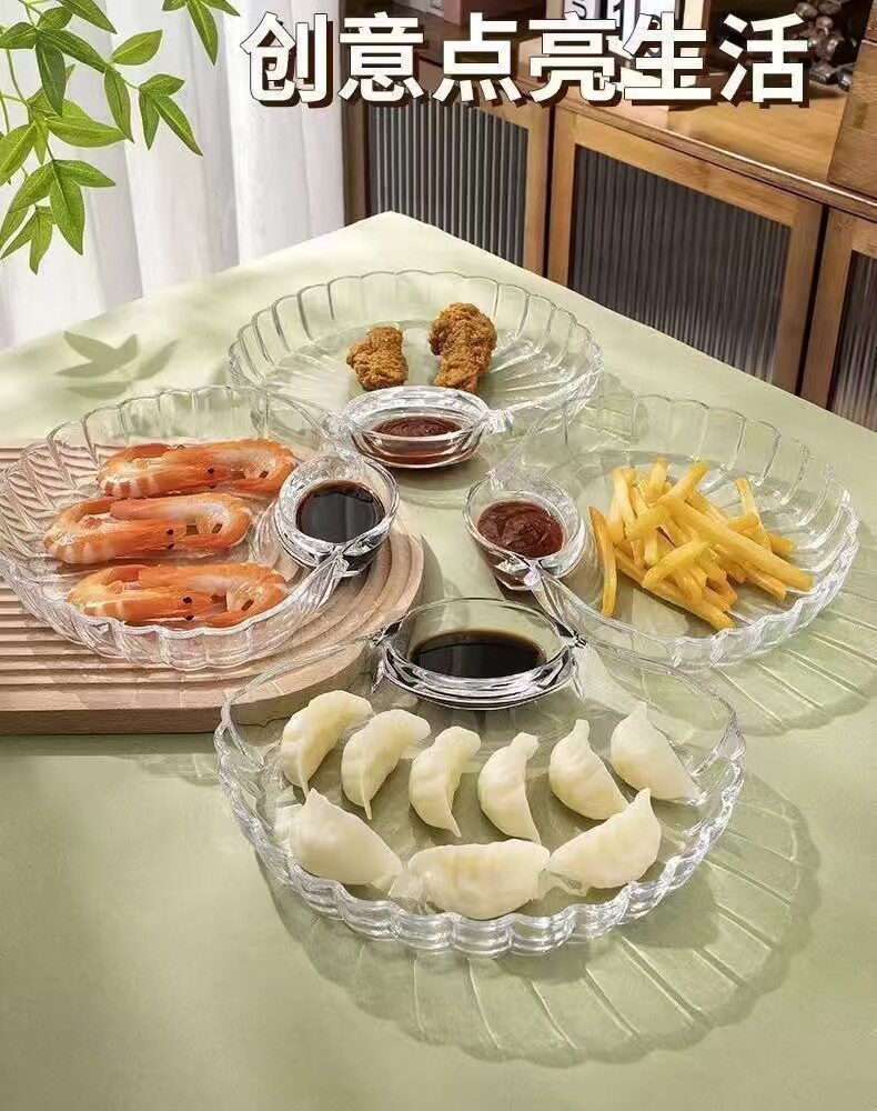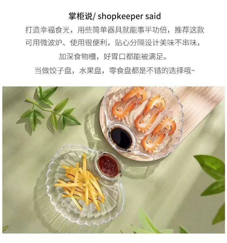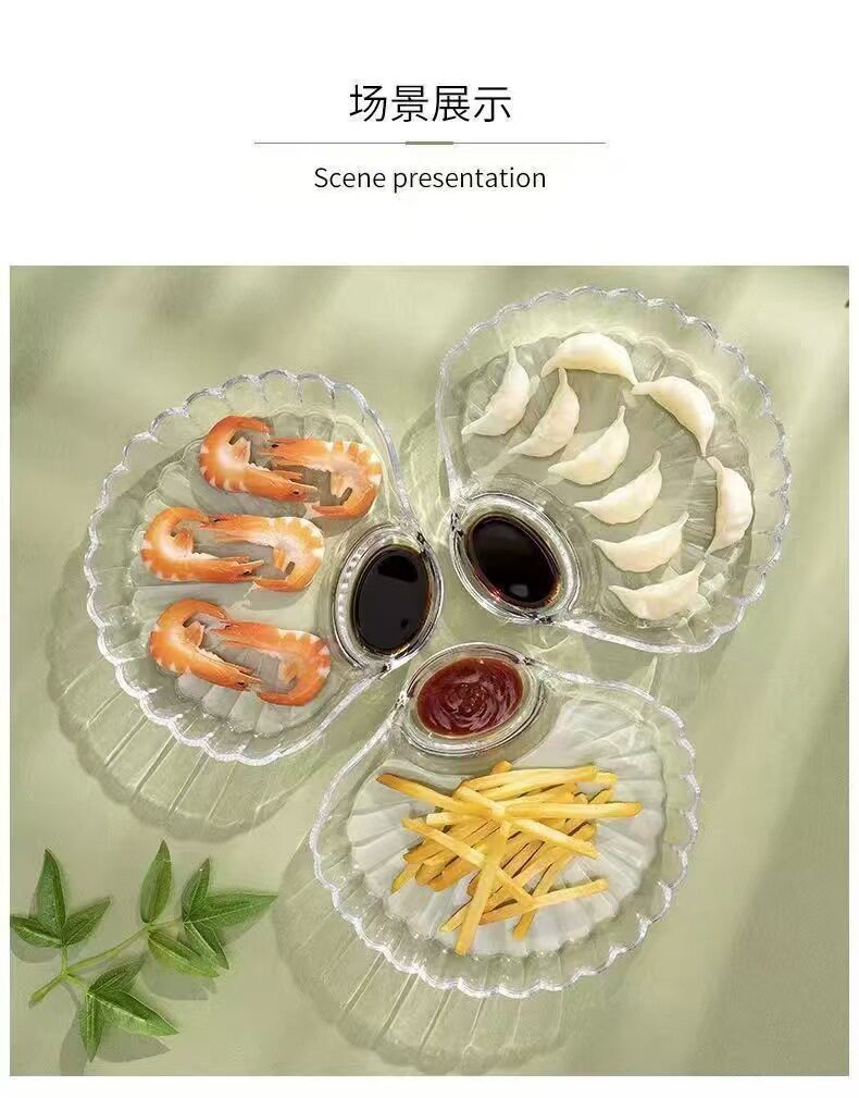 Shell Dumpling Plate Dumpling Plate Vinegar Dish Dip Dip Separated Dish Household Transparent Reduced-Fat Plate Creative Fruit Plate