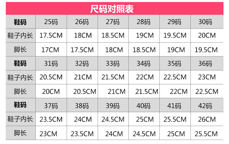 | Size | 24,25,26,27,28,29,30,31,32,33,34,35,36,37,38,39,40,41,42 |