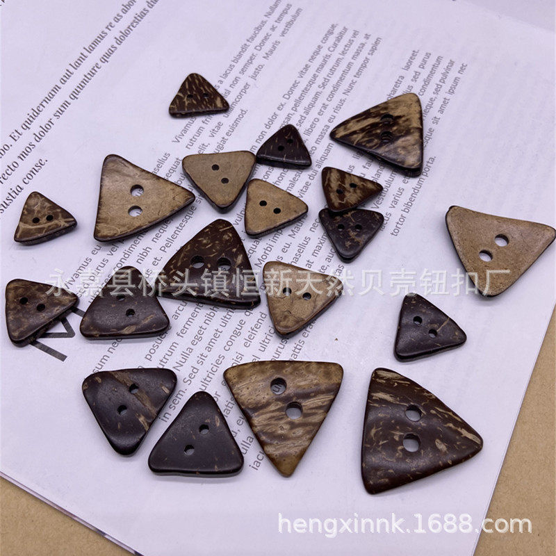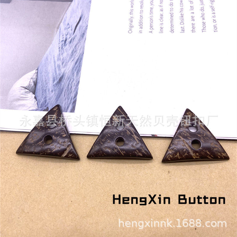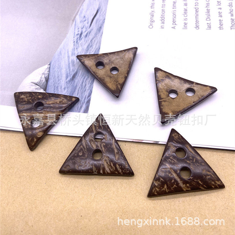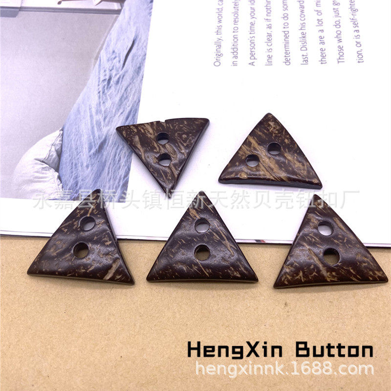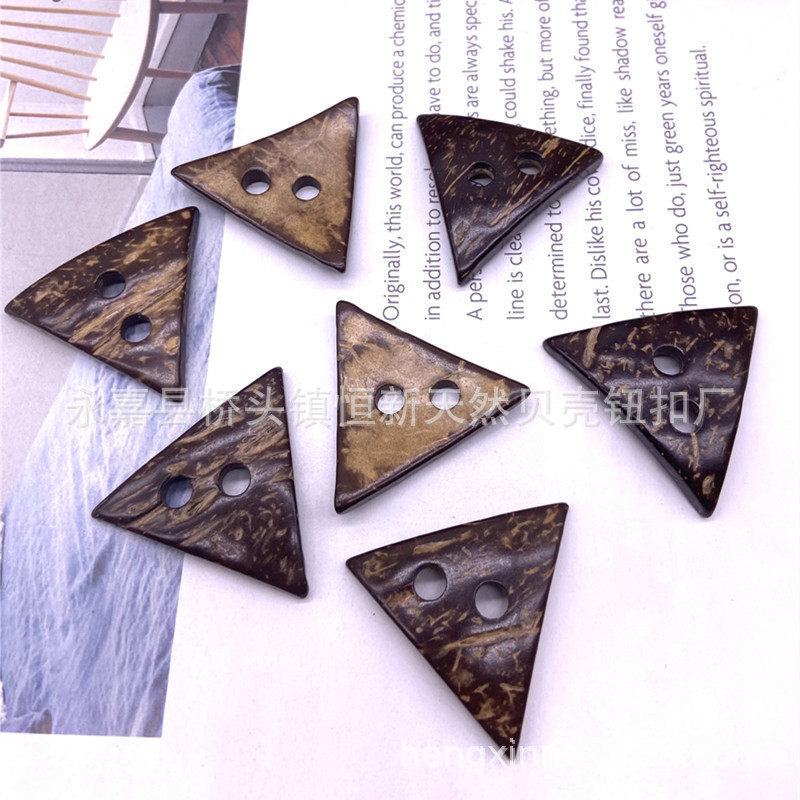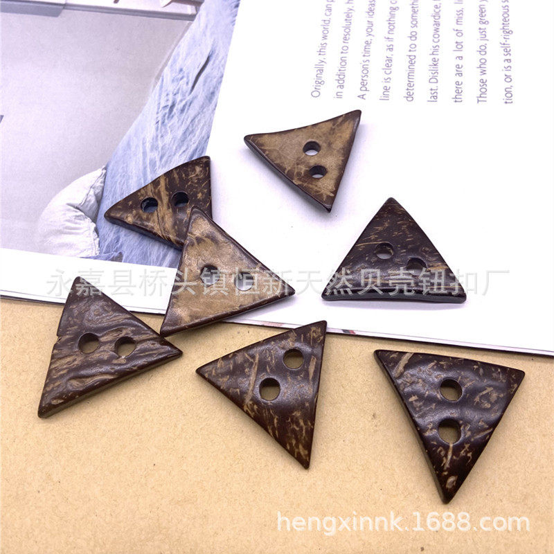 in stock Supply Natural Retro Two-hole Coconut Shell Triangle Shaped Button Wooden Luggage Home Textile Decorative Coconut Buckle