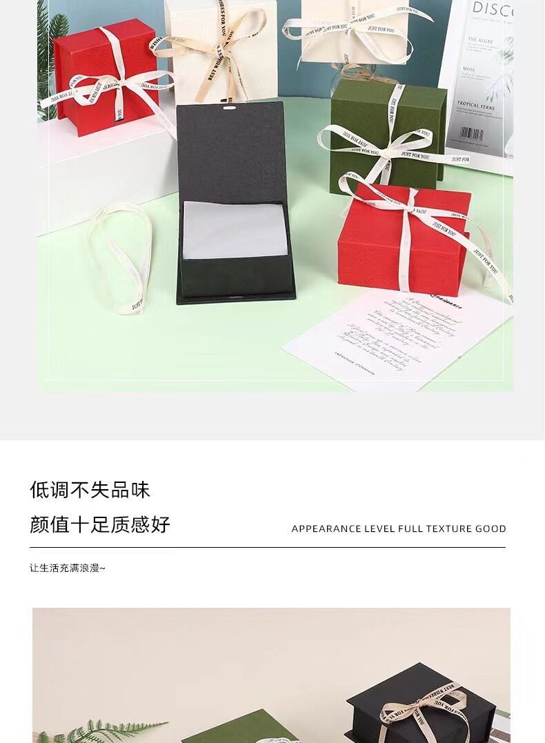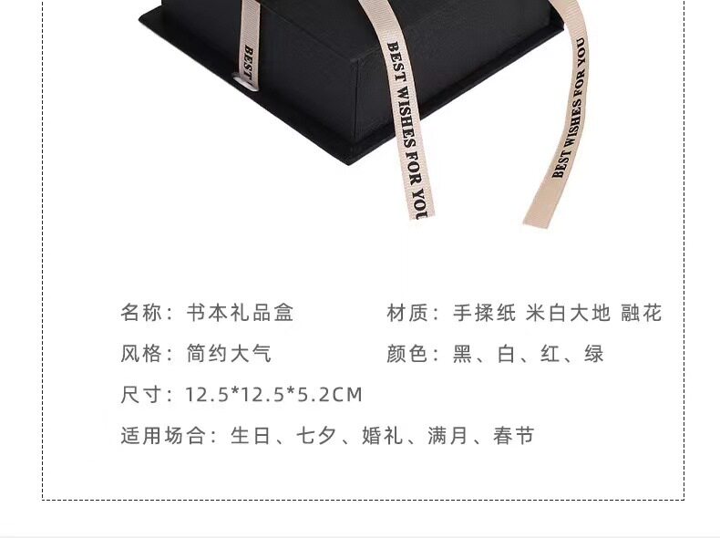 | Specification model | Hand-kneaded beige book-shaped box (sulfuric acid paper + ribbon + sponge); 10.5*10.5*4.5,Hand-kneaded beige book box (sulfuric acid paper + ribbon + sponge); 13*12.5*4.5,Hand-kneaded beige book-shaped box (empty box); 10.5*10.5*4.5,Hand-kneaded beige book box (empty box); 13*12.5*4.5,Hand-kneaded red book-shaped box (sulfuric acid paper + sponge + ribbon); 10.5*10.5*4.5,Hand-kneaded red book-shaped box (sulfuric acid paper + sponge + ribbon); 13*12.5*4.5,Hand-kneaded red book box (empty box); 10.5*10.5*4.5,Hand-kneaded red book box (empty box); 13*12.5*4.5,Hand-kneaded black book-shaped box (sulfuric acid paper + sponge + ribbon); 10.5*10.5*4.5,Hand-kneaded black book box (sulfuric acid paper + sponge + ribbon); 13*12.5*4.5,Hand-kneaded black book-shaped box (empty box); 10.5*10.5*4.5,Hand-kneaded black book-shaped box (empty box); 13*12.5*4.5,Grassy beige book-shaped box (sulfuric acid paper + sponge + ribbon); 10.5*10.5*4.5,Grassy beige book-shaped box (sulfuric acid paper + sponge + ribbon); 13*12.5*4.5,Grassy beige book-shaped box (empty box); 10.5*10.5*4.5,Grassy beige book-shaped box (empty box); 13*12.5*4.5,Meigong paper book box (sulfuric acid paper + sponge + ribbon); 10.5*10.5*4.5,Meigong paper book box (sulfuric acid paper + sponge + ribbon); 13*12.5*4.5,Meigong paper book box (empty box); 10.5*10.5*4.5,Meigong paper book box (empty box); 13*12.5*4.5,Suitable for spot delivery (with logo); 10.5*10.5*5.5 |