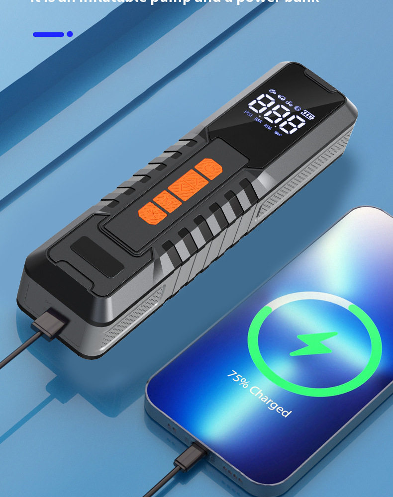 Cross-Border 19-Cylinder Electric Car Air Pump, Intelligent Dual Digital Display Tire Inflator, Portable Lighting Air Pump