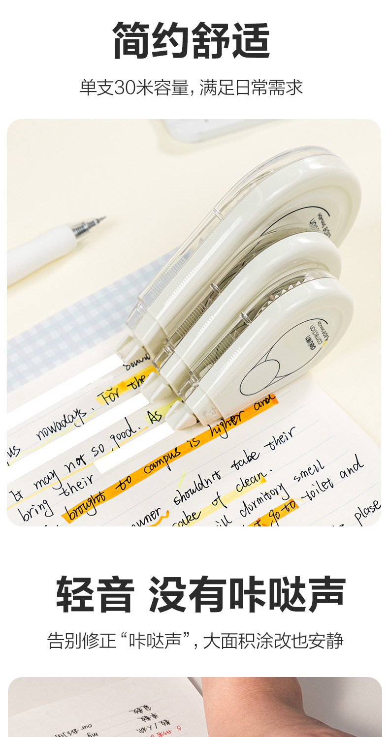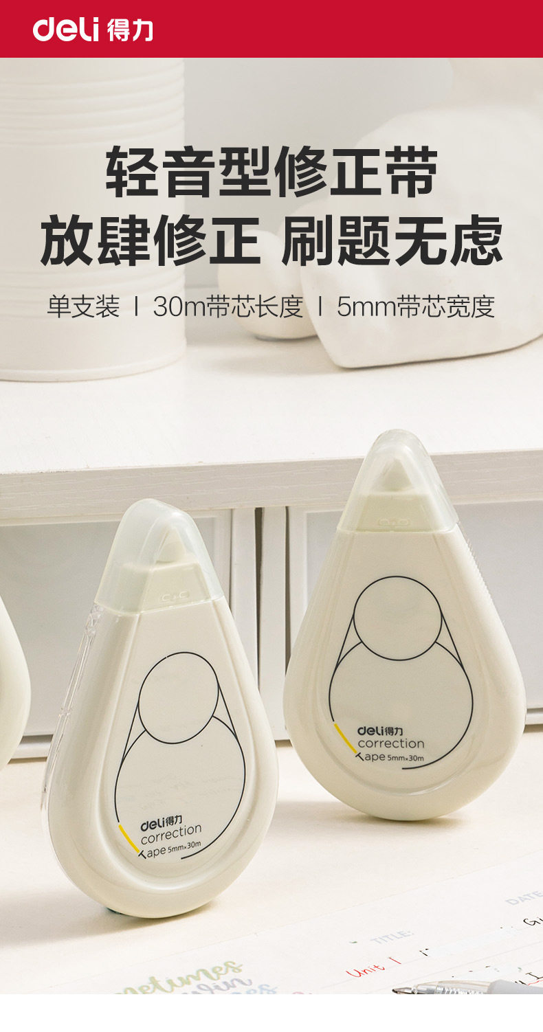 Deli Stationery 71506F White Series Correction Tape 5mm*30 Large Capacity Light Tone Correction Tape