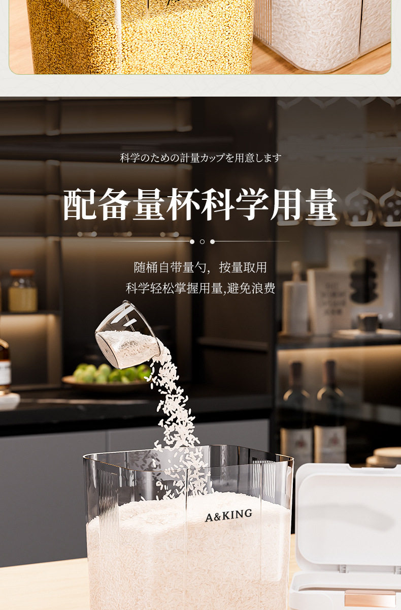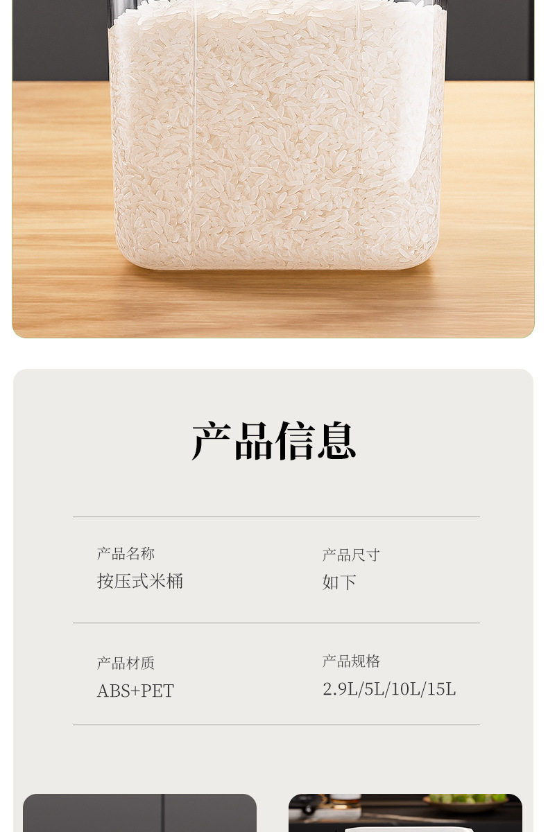 | Color | 2.9l press rice bucket + measuring cup,5l press rice bucket + measuring cup,10l press rice bucket + measuring cup,15l press rice bucket + measuring cup,2.9l+10l press rice bucket+two measuring cups,5l+15l press rice bucket+two measuring cups |