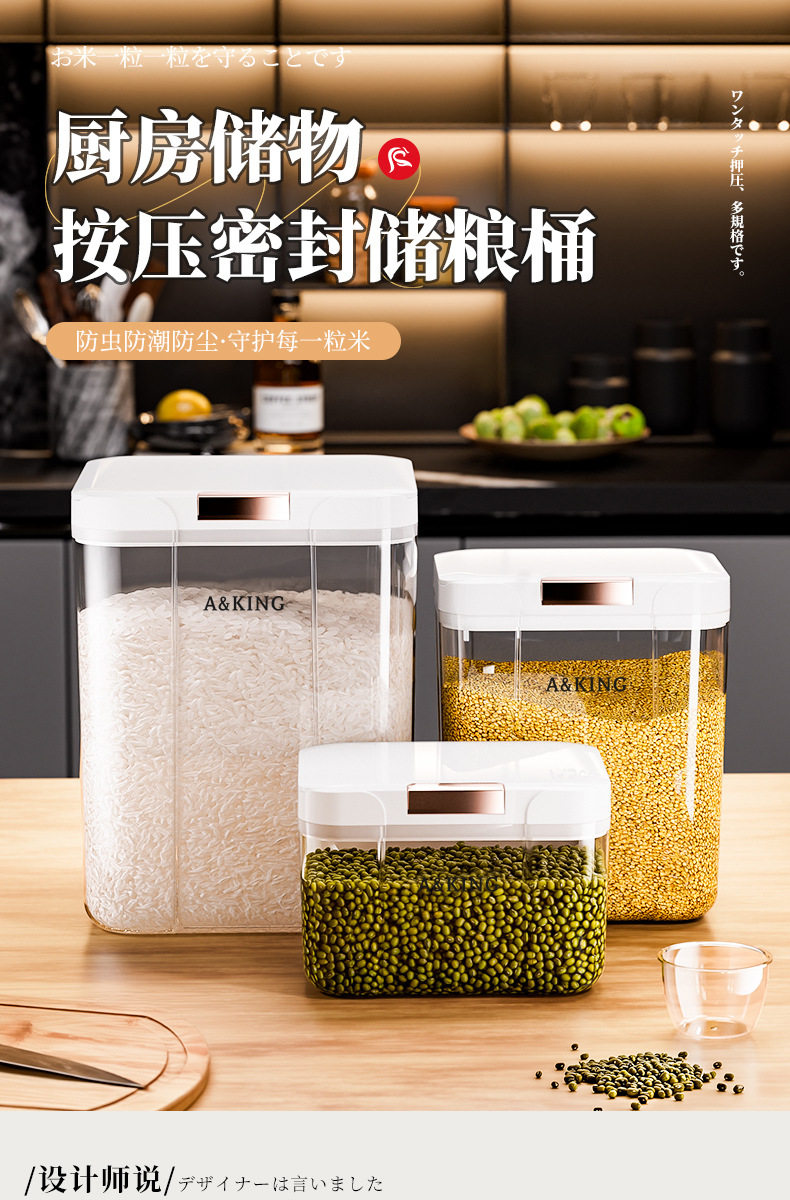 2024 New Household Transparent Food Grade Press Storage Jar Insect-proof Moisture-proof Sealed Storage Bucket for Cereals