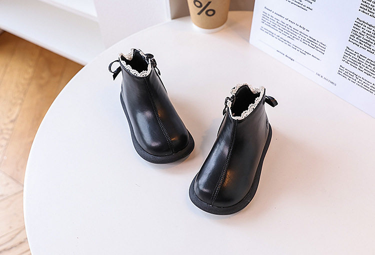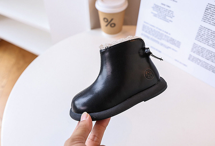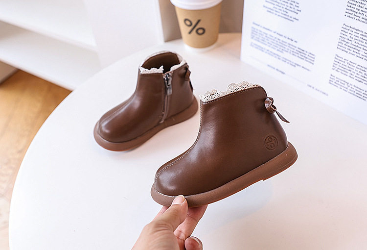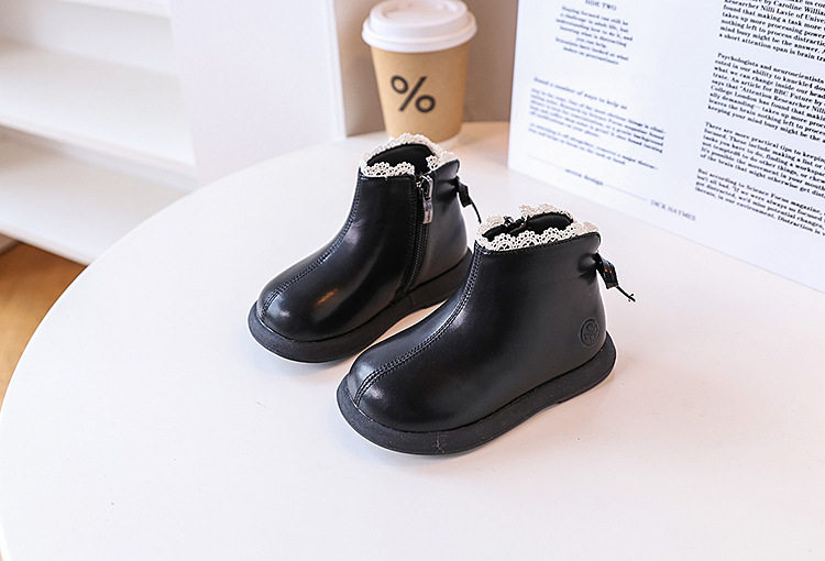 2024 girls' leather boots 2024 autumn and winter new fleece-lined warm cotton boots children's baby short boots children's single boots