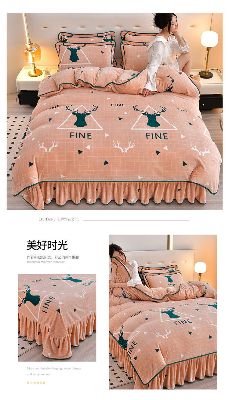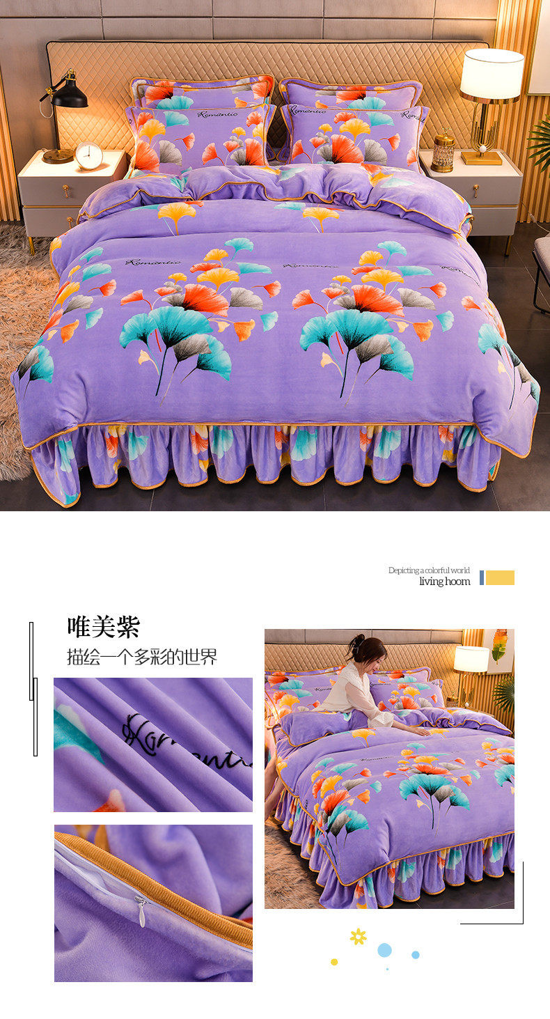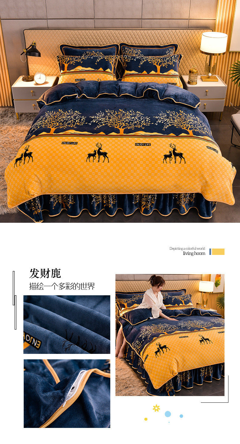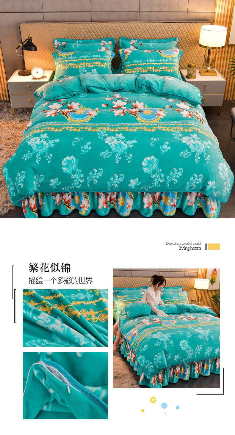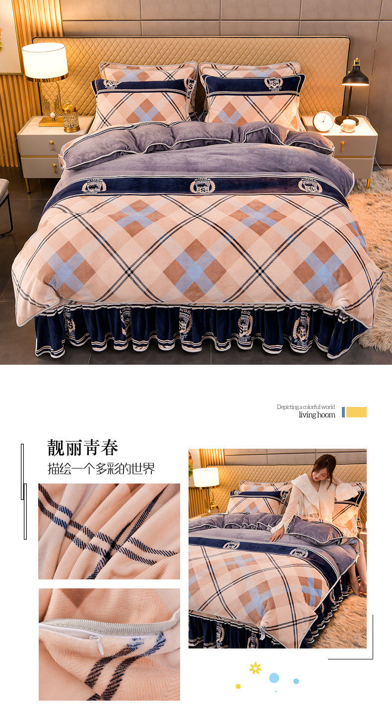 Thickened Milk Velvet Four-Piece Set Single Double-Sided Velvet Bed Skirt Autumn and Winter Household Kit Live Hair