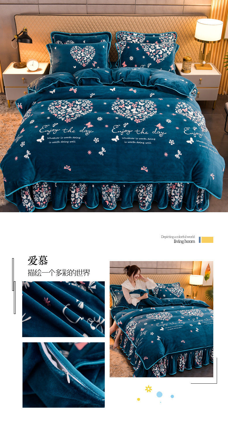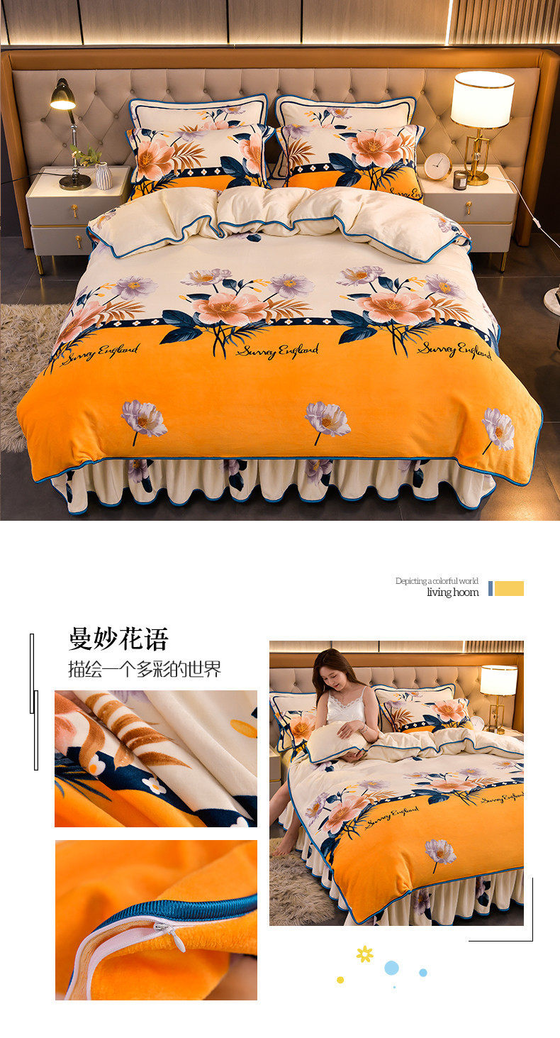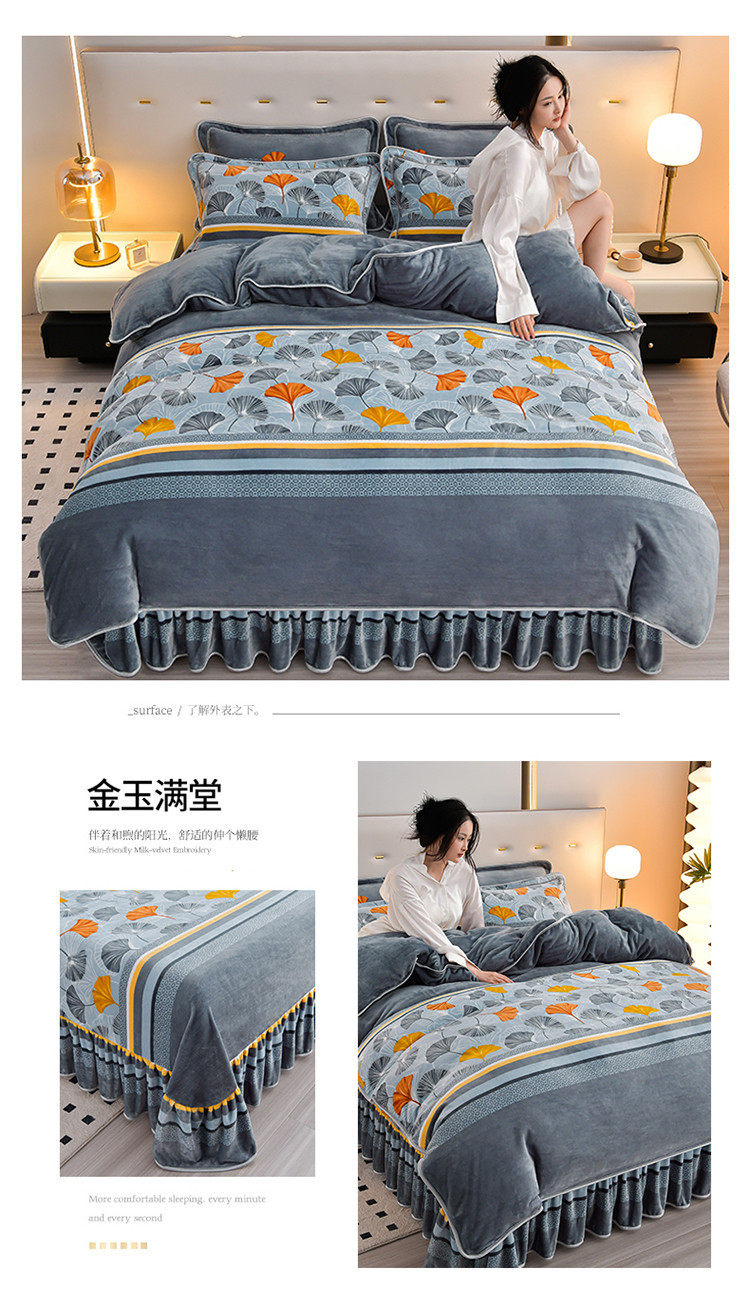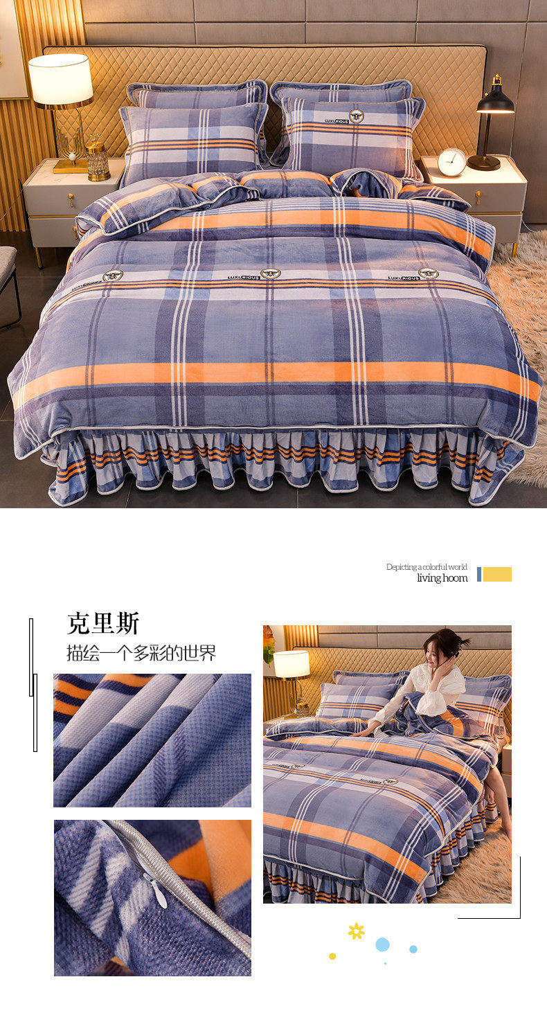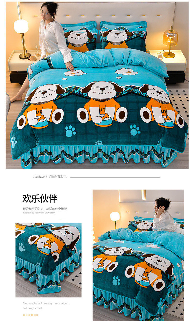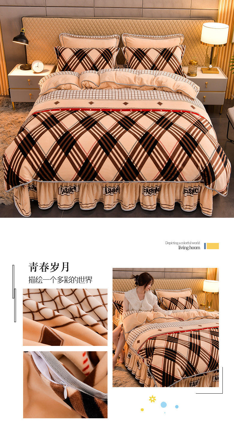 Thickened Milk Velvet Four-Piece Set Single Double-Sided Velvet Bed Skirt Autumn and Winter Household Kit Live Hair