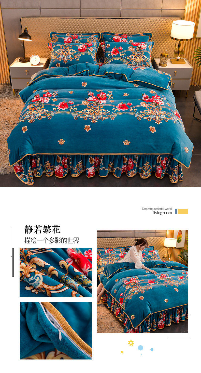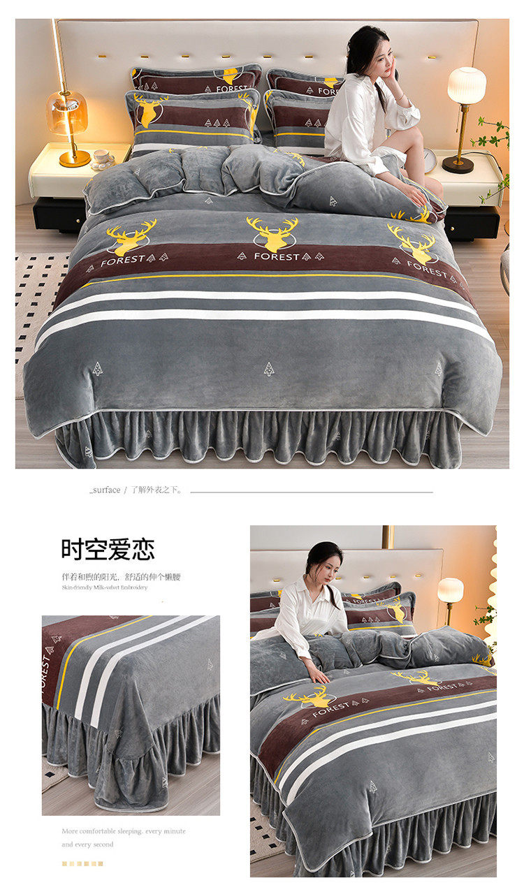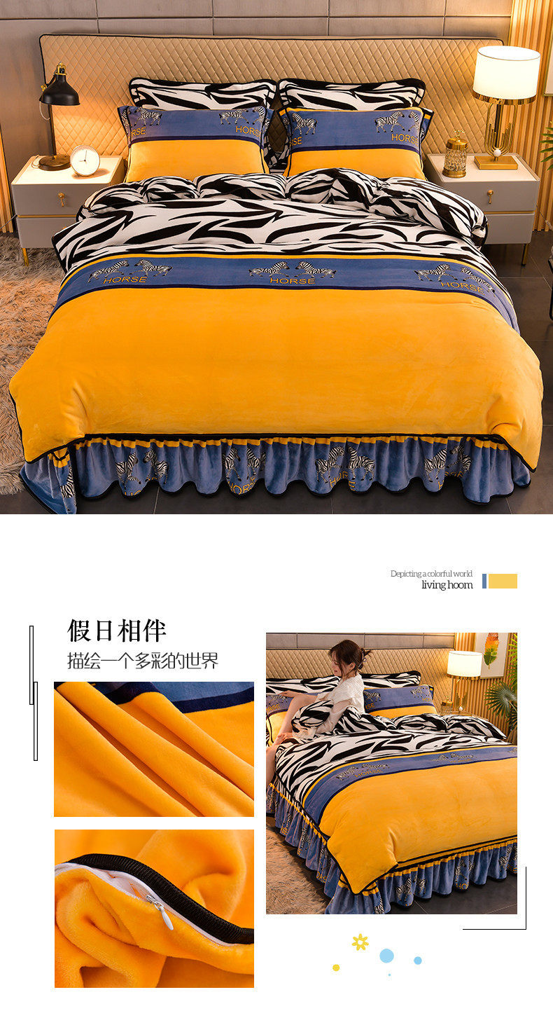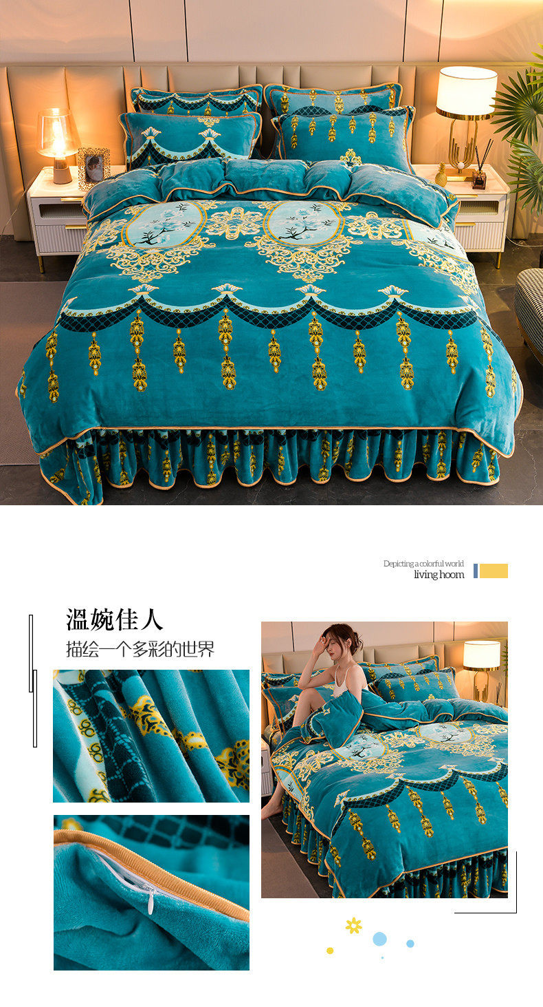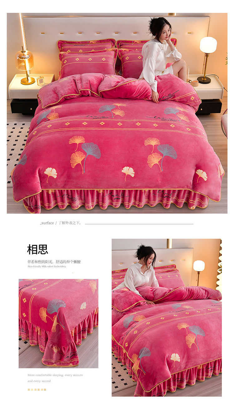 Thickened Milk Velvet Four-Piece Set Single Double-Sided Velvet Bed Skirt Autumn and Winter Household Kit Live Hair