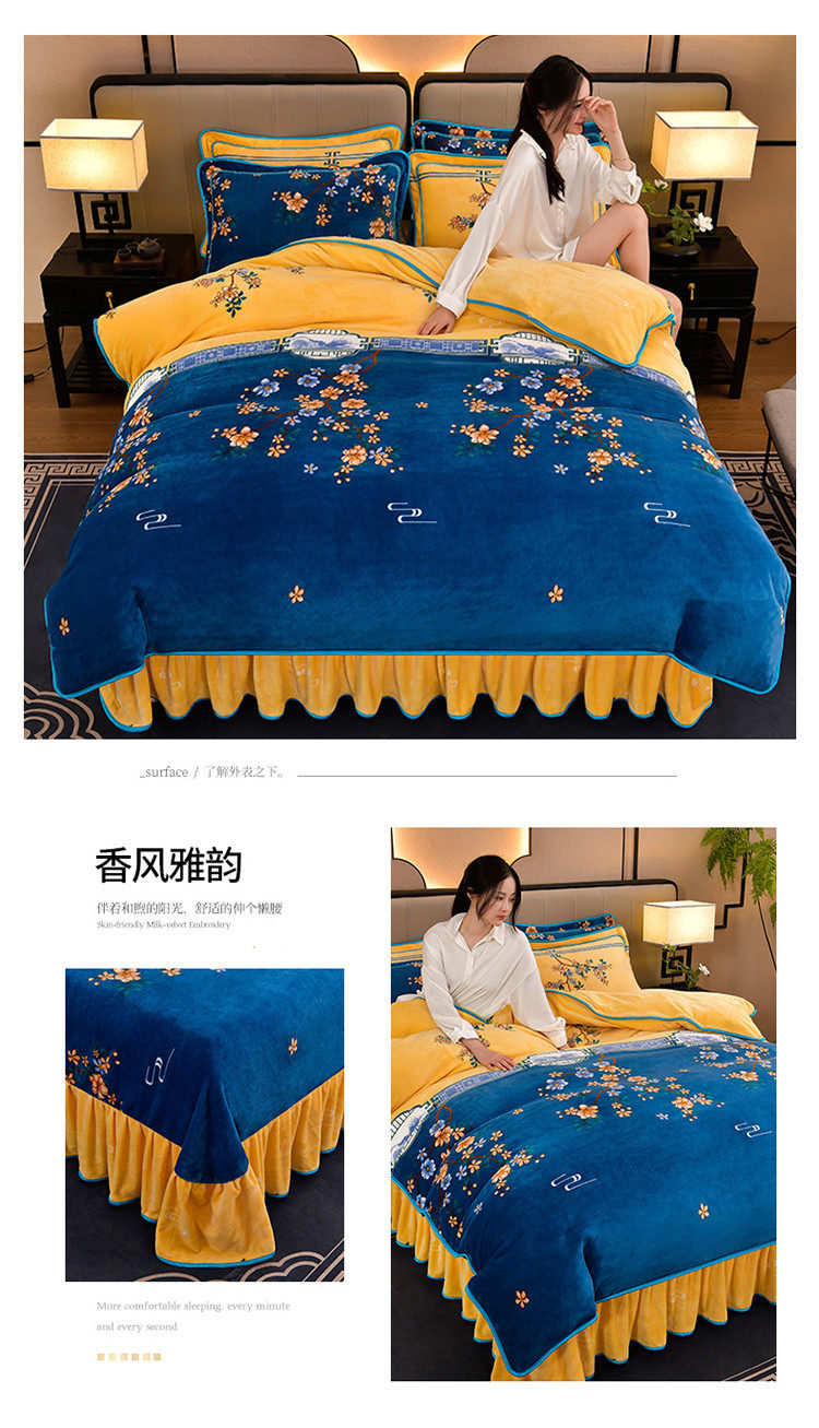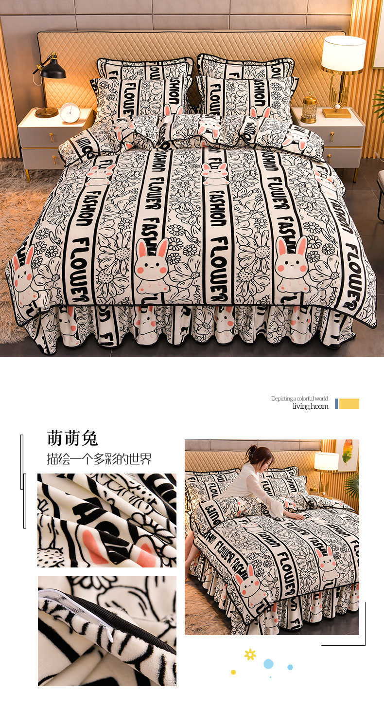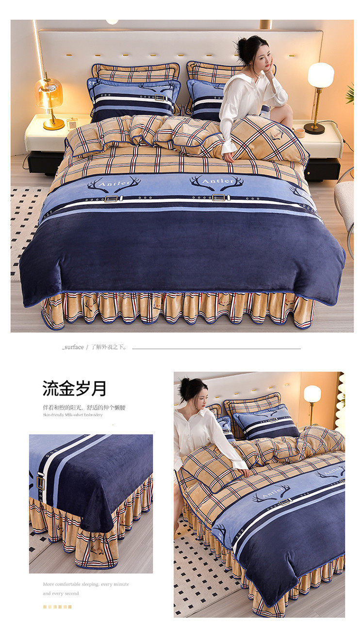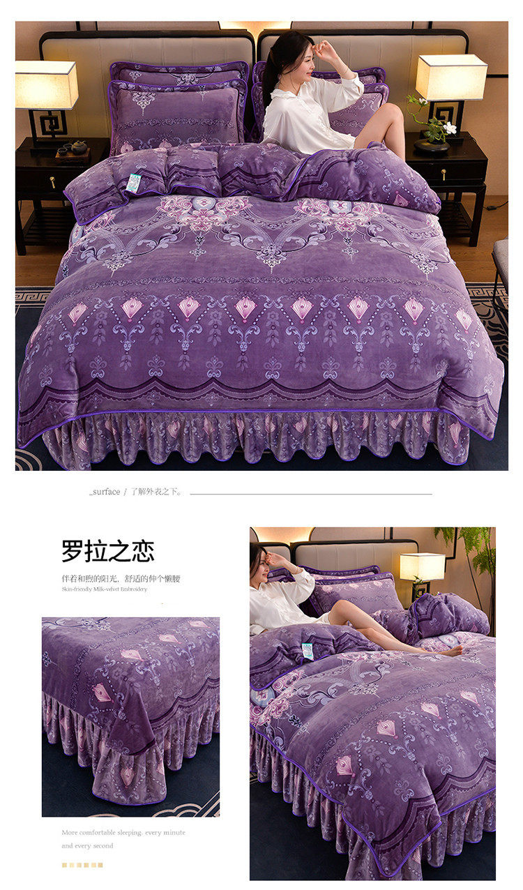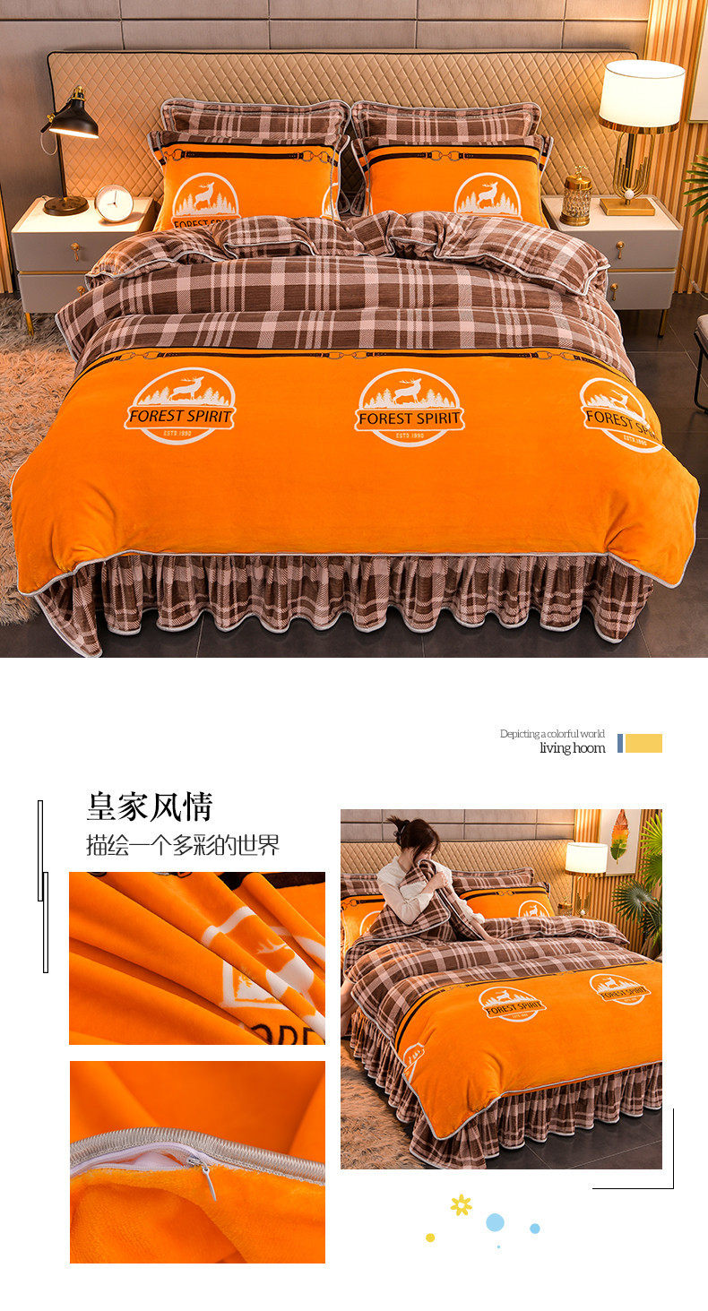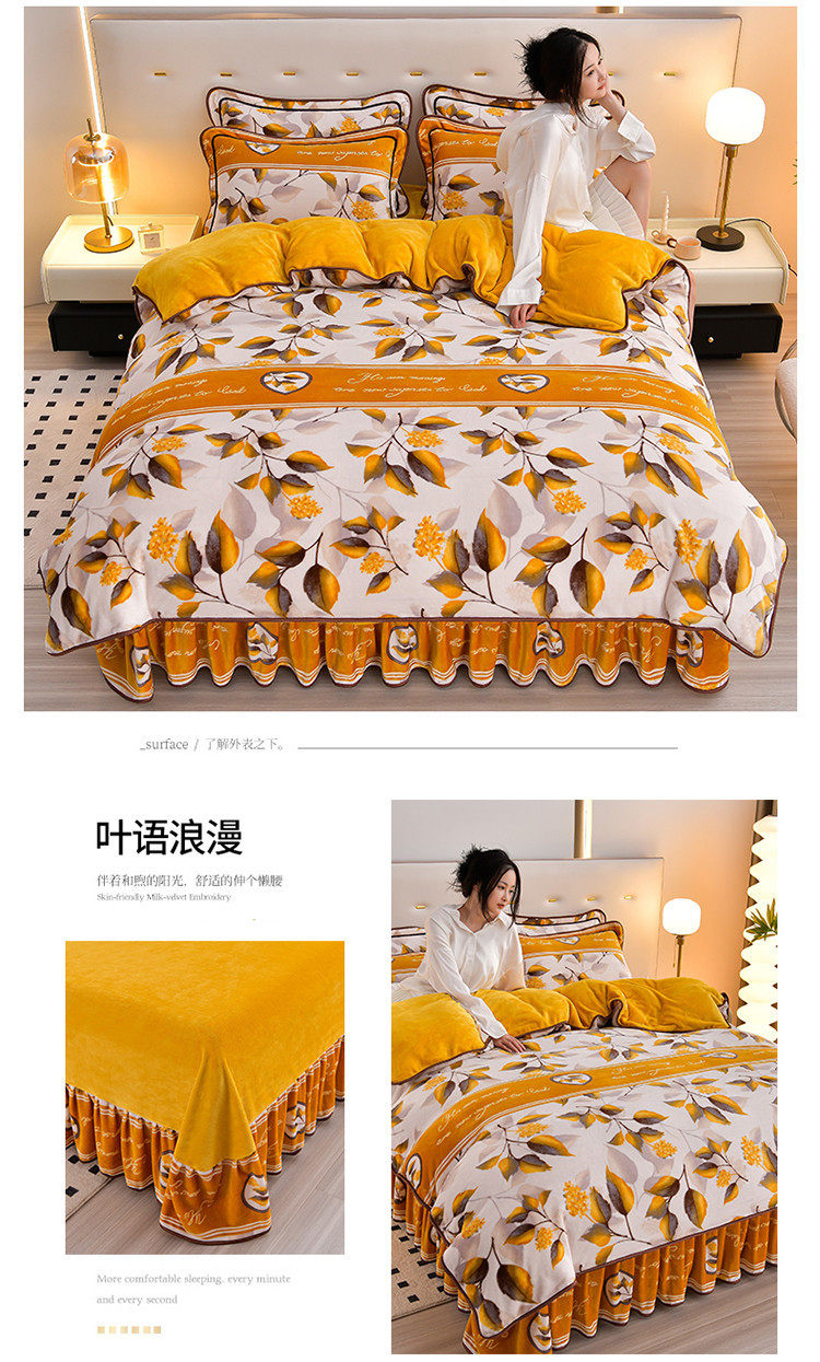 Thickened Milk Velvet Four-Piece Set Single Double-Sided Velvet Bed Skirt Autumn and Winter Household Kit Live Hair