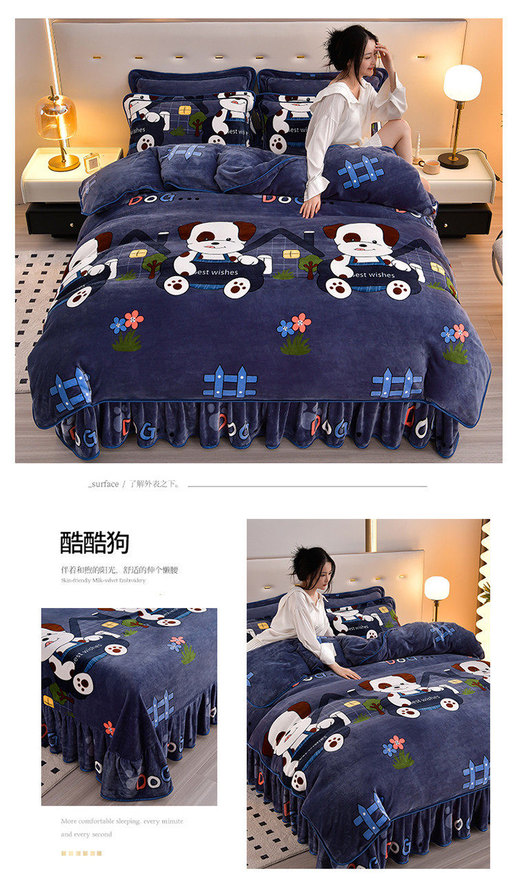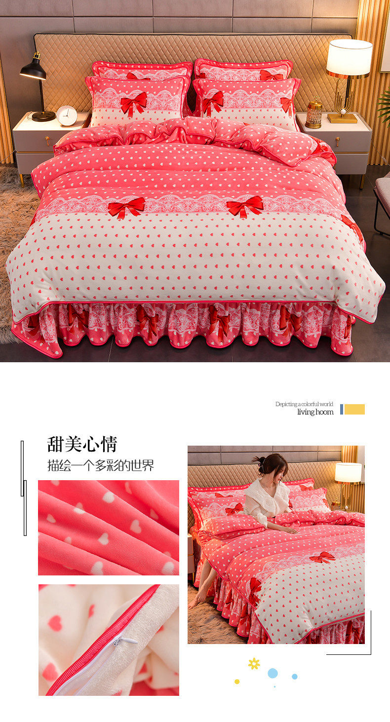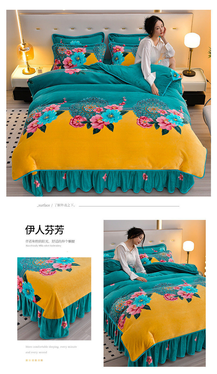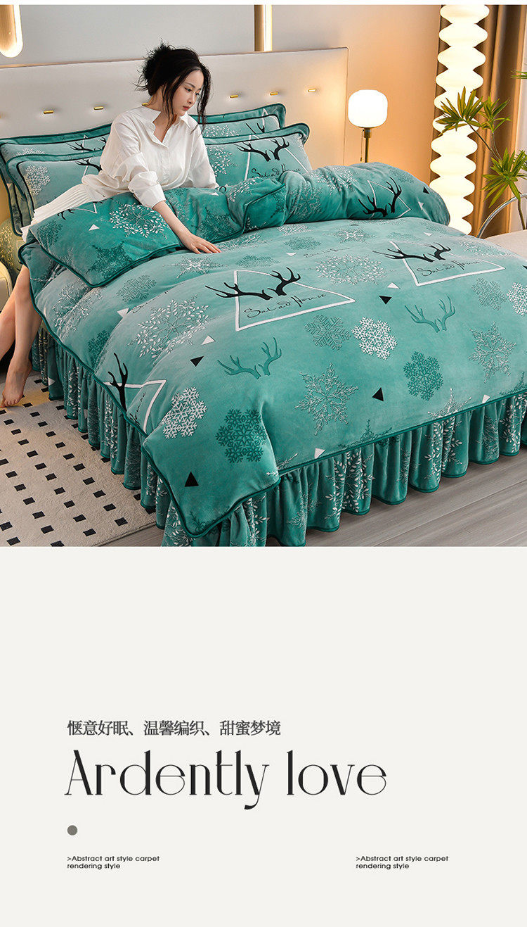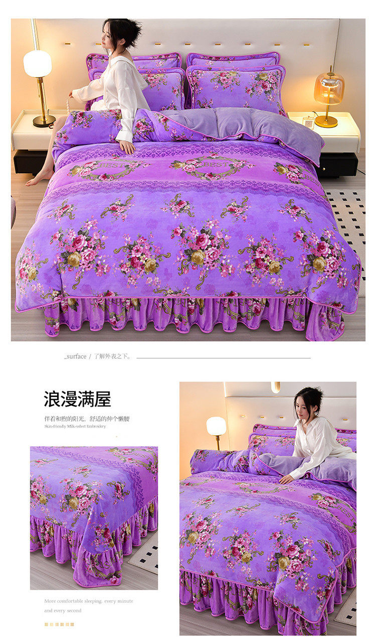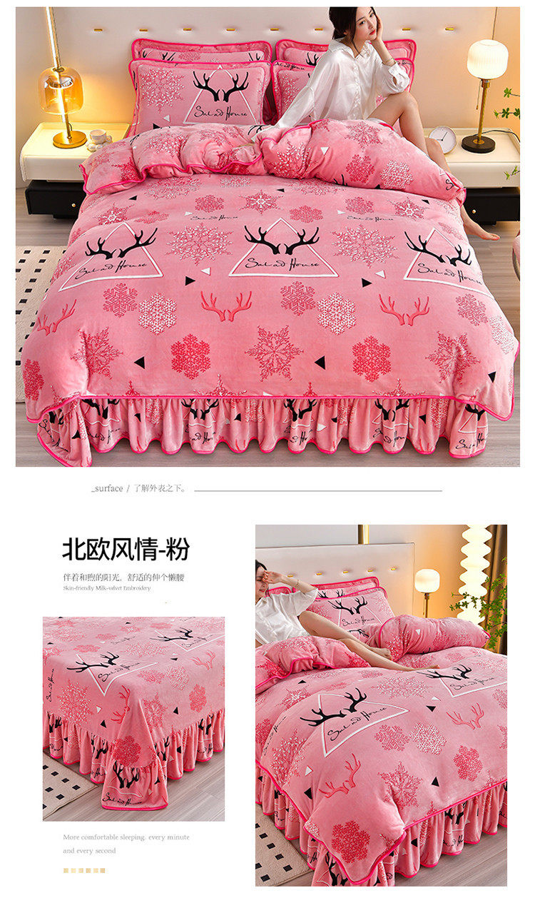 Thickened Milk Velvet Four-Piece Set Single Double-Sided Velvet Bed Skirt Autumn and Winter Household Kit Live Hair