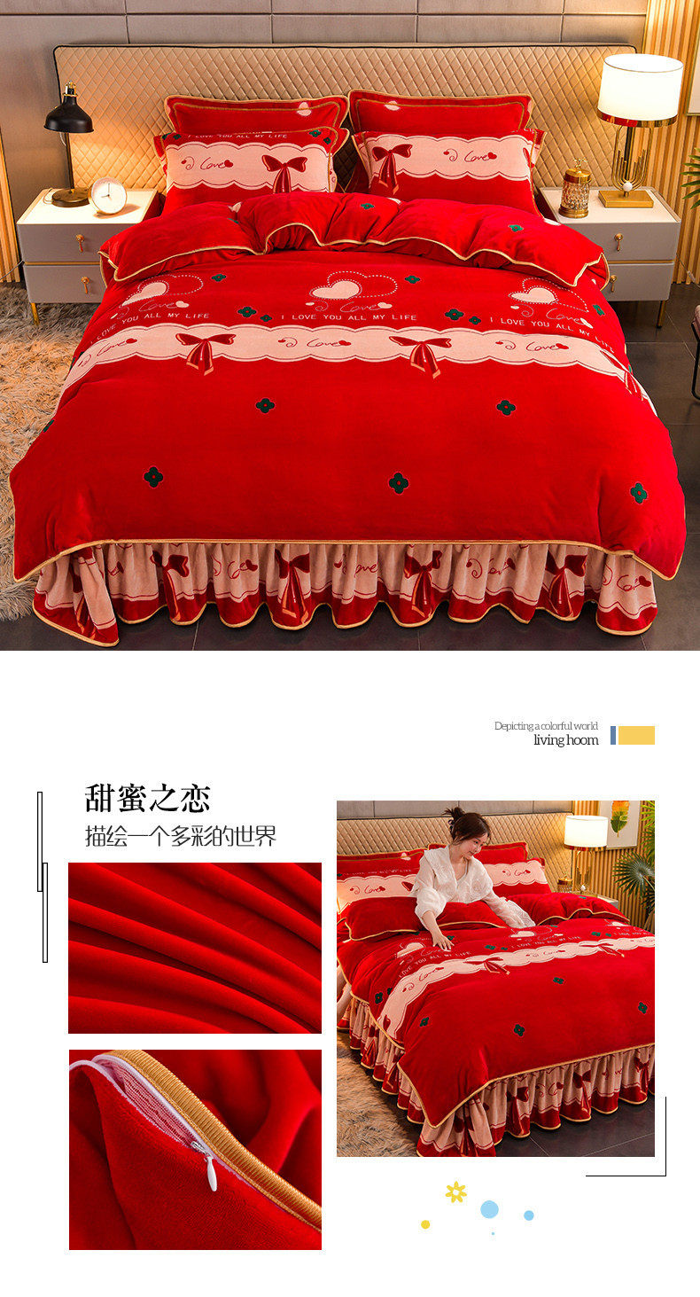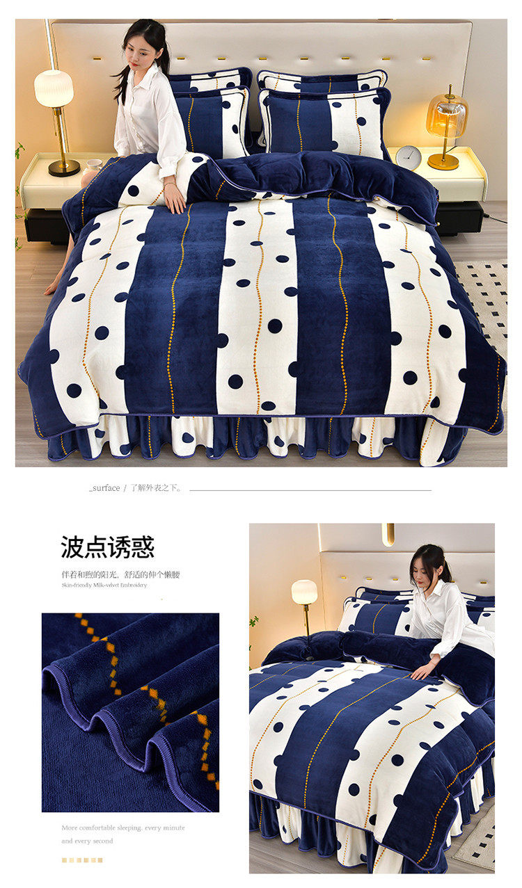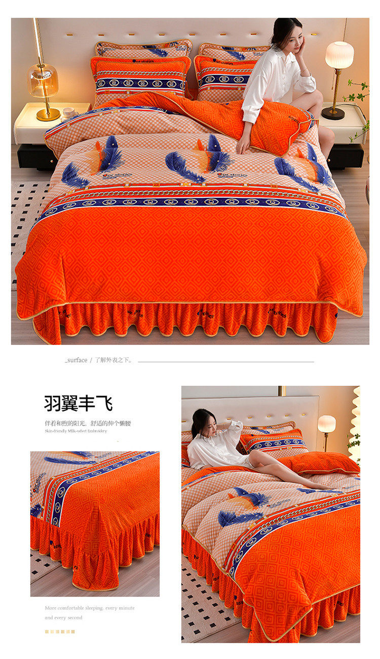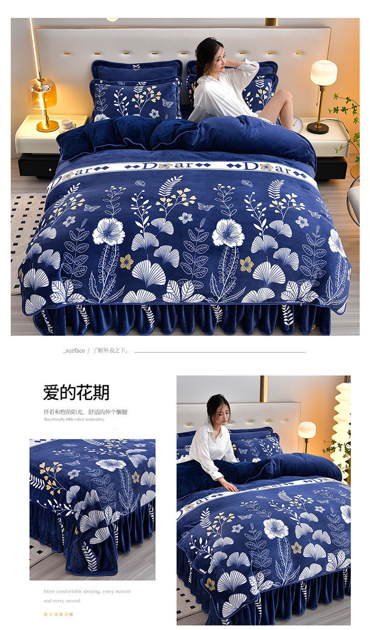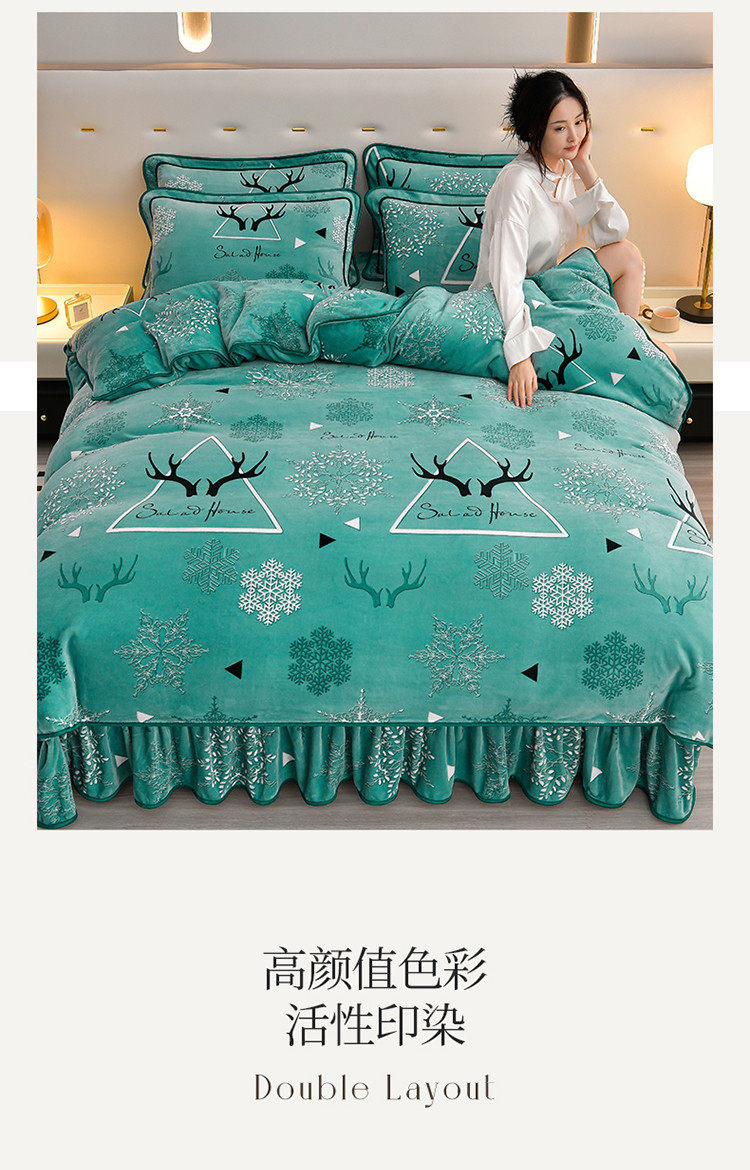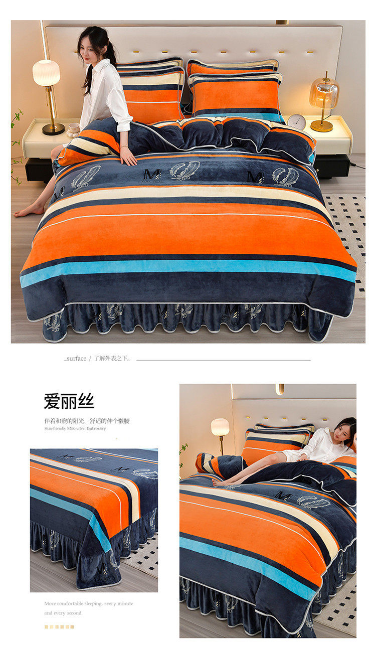 Thickened Milk Velvet Four-Piece Set Single Double-Sided Velvet Bed Skirt Autumn and Winter Household Kit Live Hair