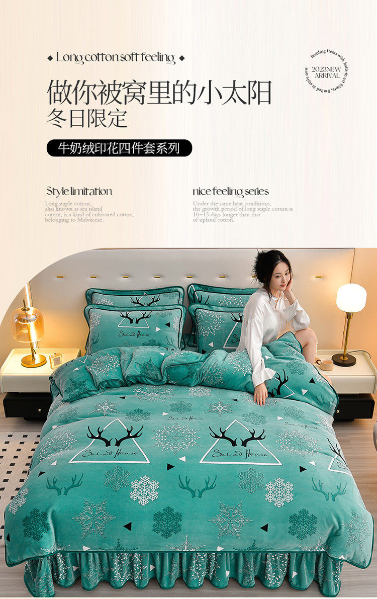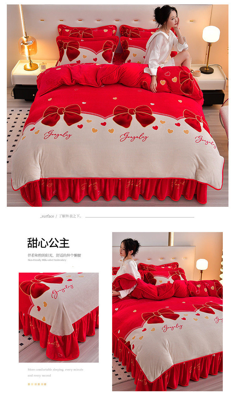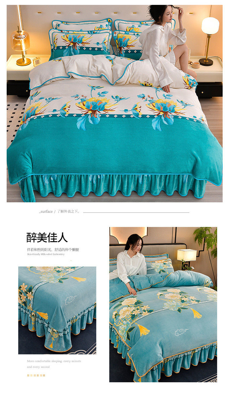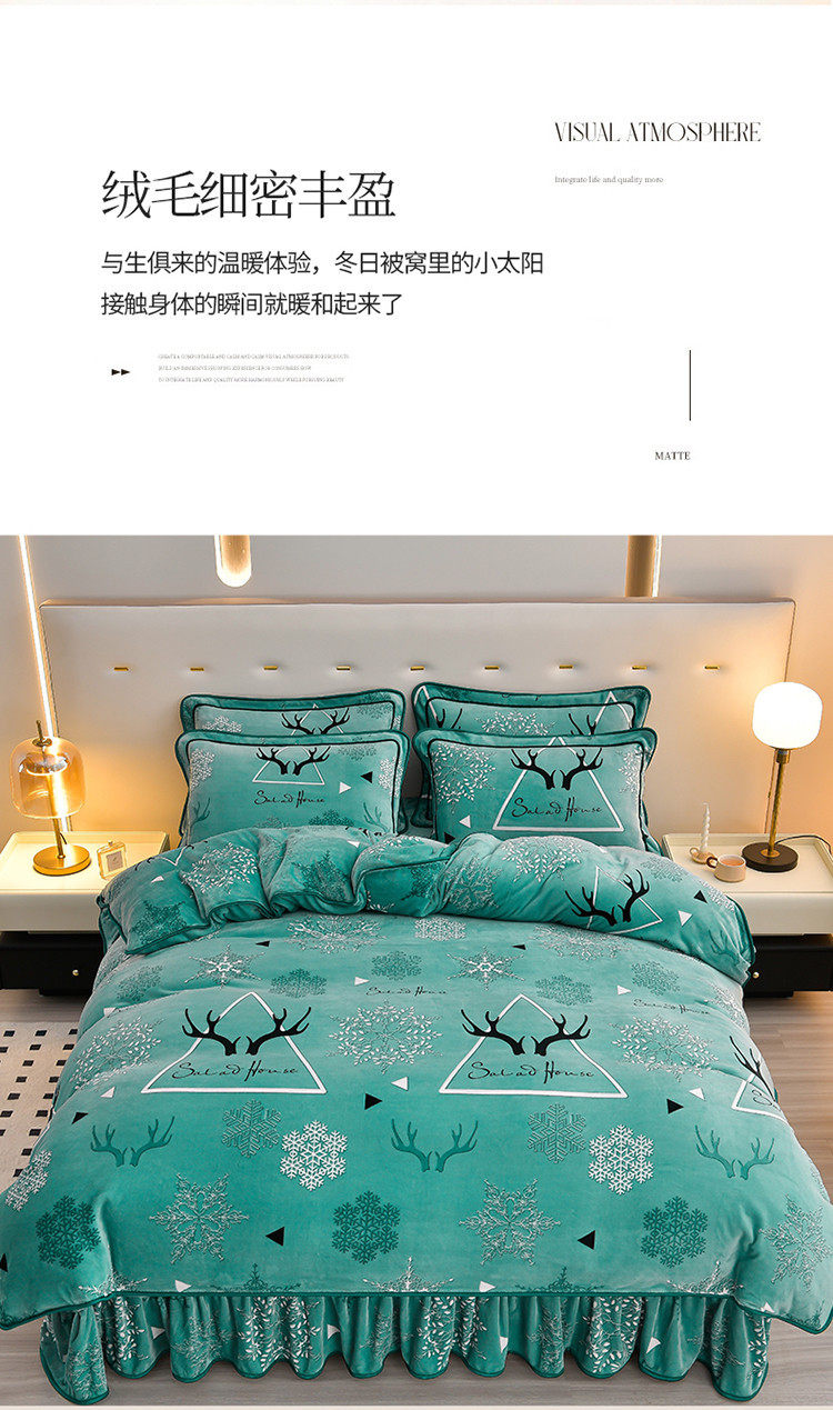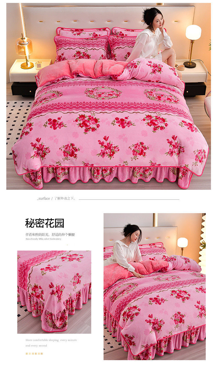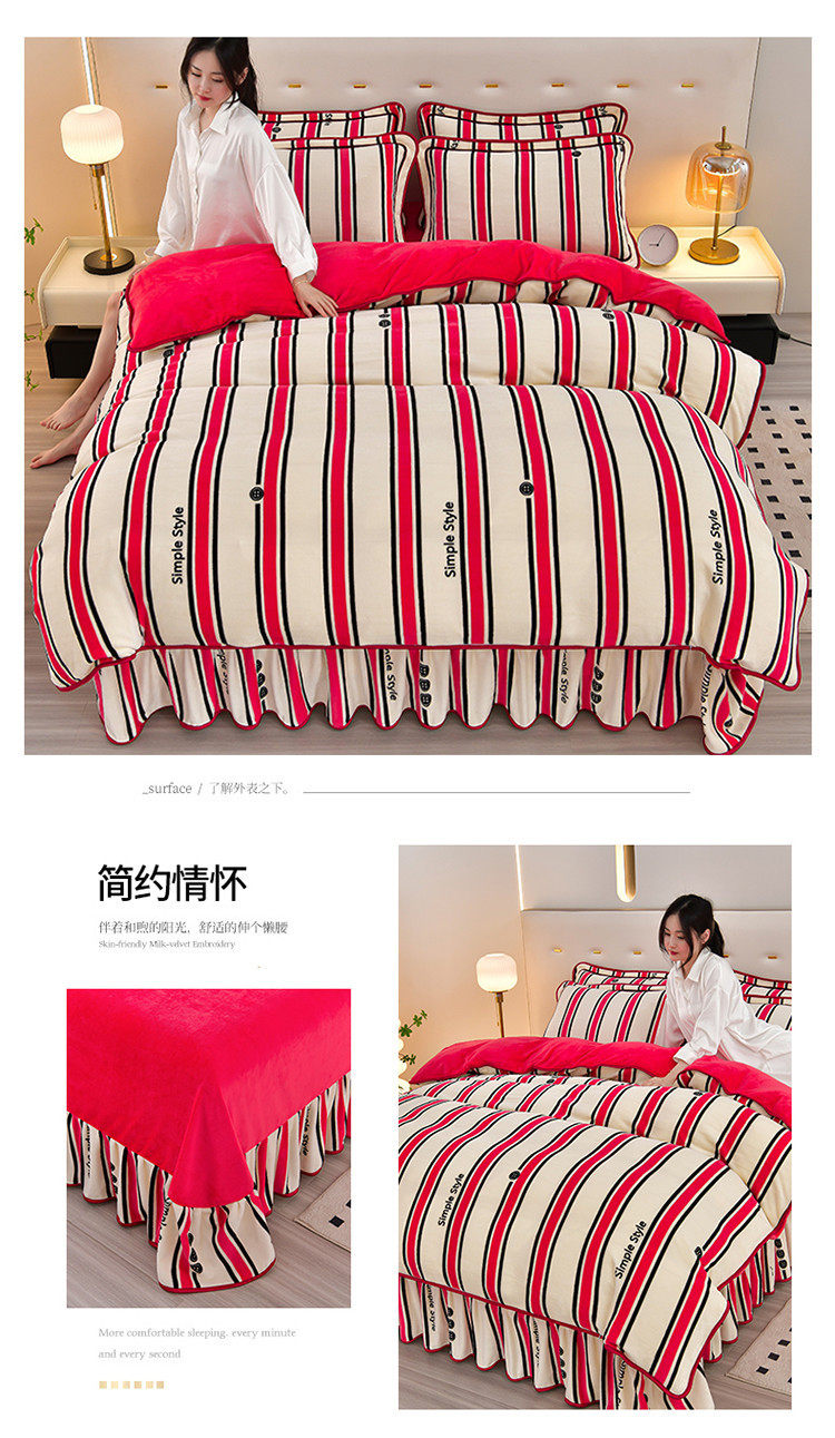 Thickened Milk Velvet Four-Piece Set Single Double-Sided Velvet Bed Skirt Autumn and Winter Household Kit Live Hair