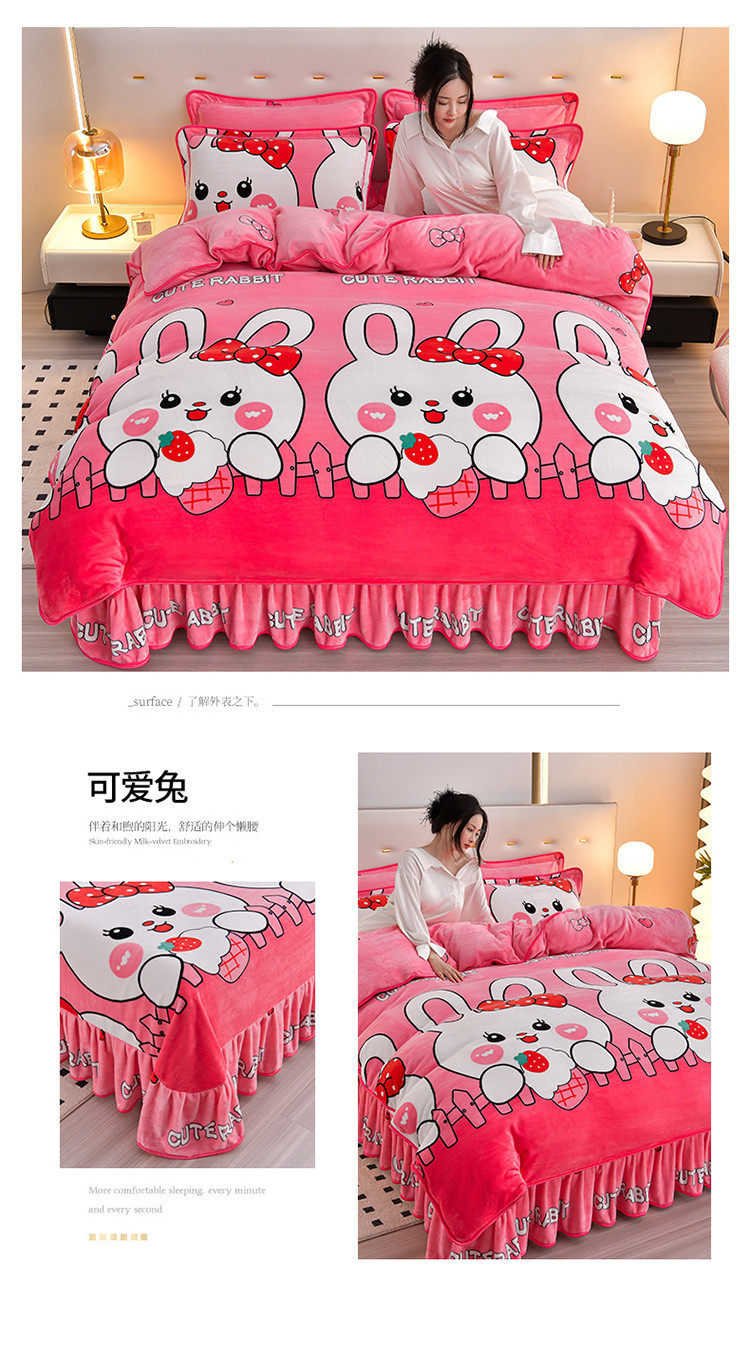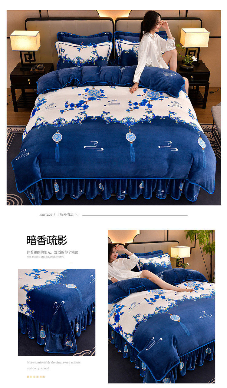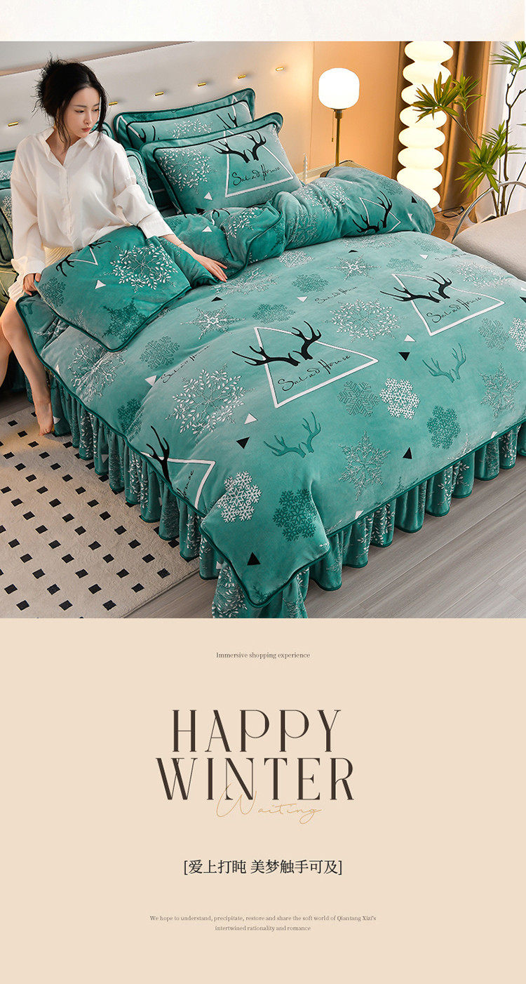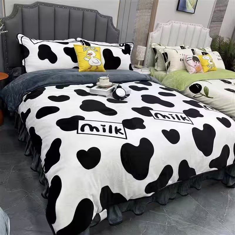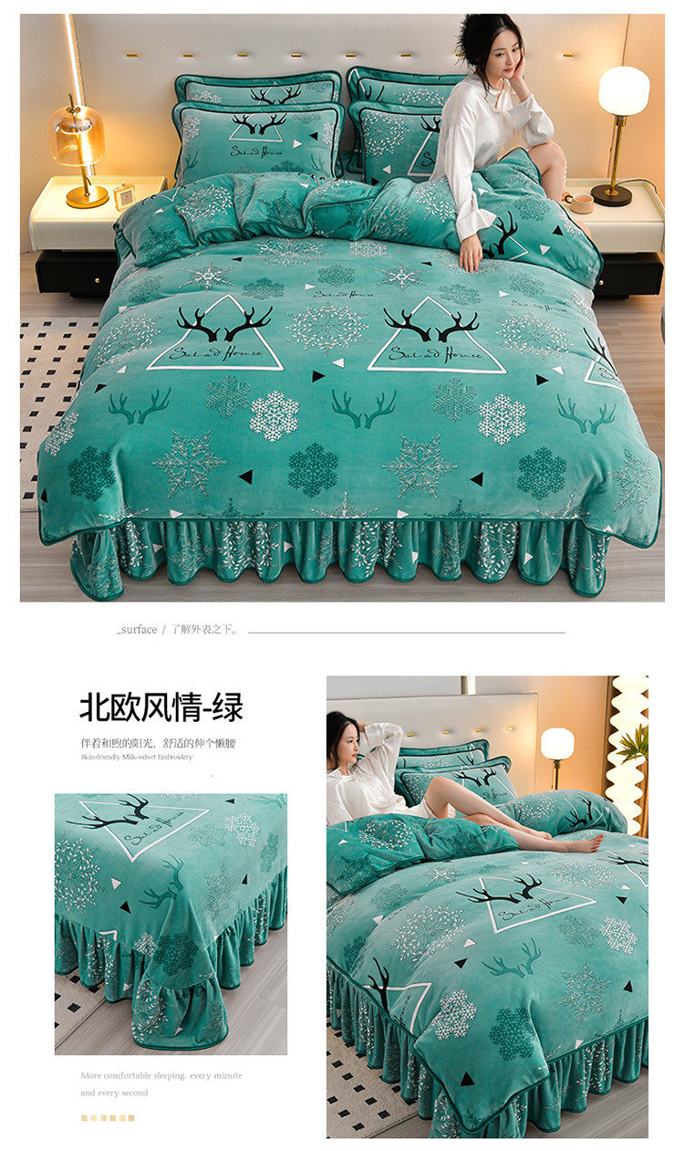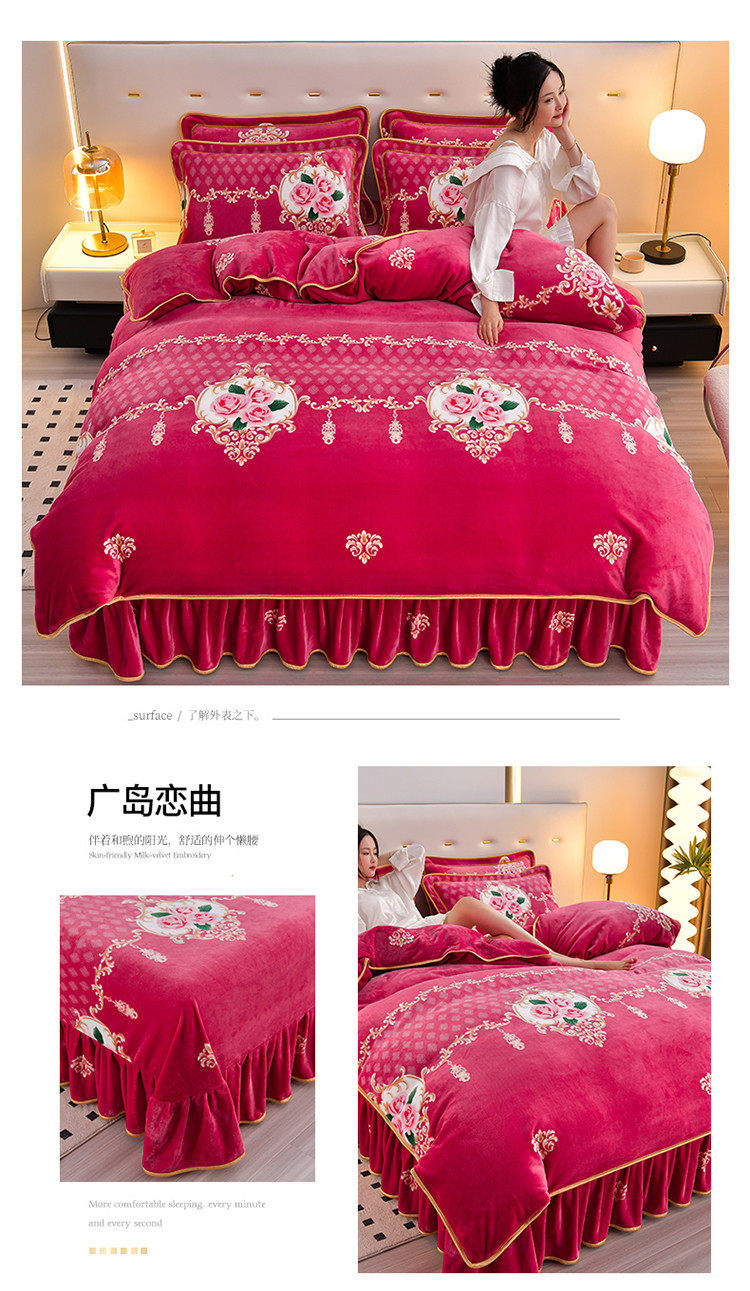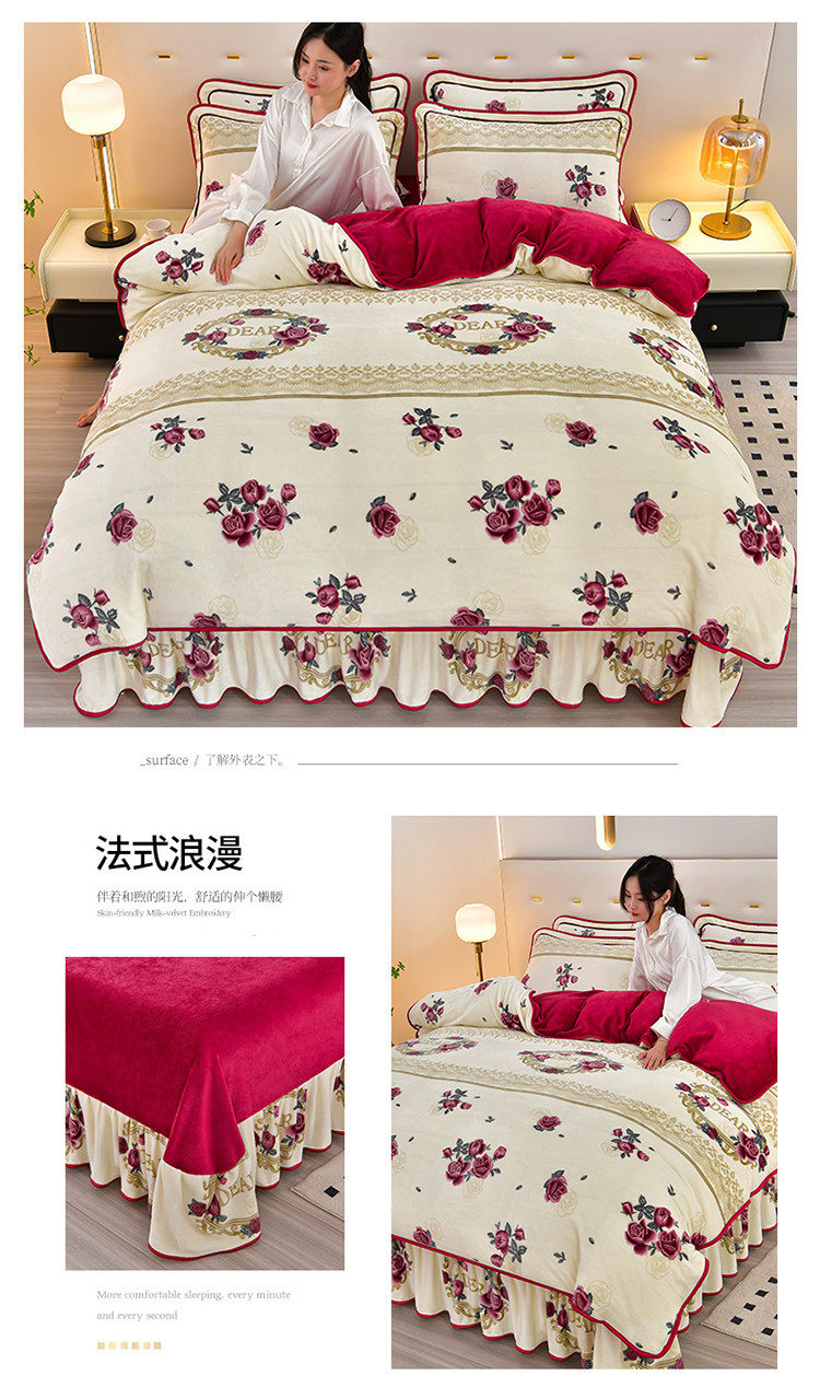 Thickened Milk Velvet Four-Piece Set Single Double-Sided Velvet Bed Skirt Autumn and Winter Household Kit Live Hair
