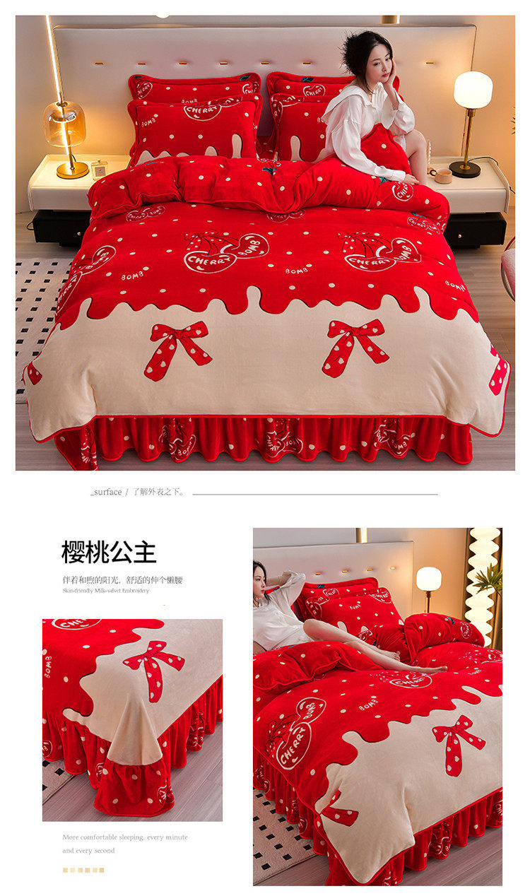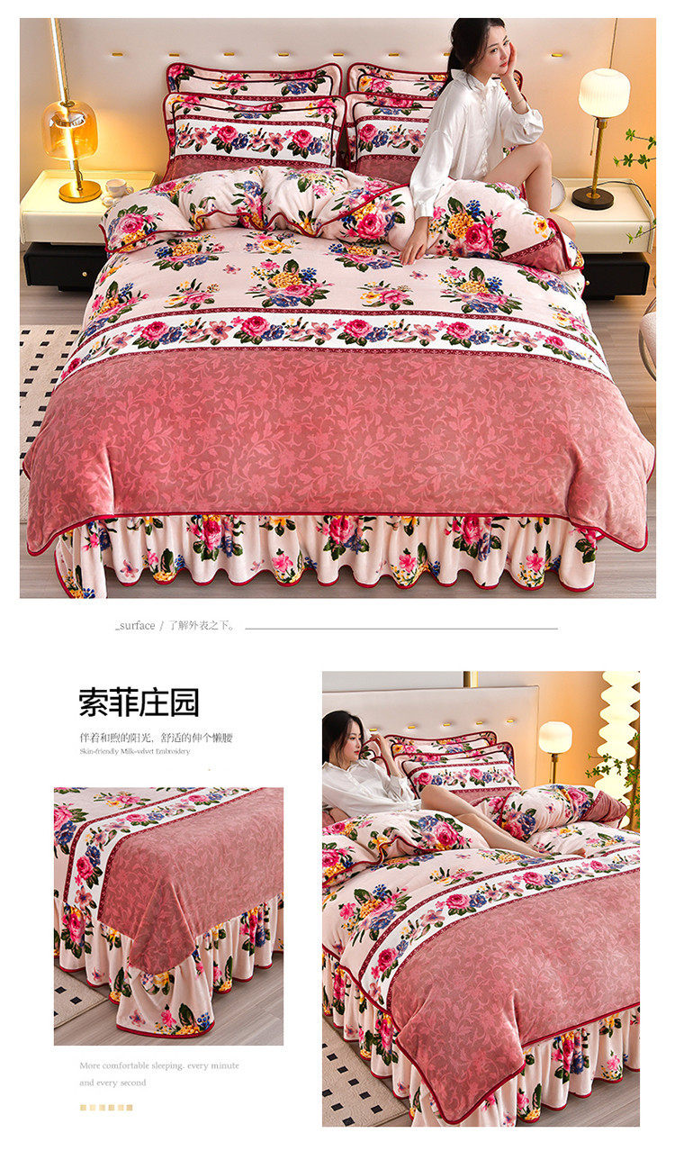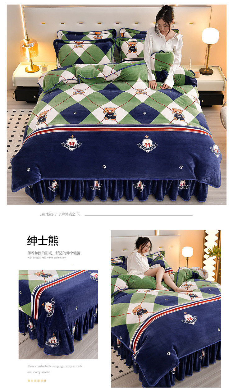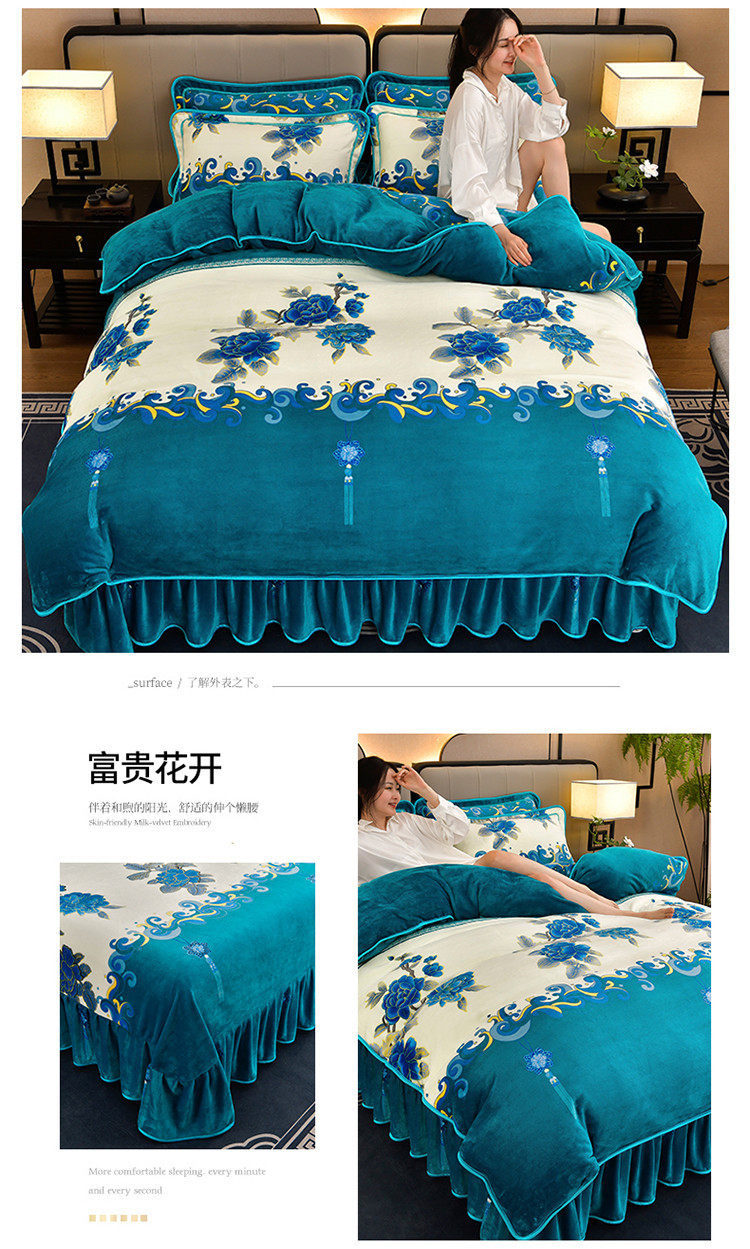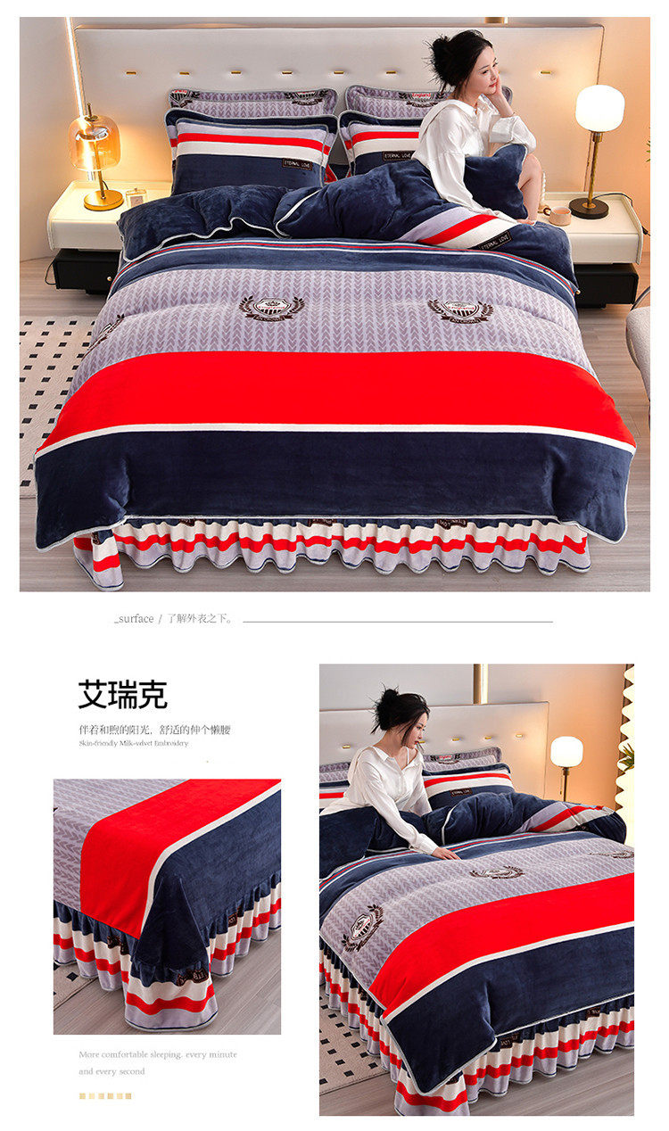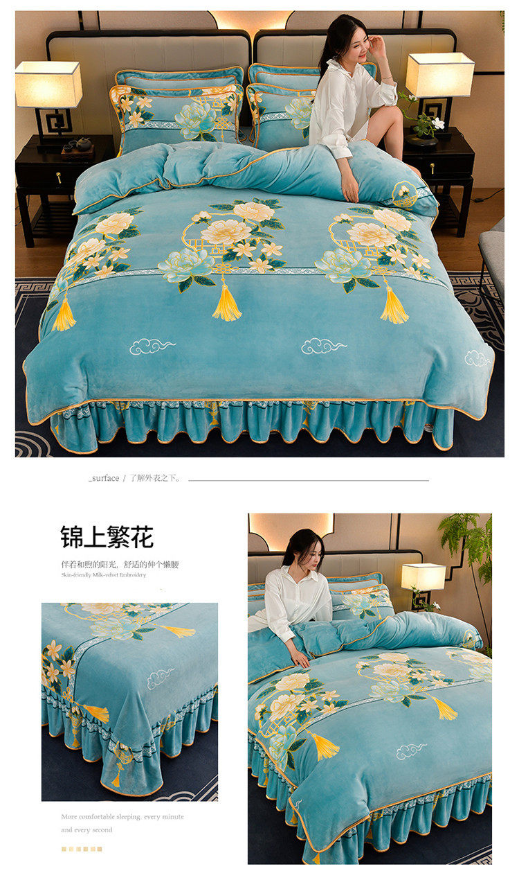 Thickened Milk Velvet Four-Piece Set Single Double-Sided Velvet Bed Skirt Autumn and Winter Household Kit Live Hair