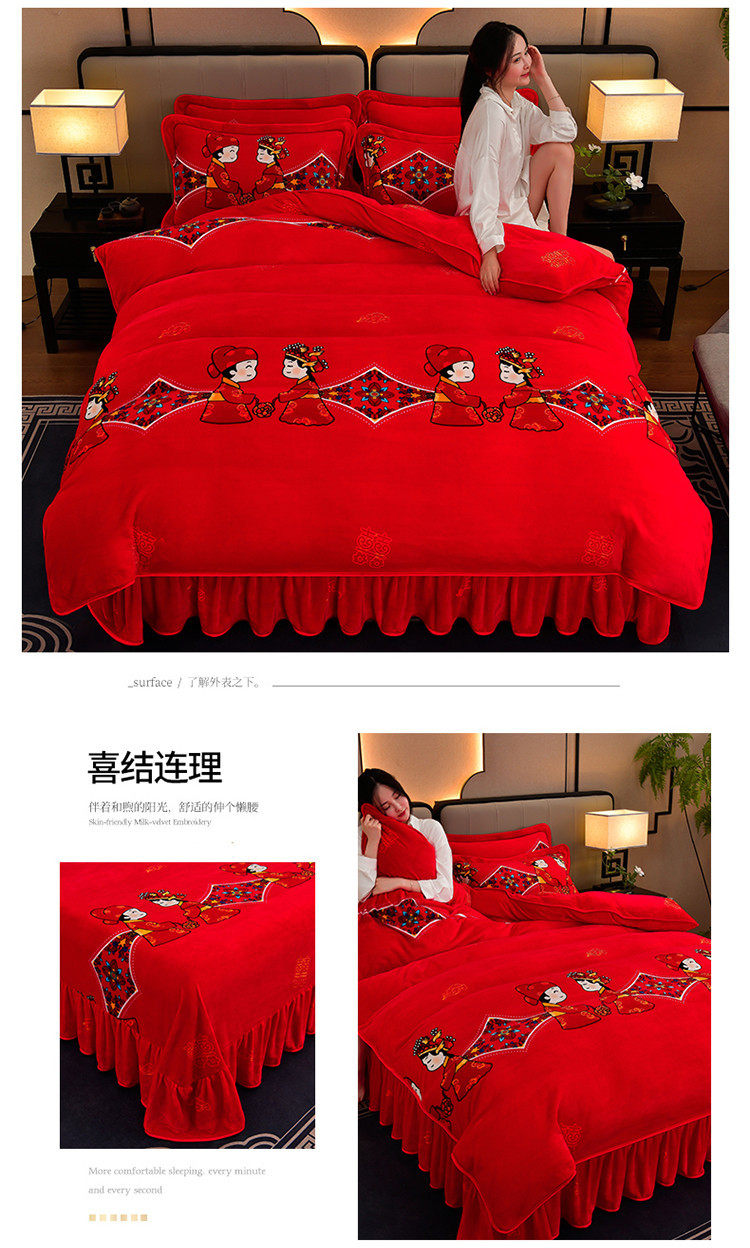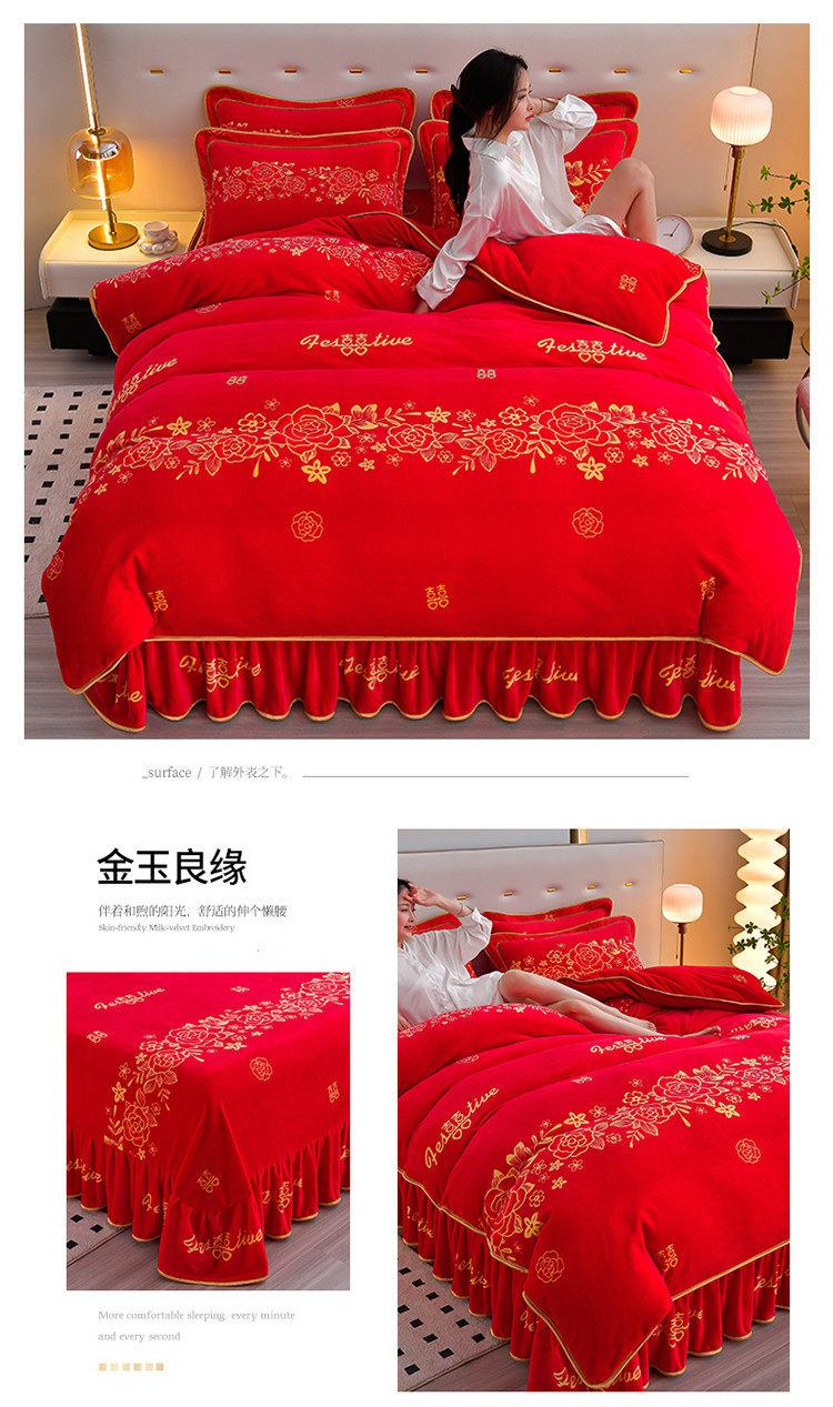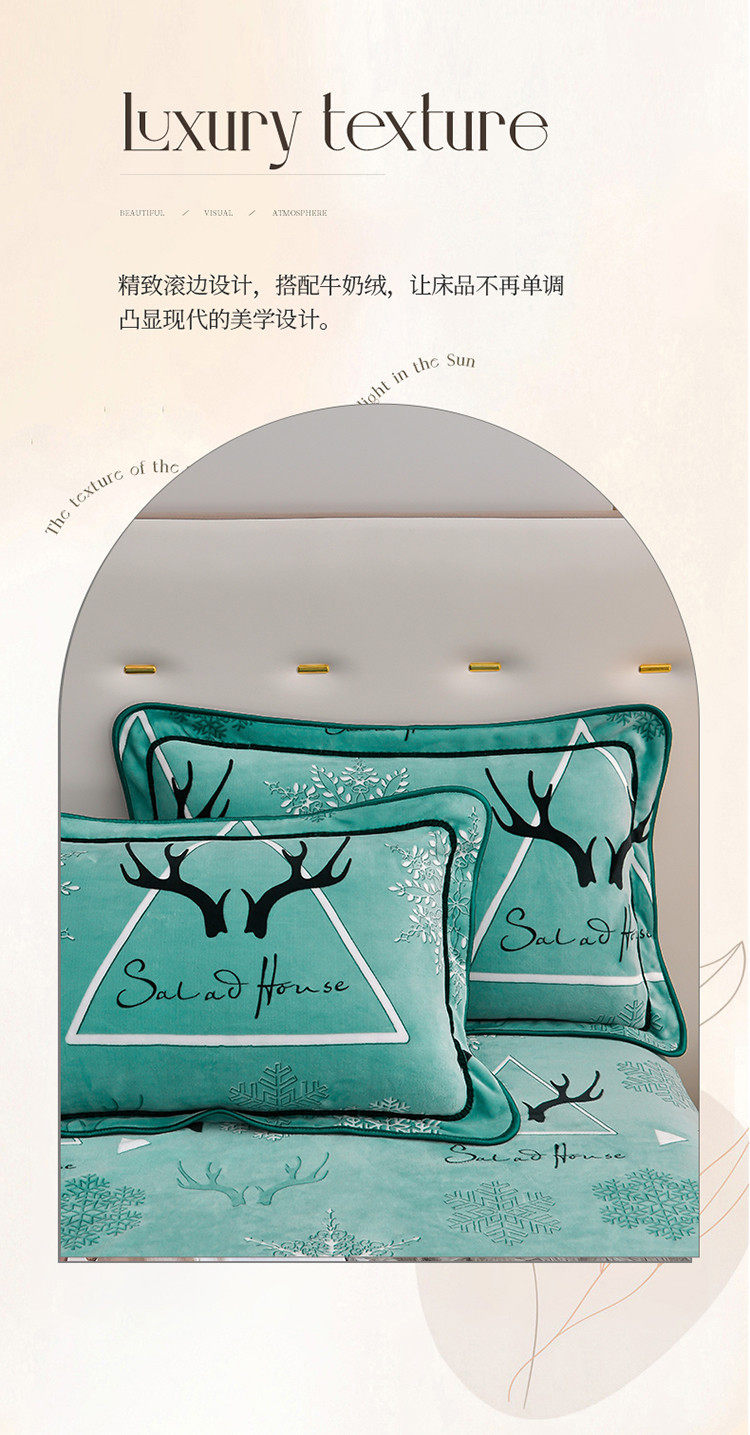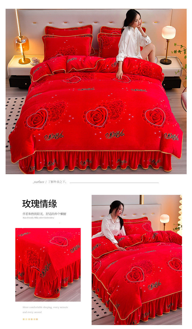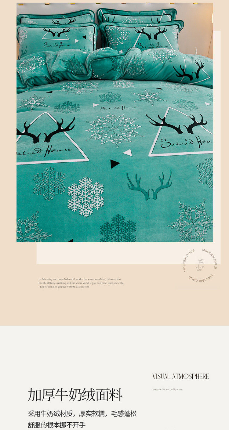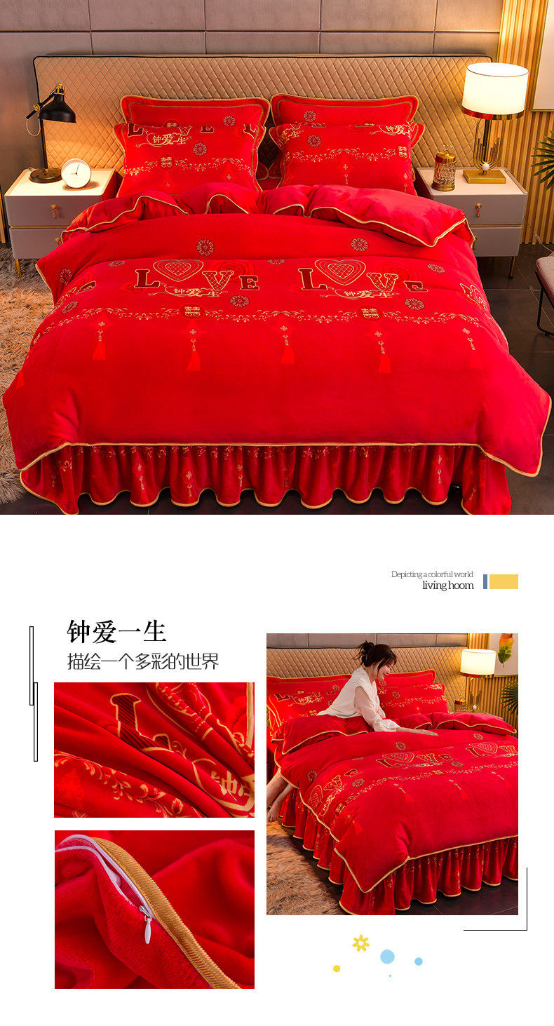 Thickened Milk Velvet Four-Piece Set Single Double-Sided Velvet Bed Skirt Autumn and Winter Household Kit Live Hair