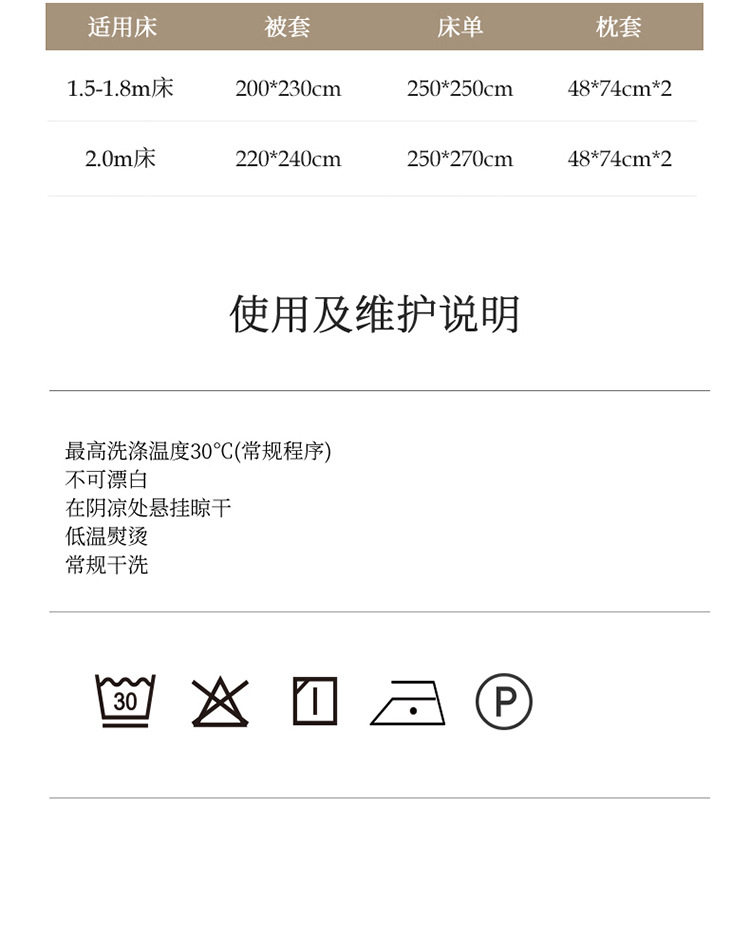 | Size specifications | 1.2m bed sheet three-piece set (quilt cover 150*200cm) with random colors,1.5m bed sheet four-piece set (quilt cover 200*230cm),1.8m bed sheet four-piece set (quilt cover 200*230cm),2.0m bed sheet four-piece set (quilt cover 220*240cm) |