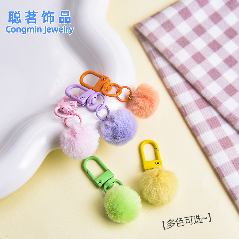 Cute fur ball keychain diy pendant candy color door buckle jewelry accessories imitation rabbit fur ball pendant wholesale