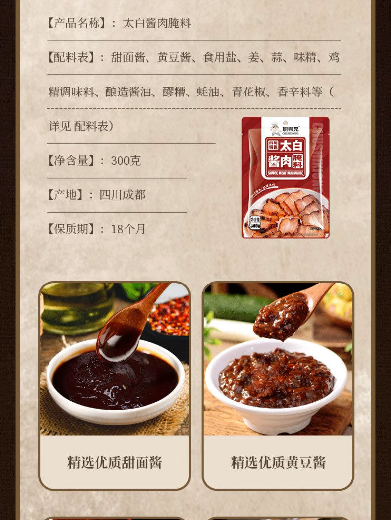 Specifications Chef brother taibai sauce meat marinade 300g,Chef brother air-dried bacon marinade 300g