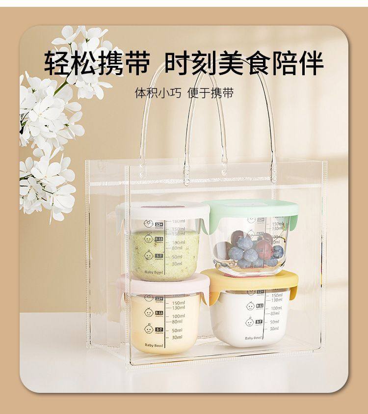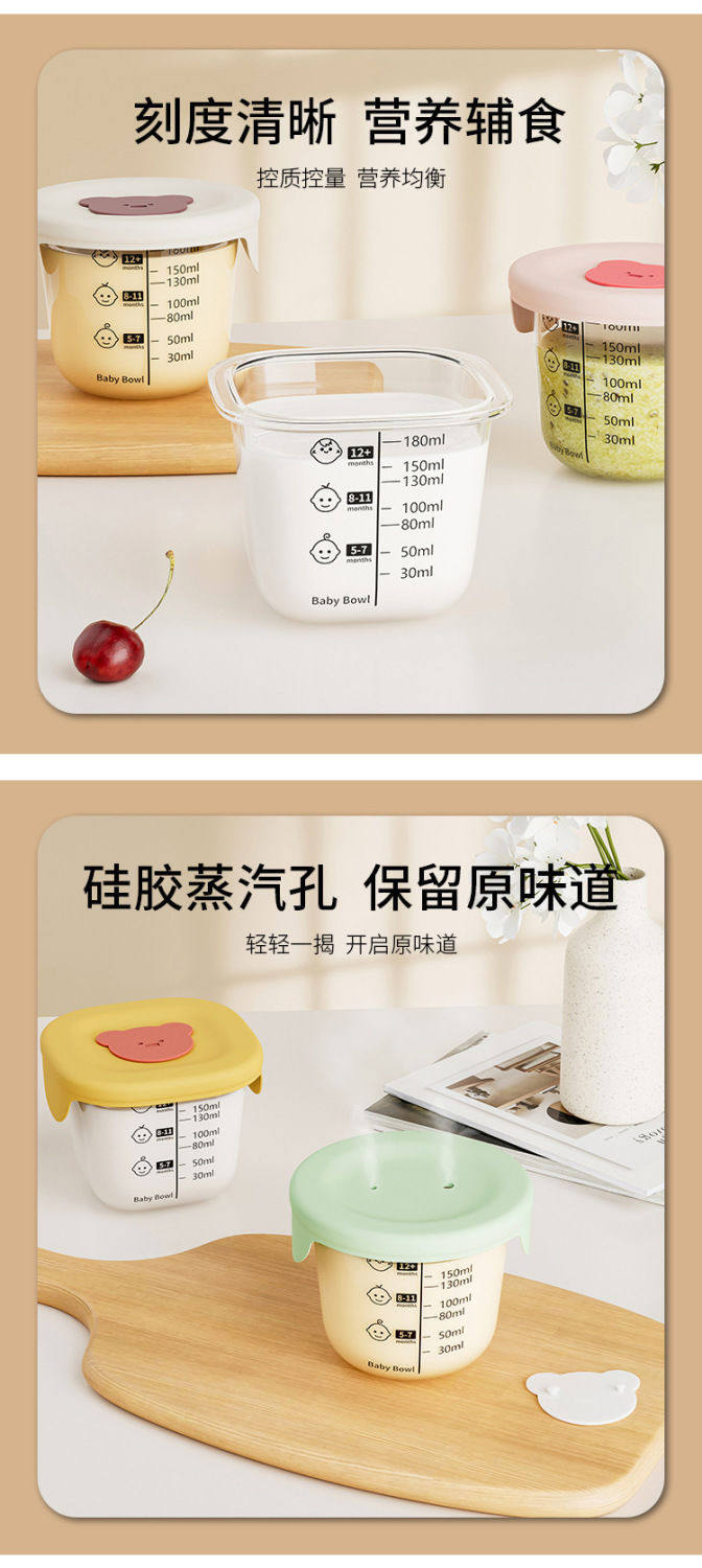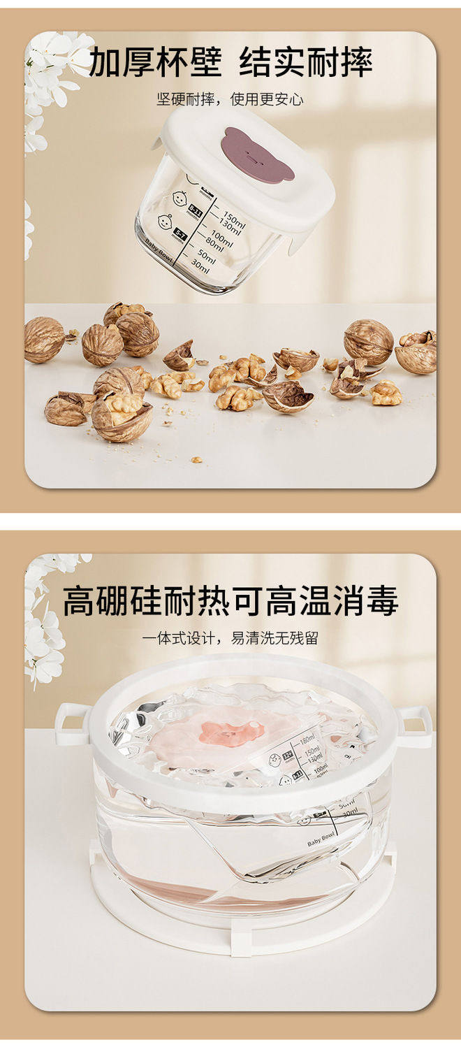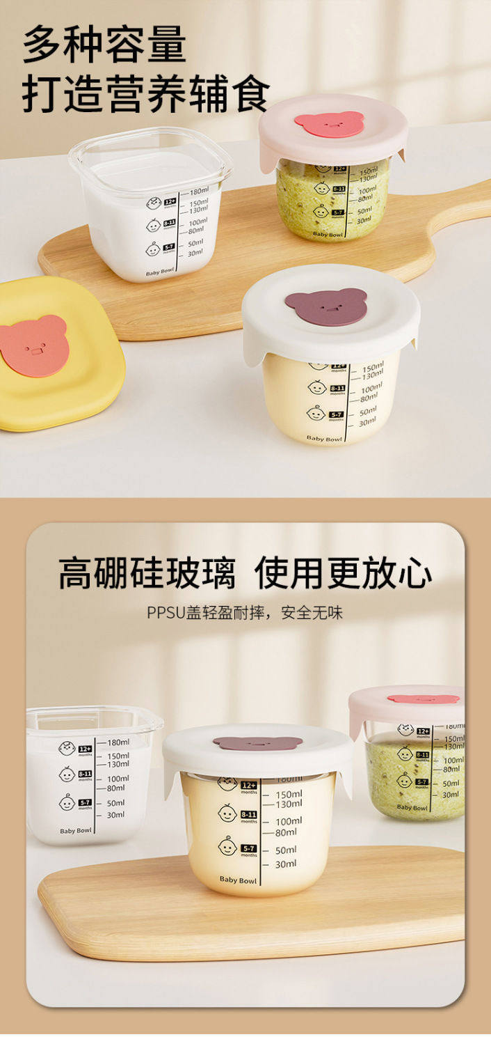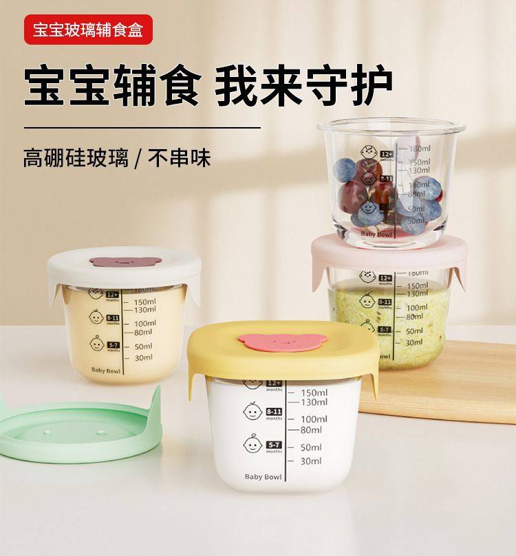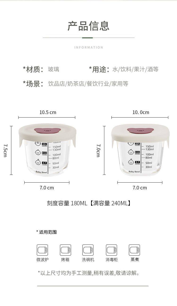 High Borosilicate Glass Baby Food Storage Container, Baby Food Bowl, Preservation Bowl Tool with Small Silicone Lid for Feeding