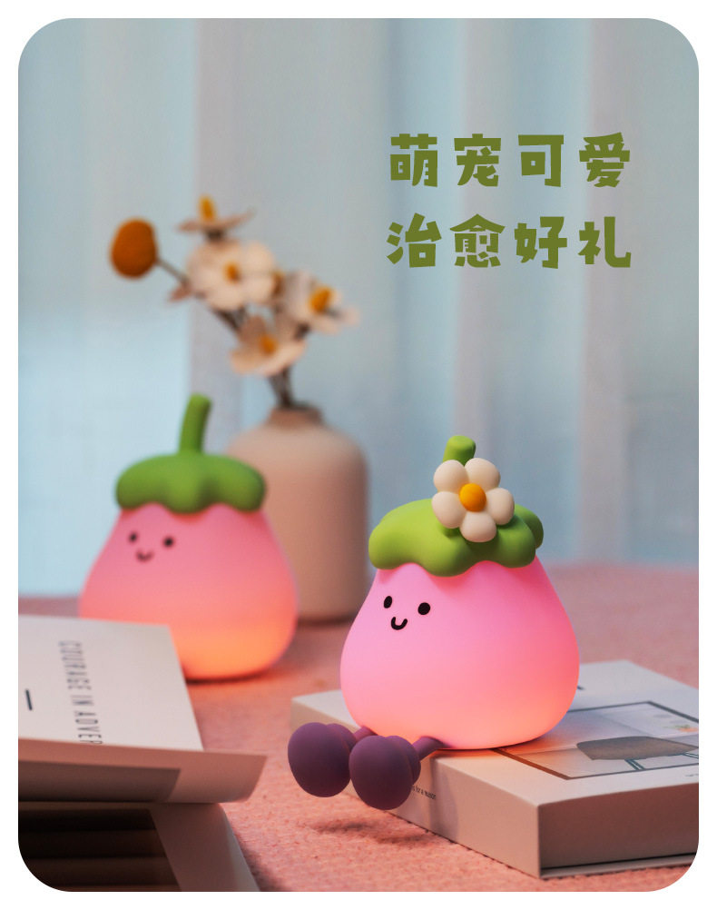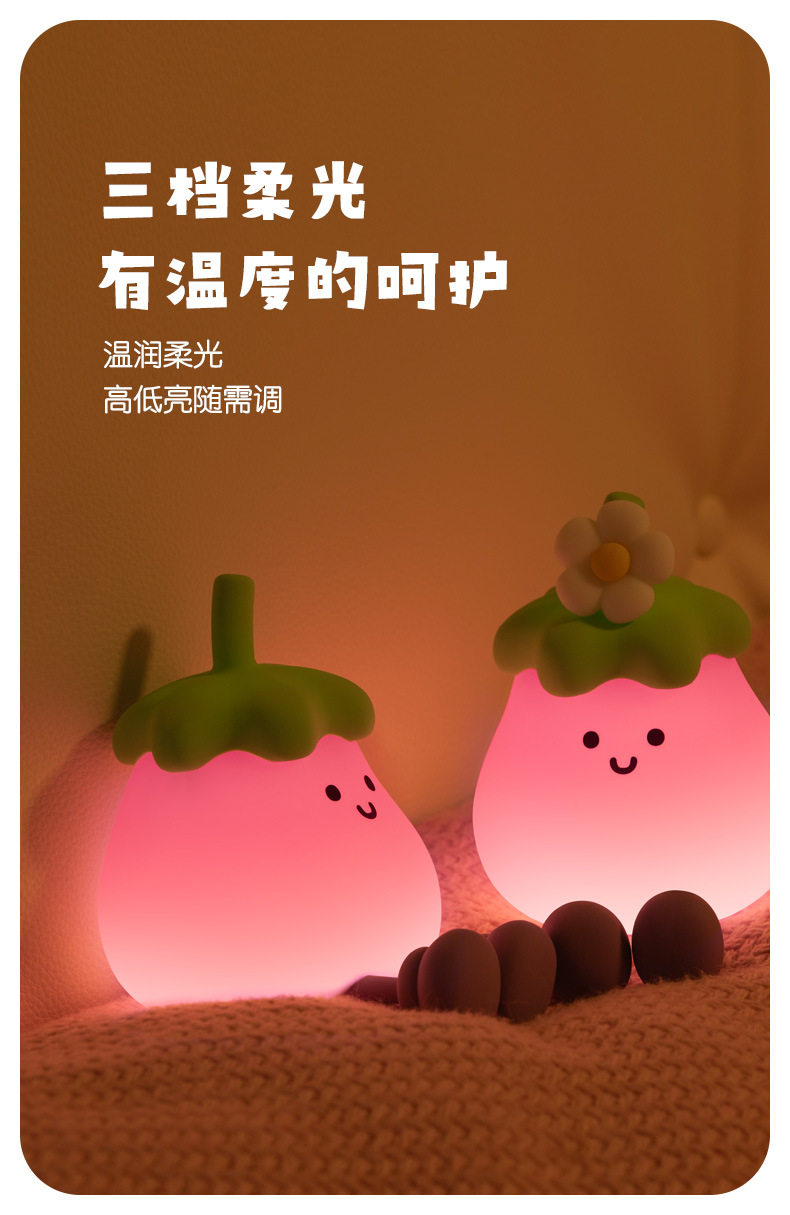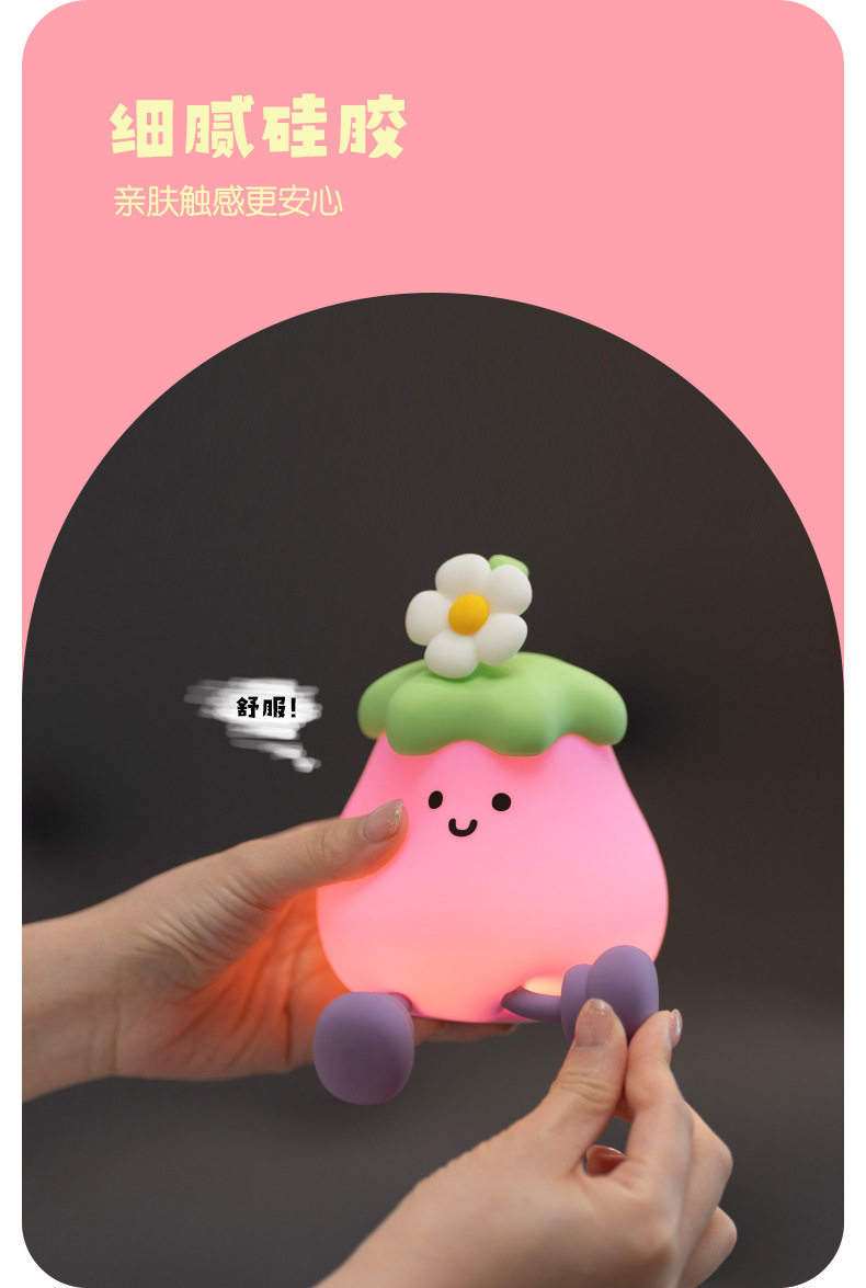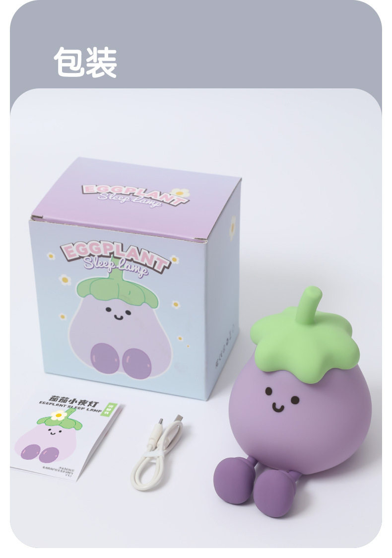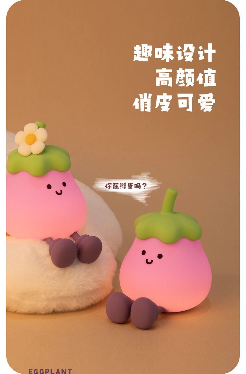 Eggplant Sleeping Lamp Bedroom Bedside USB Charging Clap Night Light Desktop Creative Ornaments Silicone Night Light